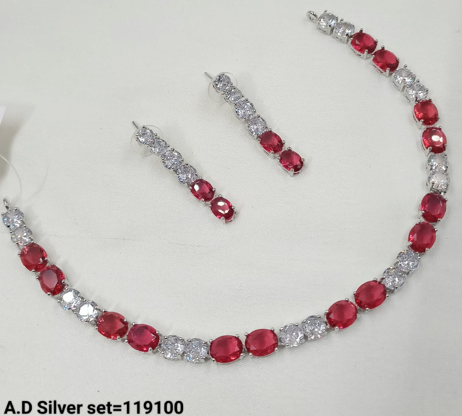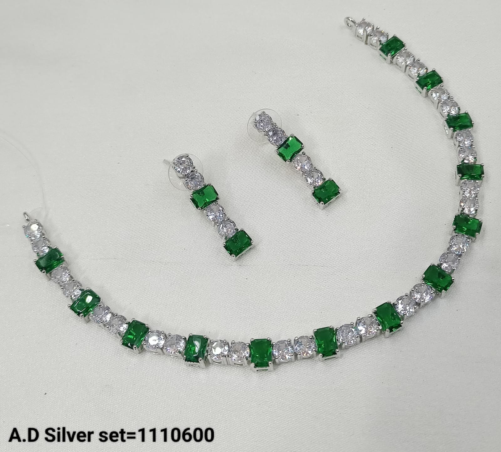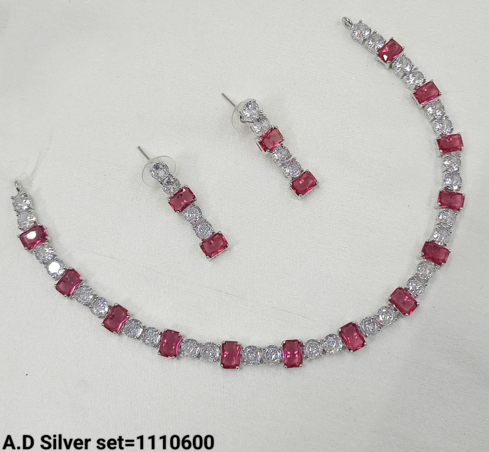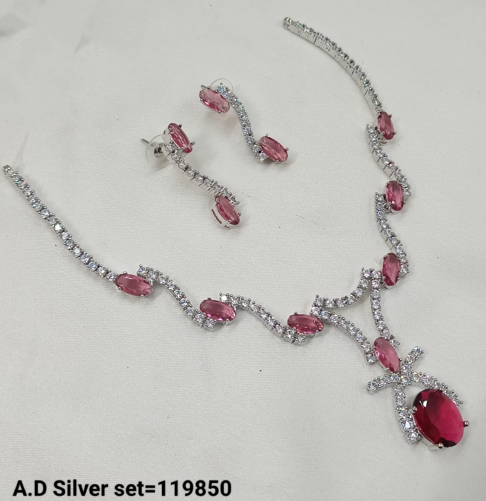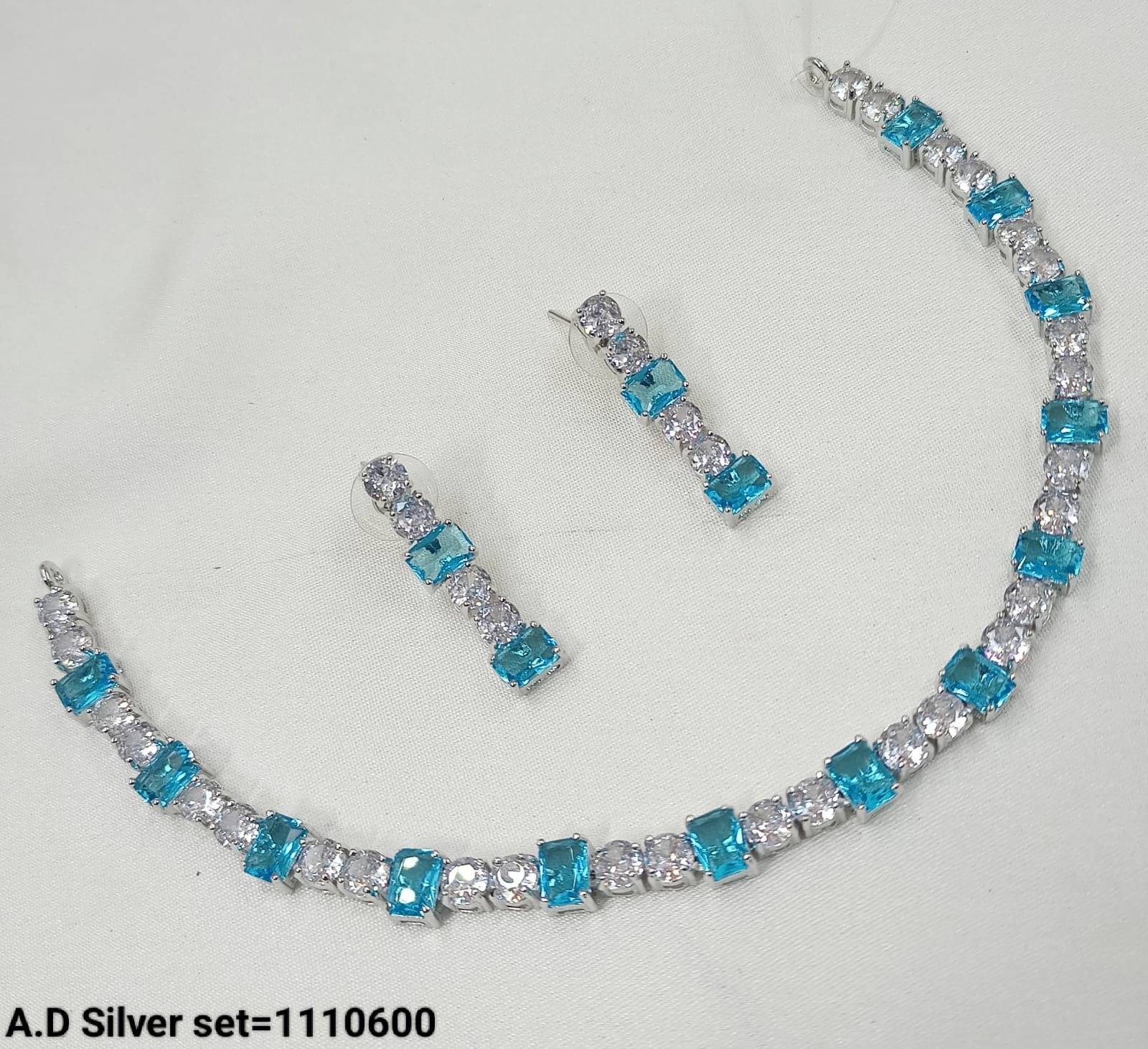 This jewellery set features a silver-plated finish adorned with sparkling American diamonds, combining elegance with expert craftsmanship for a refined look. It Has A Pack Of...