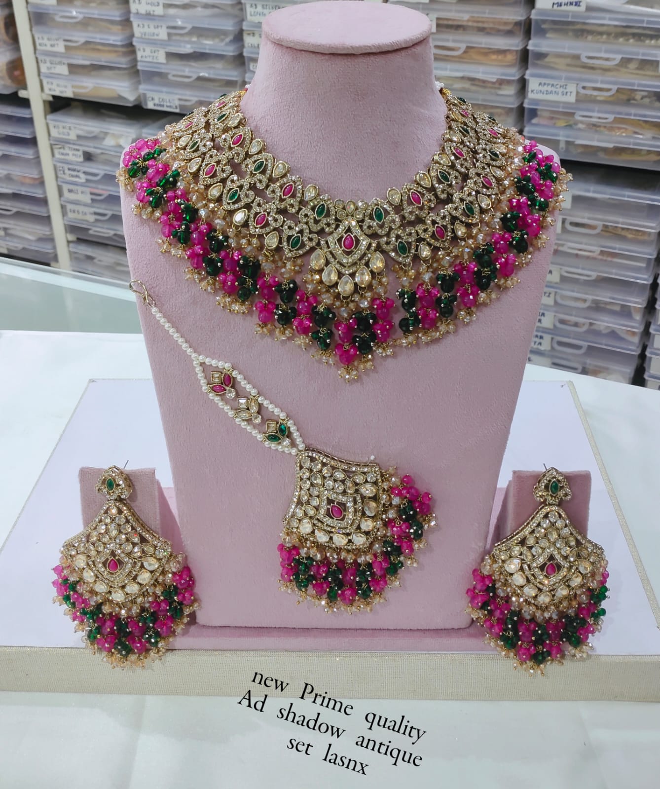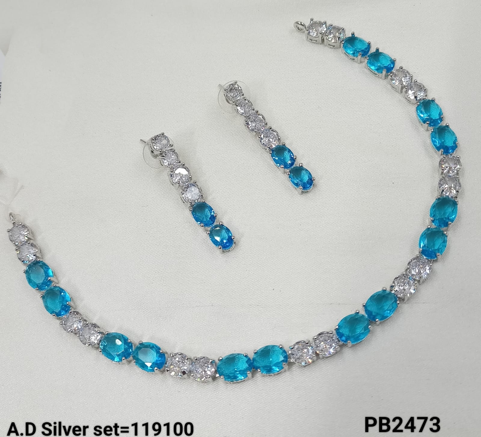 This exquisite jewellery set features American diamonds elegantly set on a silver-plated base, combining timeless sparkle with refined craftsmanship. Ideal for enhancing any ensemble with a...