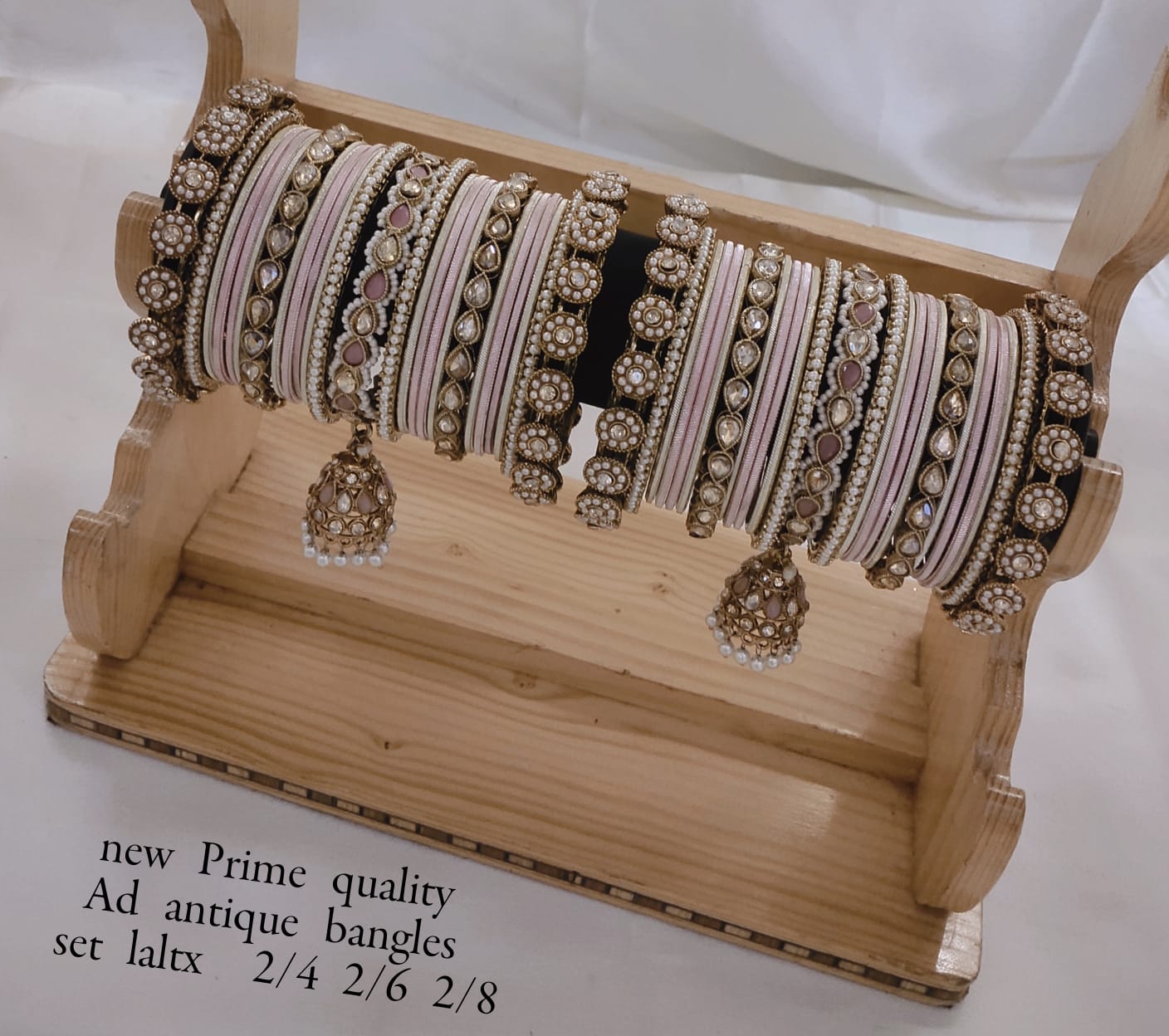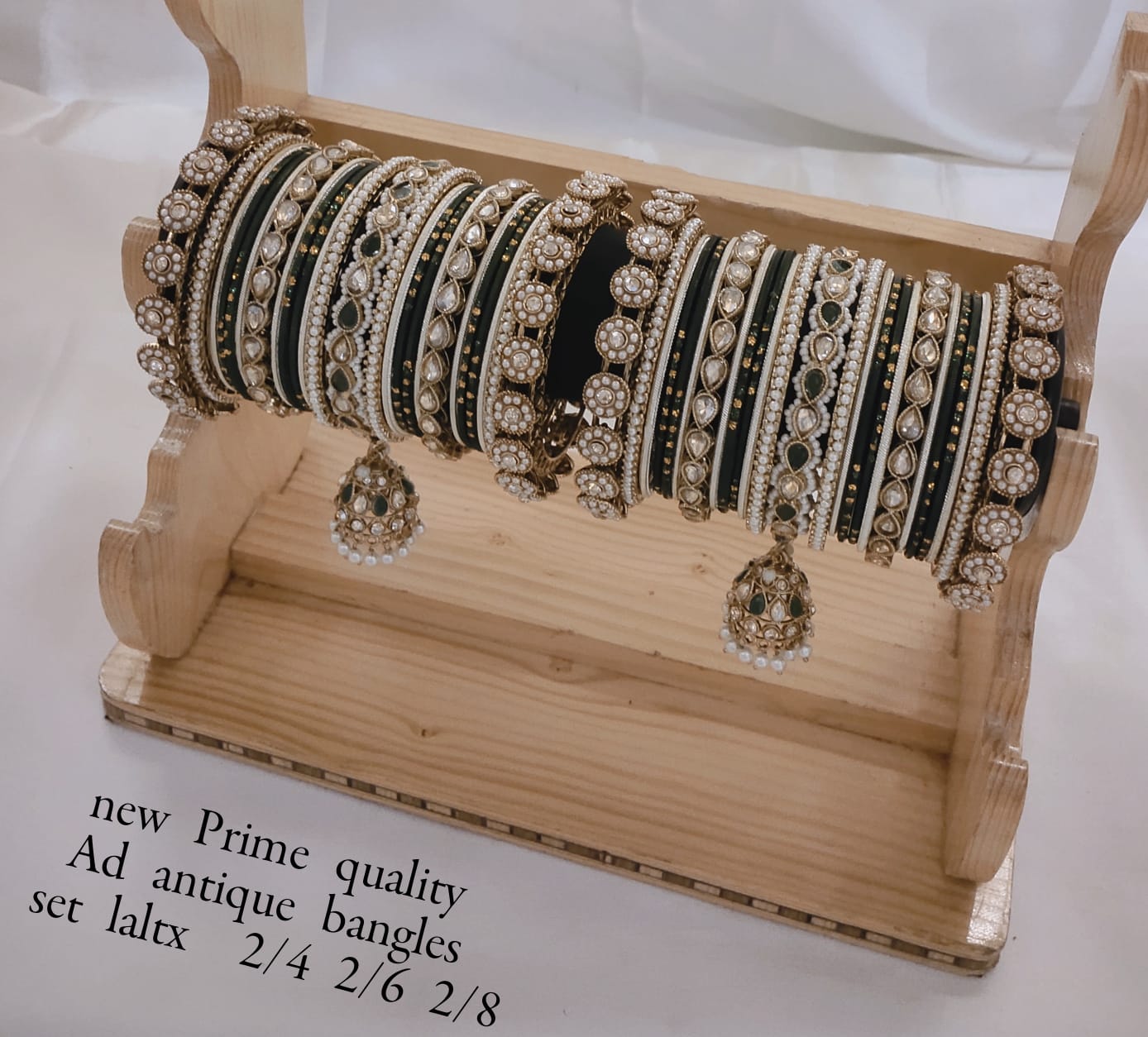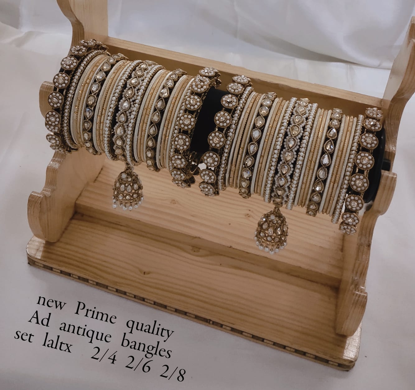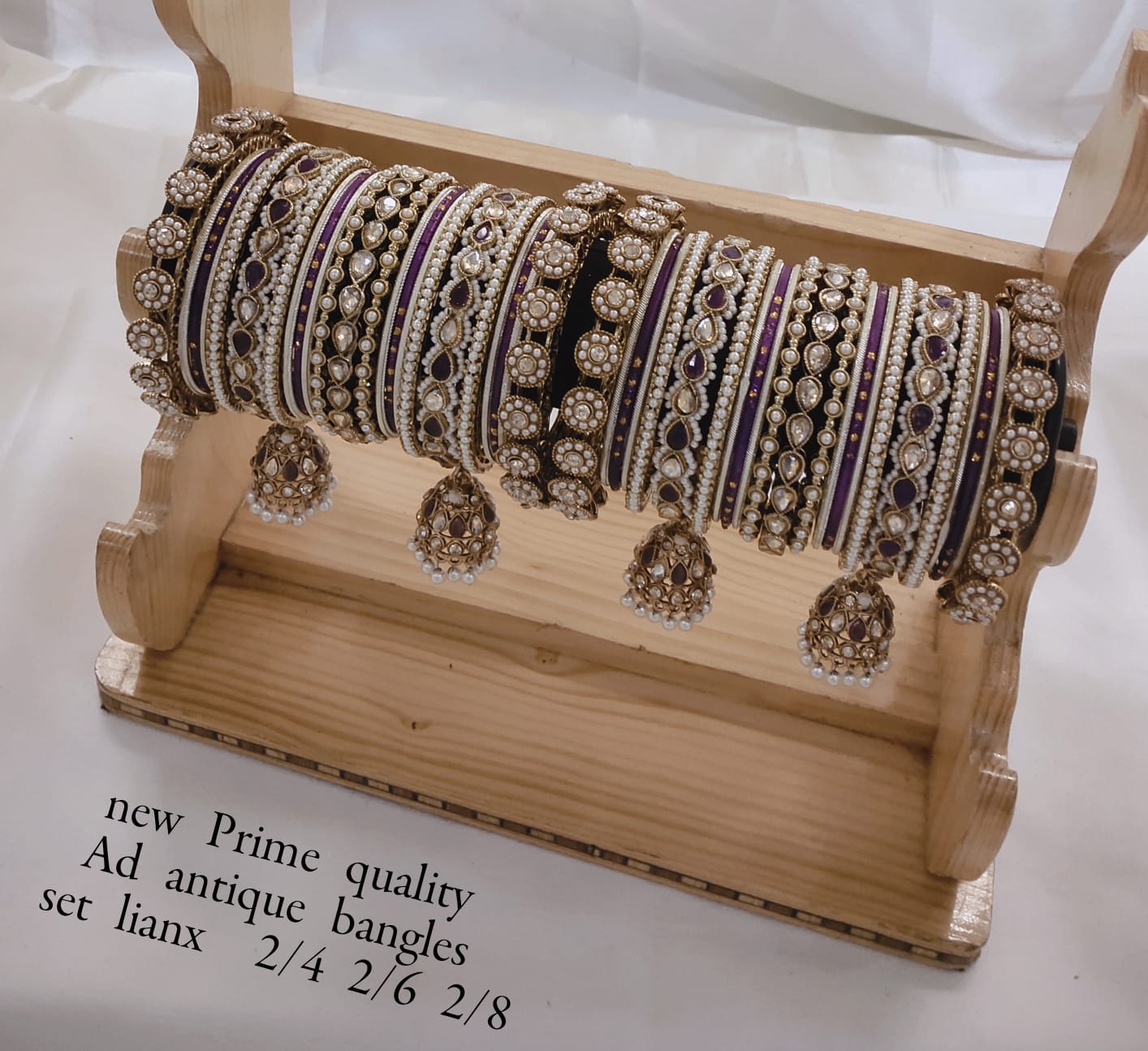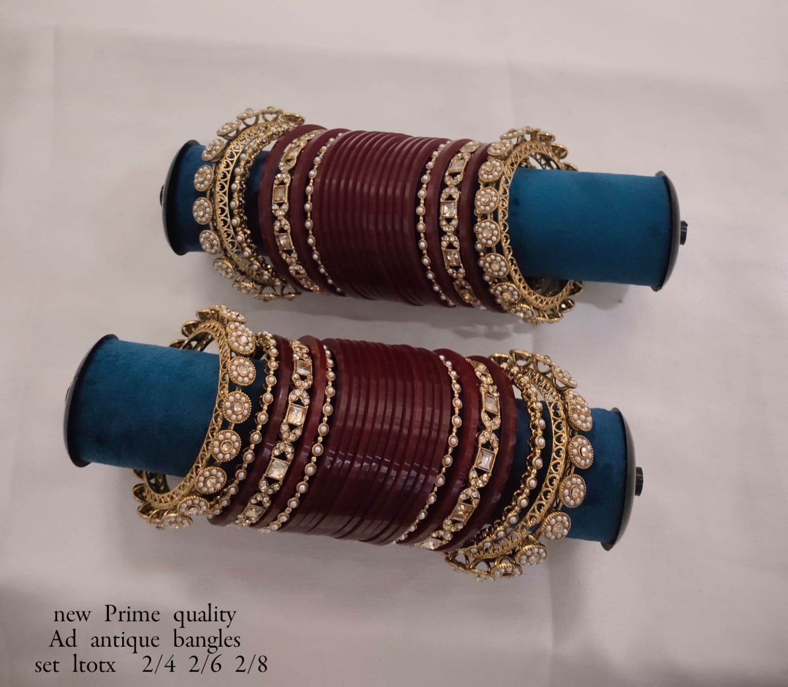 This exquisite set features an antique gold wedding chooda, meticulously crafted to enhance traditional bridal attire with timeless elegance. It Has A Pack Of :- 1...