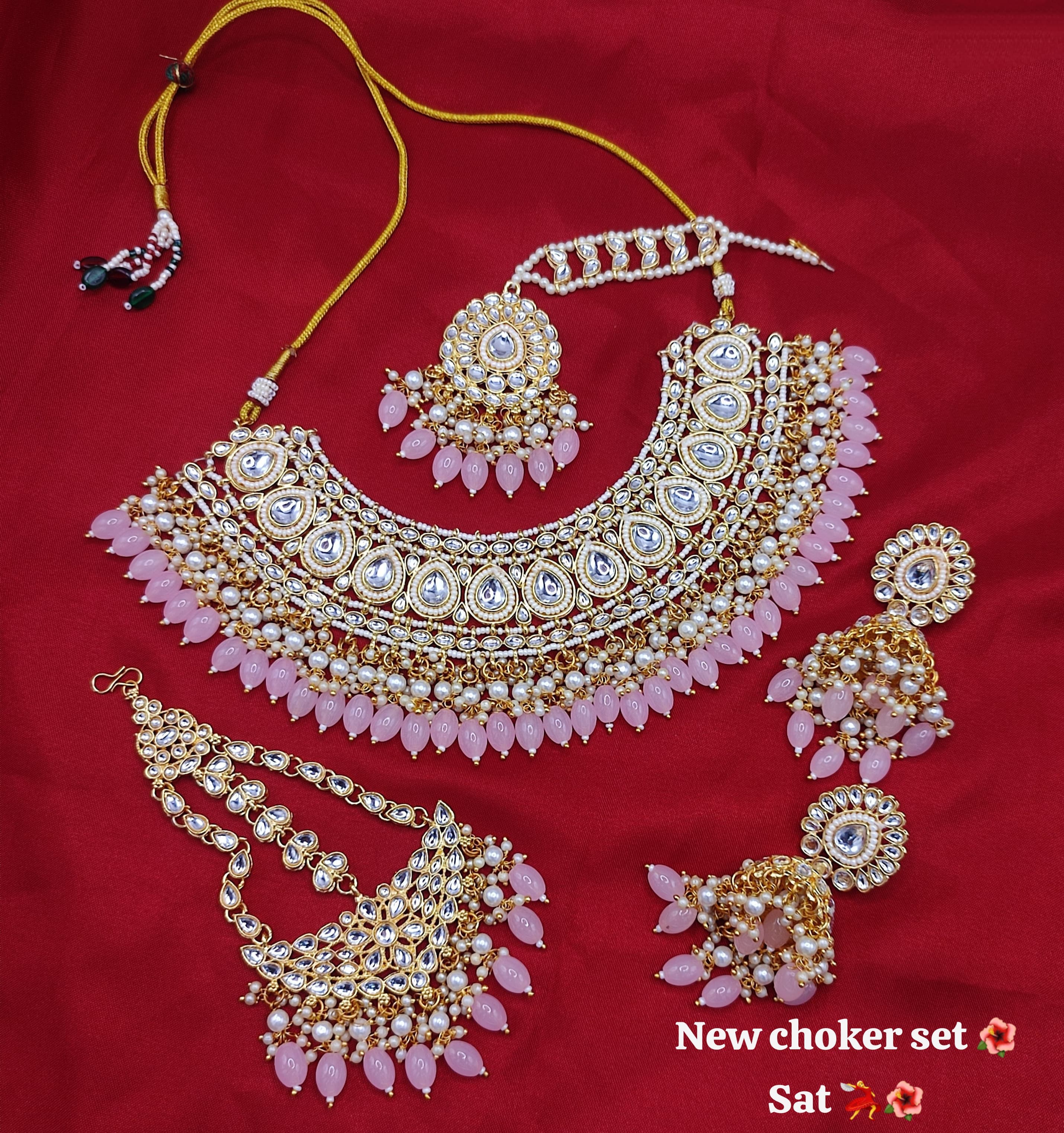 Elevate your style with our Choker Kundan Stone Antique Gold Plated Jewellery Set. Made with the finest materials, this set features intricate Kundan stone designs and...