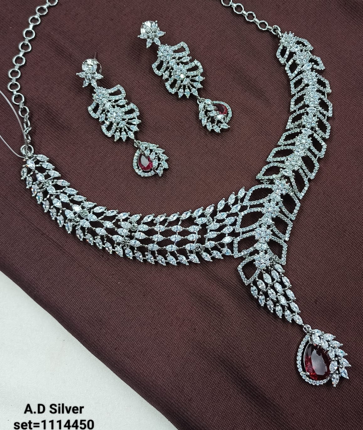 Elegant AD Silver Necklace and Earring Set – Stunning Design with Gemstone Accents