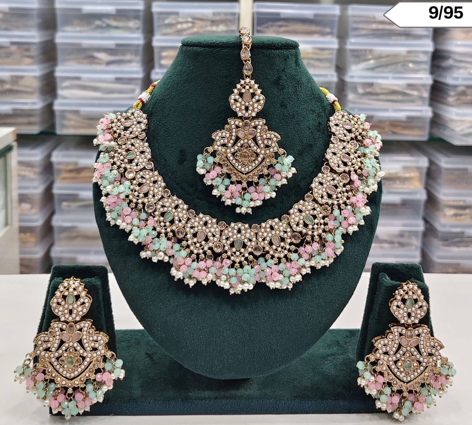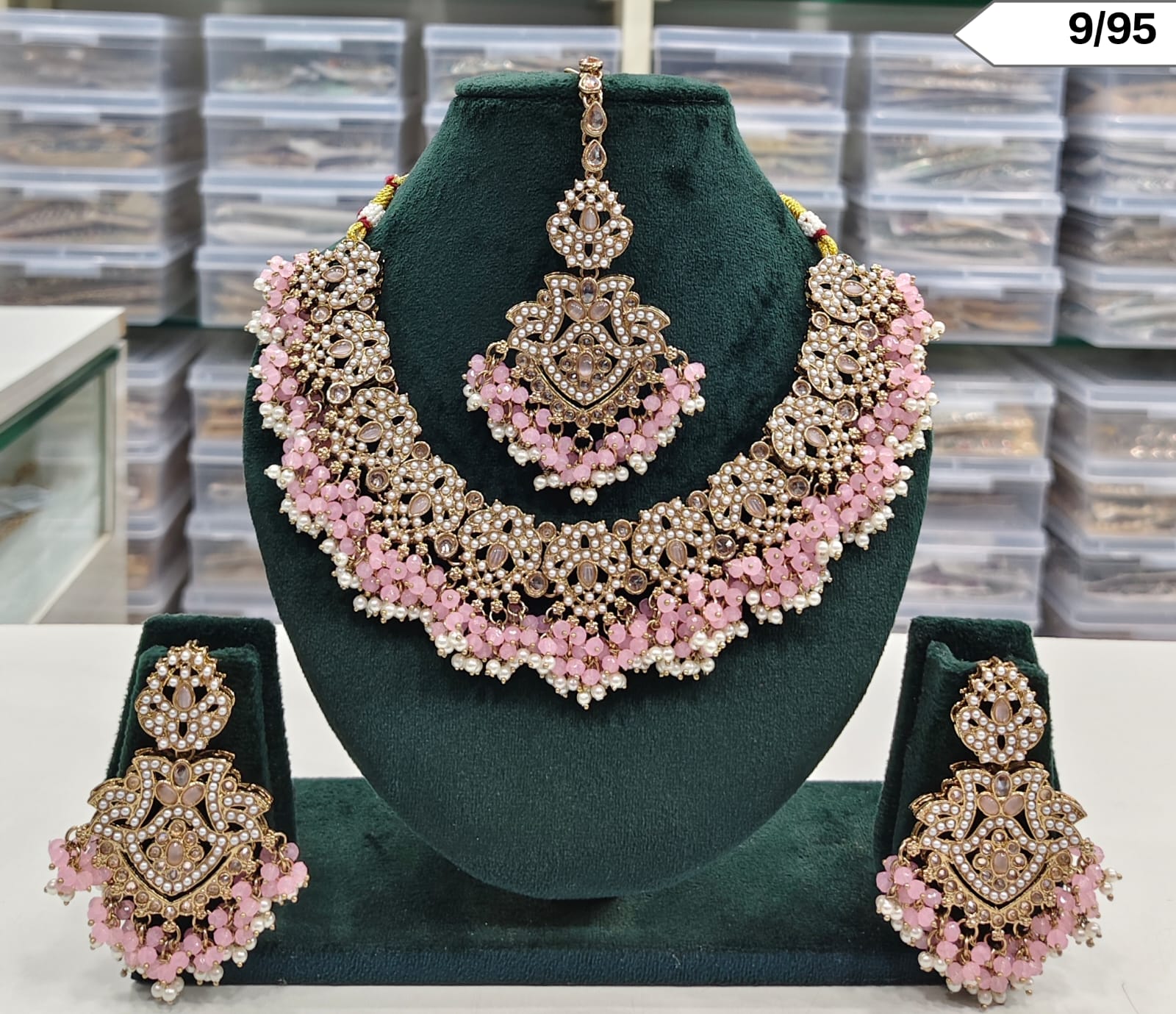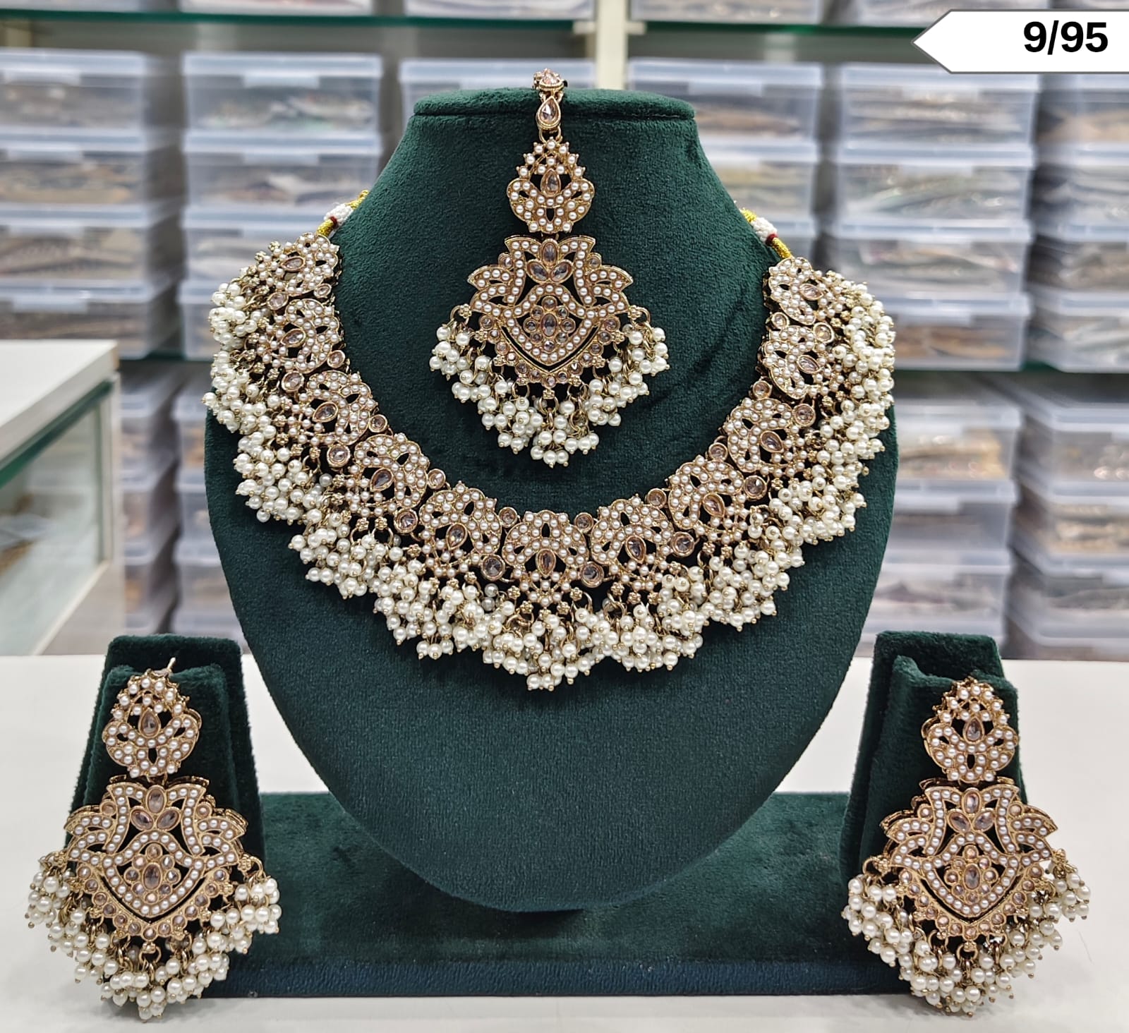 Traditional Pearl Beaded Necklace Set with Earrings