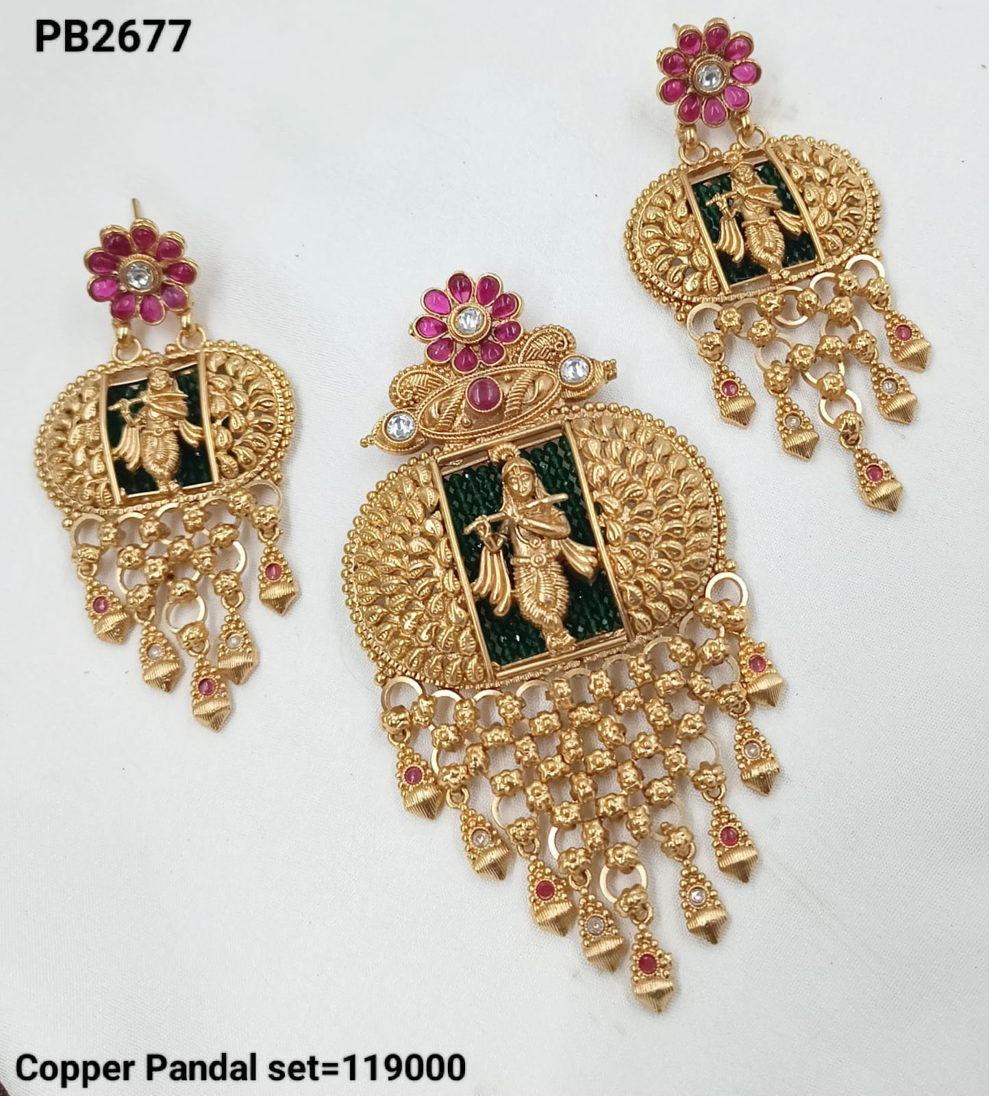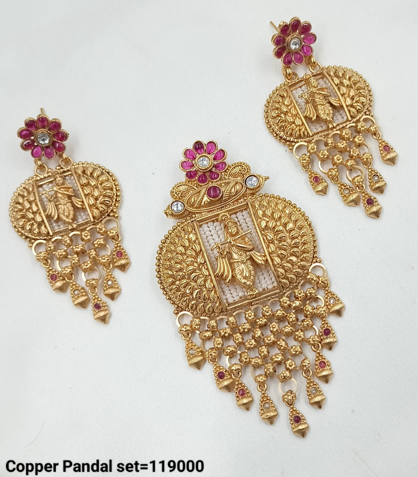 Traditional Krishna Design Copper Pendant Set - Lucentemarket