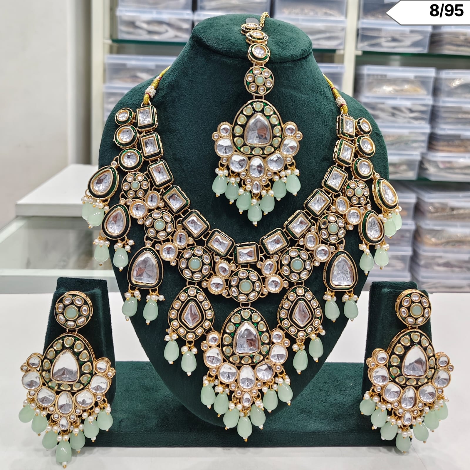 Elevate your traditional look with this Premium Chandan Polki Necklace Set, a timeless piece of artistry designed for elegance and grace. This intricately crafted set includes...