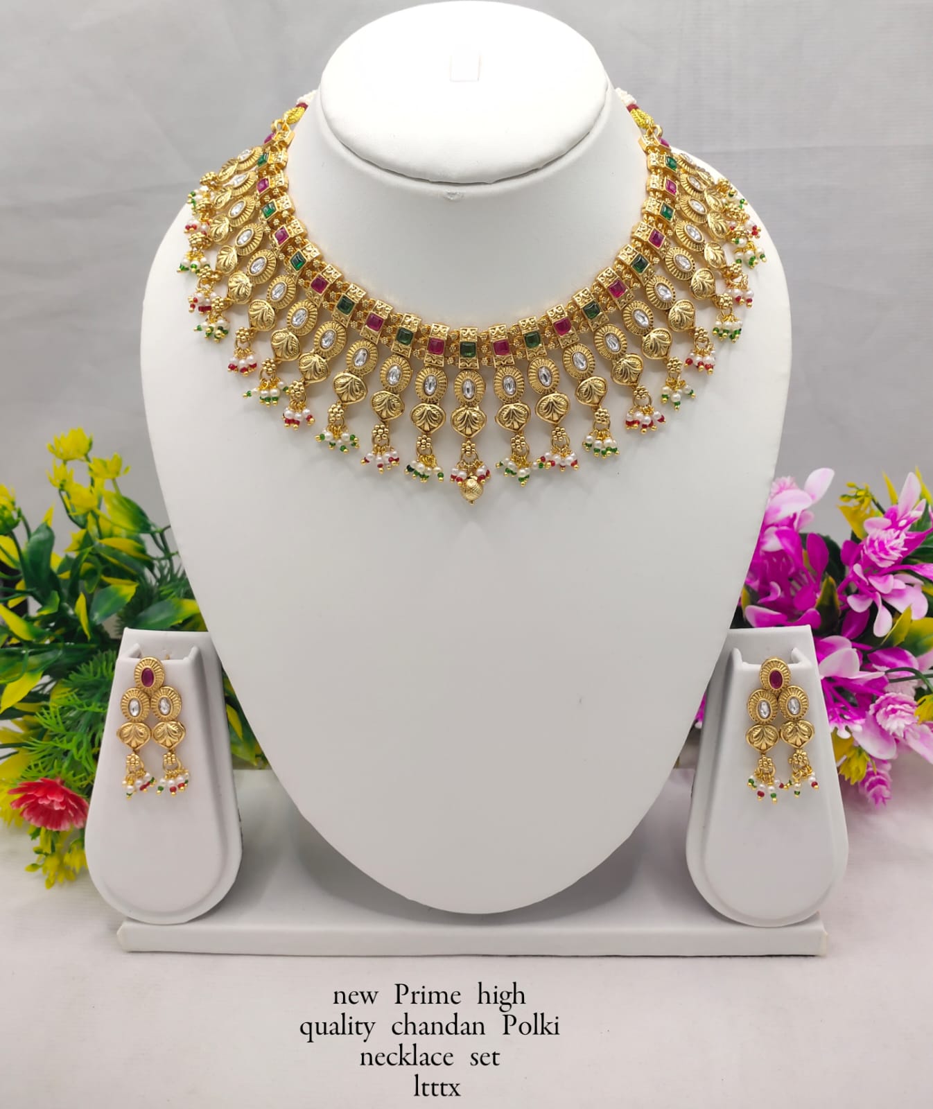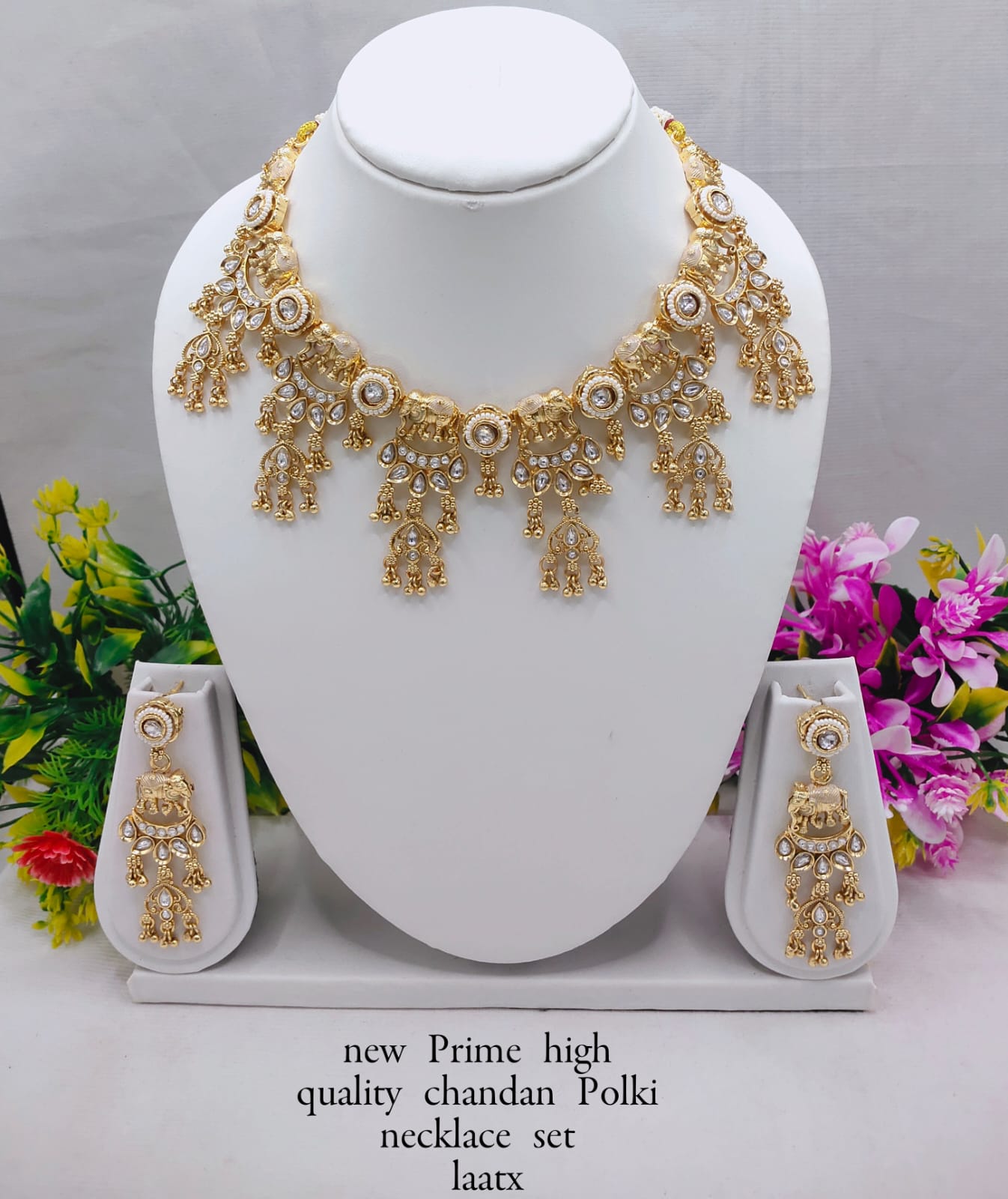 Premium Chandan Polki Necklace Set – Elegant Traditional Jewelry with Matching Earrings