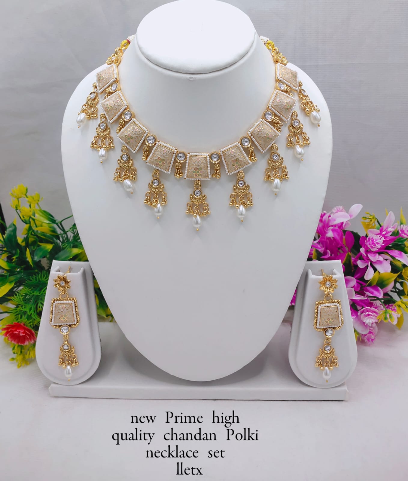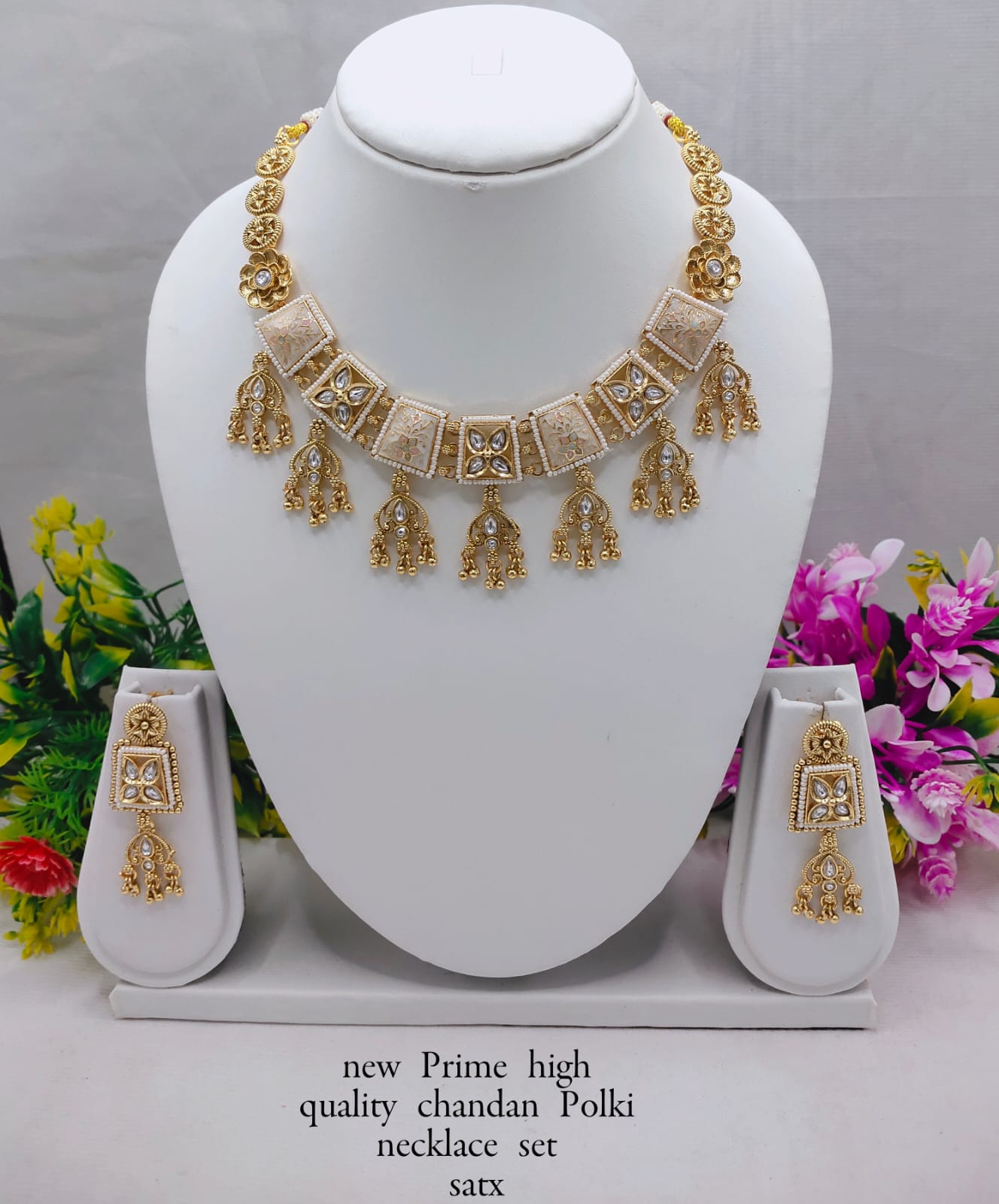 Premium Chandan Polki Necklace Set with Earrings – Bridal & Festive Jewelry