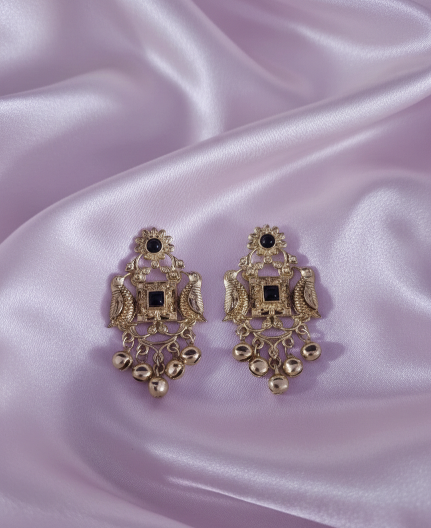 Kashmiri Antique Gold Earrings Ghungroo Drops For Woman & Girls