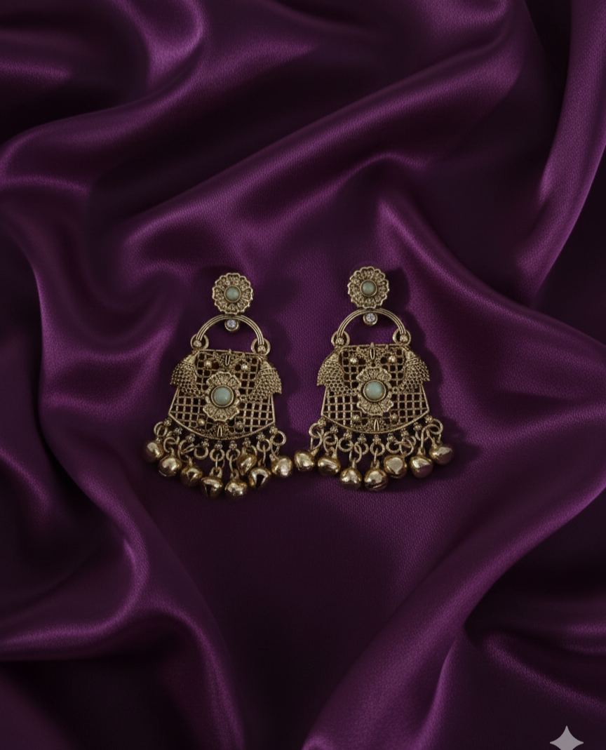 Antique Gold Plated Kashmiri Earrings Droplets Ghungroo For Woman & Girls