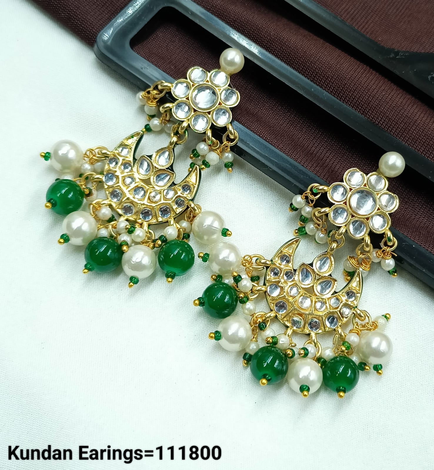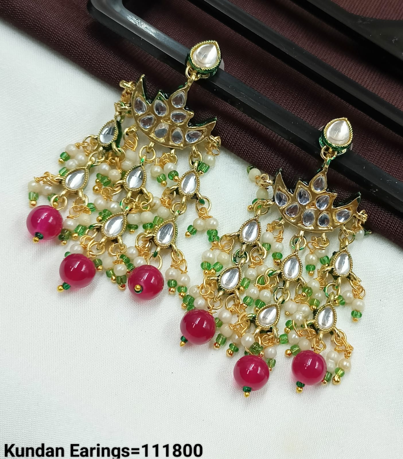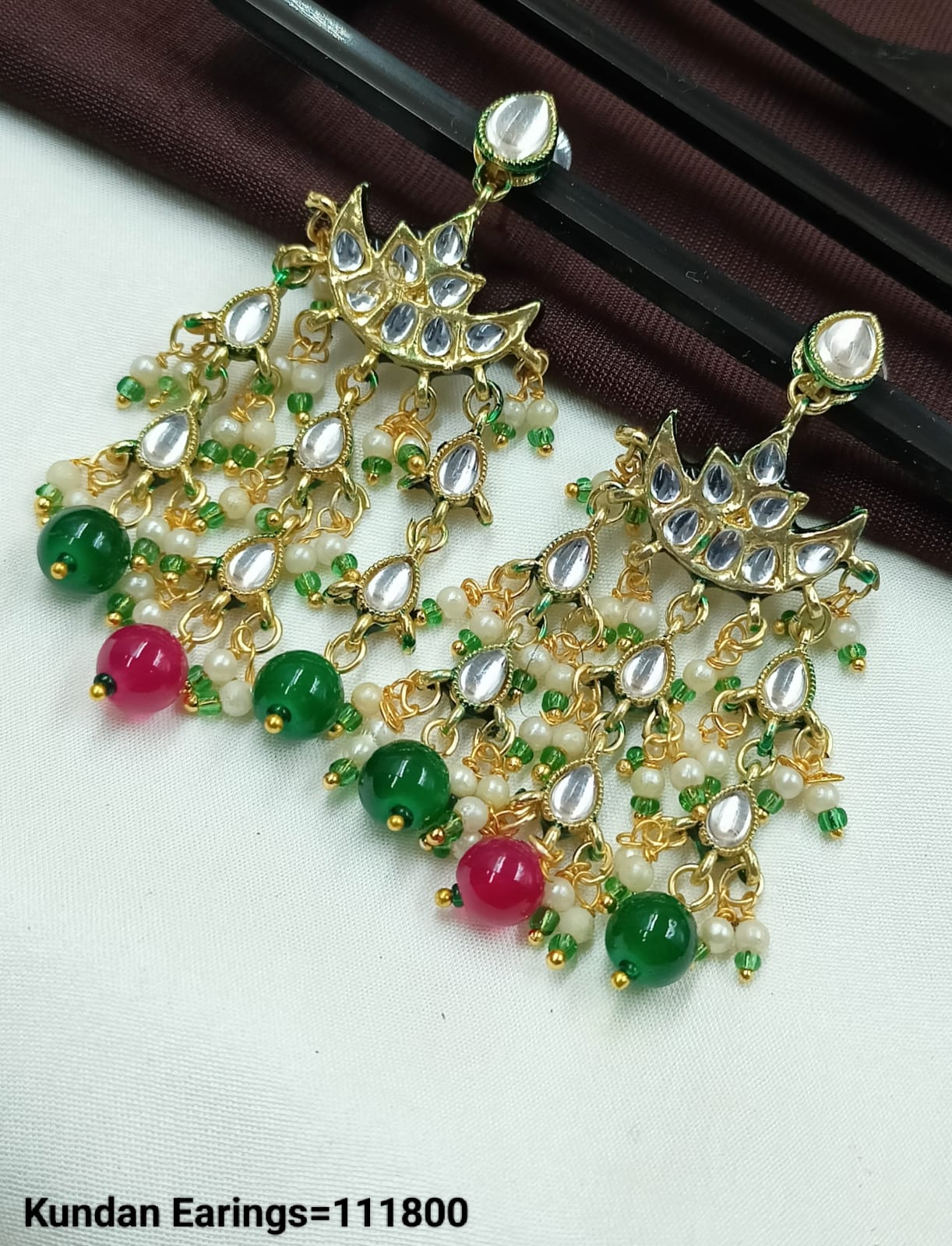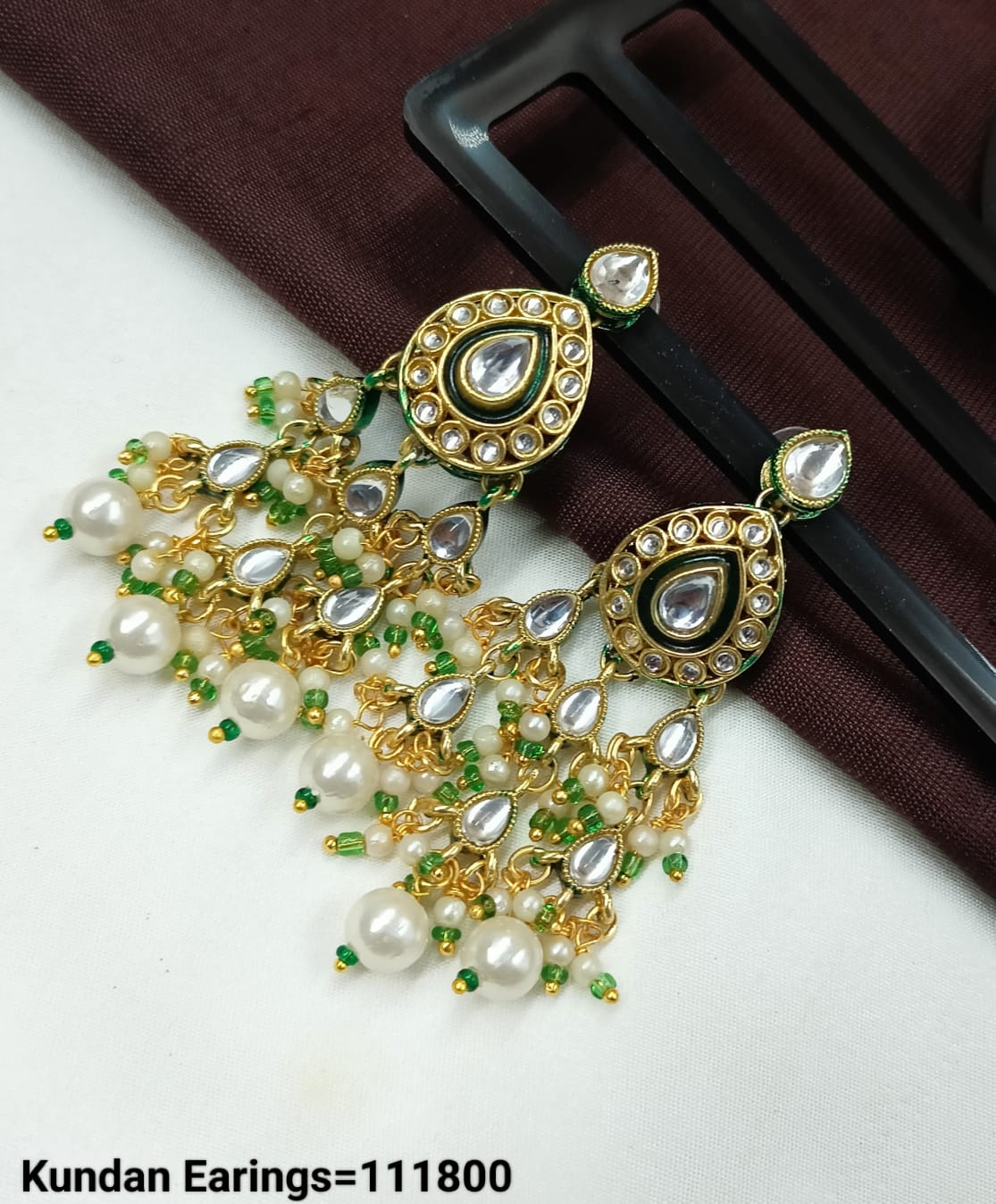 Elevate your traditional look with these stunning Kundan Pearl Drop Earrings. Crafted with intricate detailing, these earrings feature classic Kundan stonework, accented by elegant pearl drops...