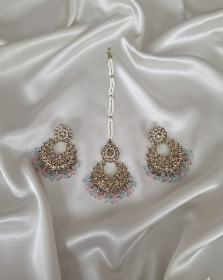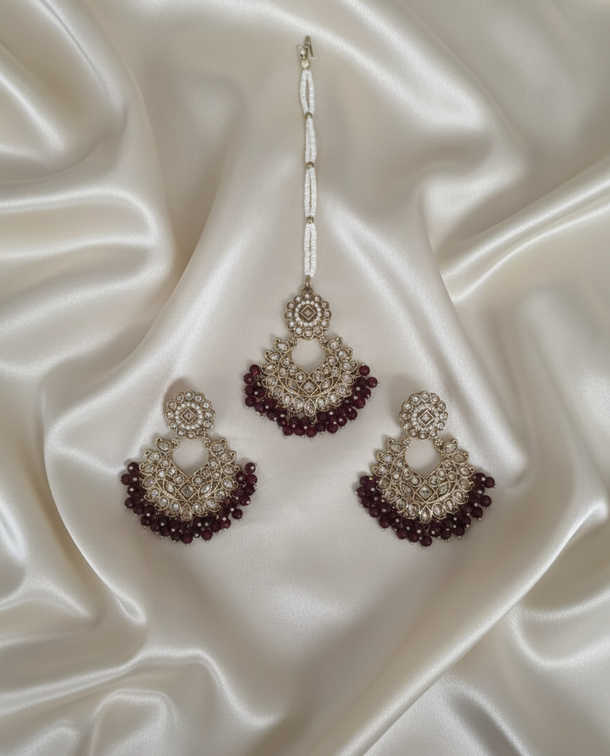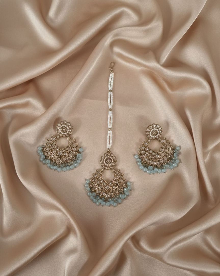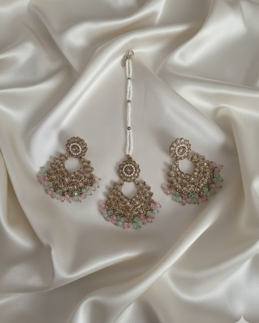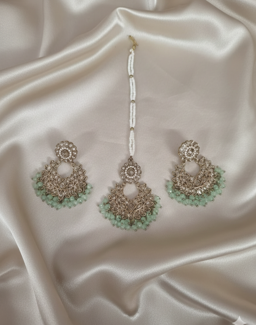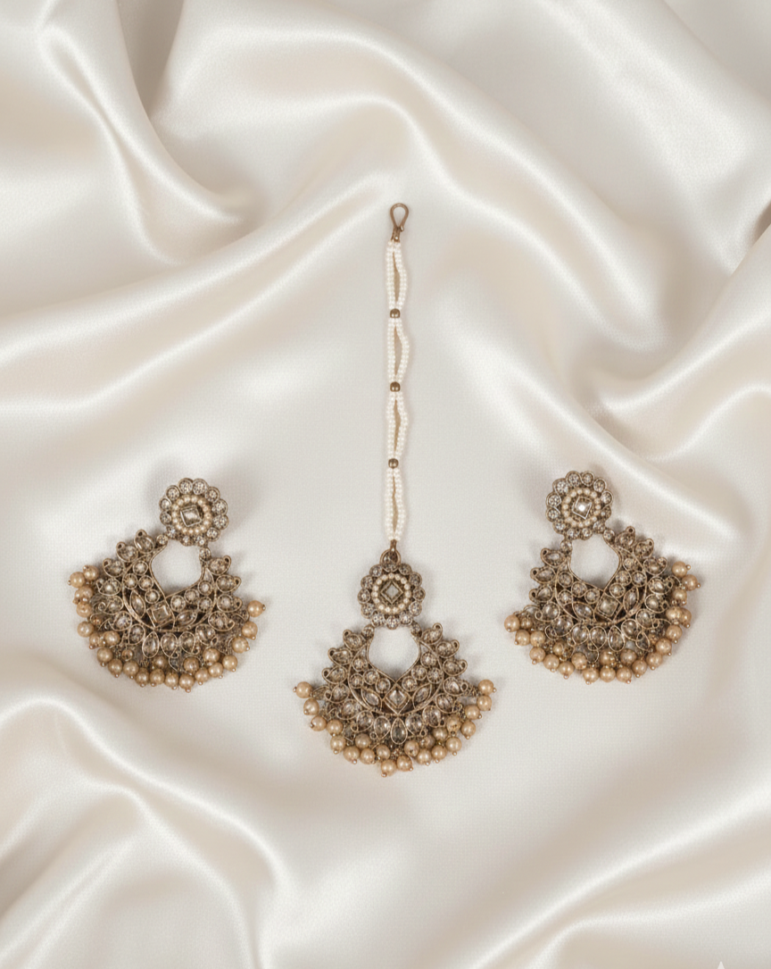 Antique Gold-Tone Earring and Maang Tikka Set For Woman & Girls