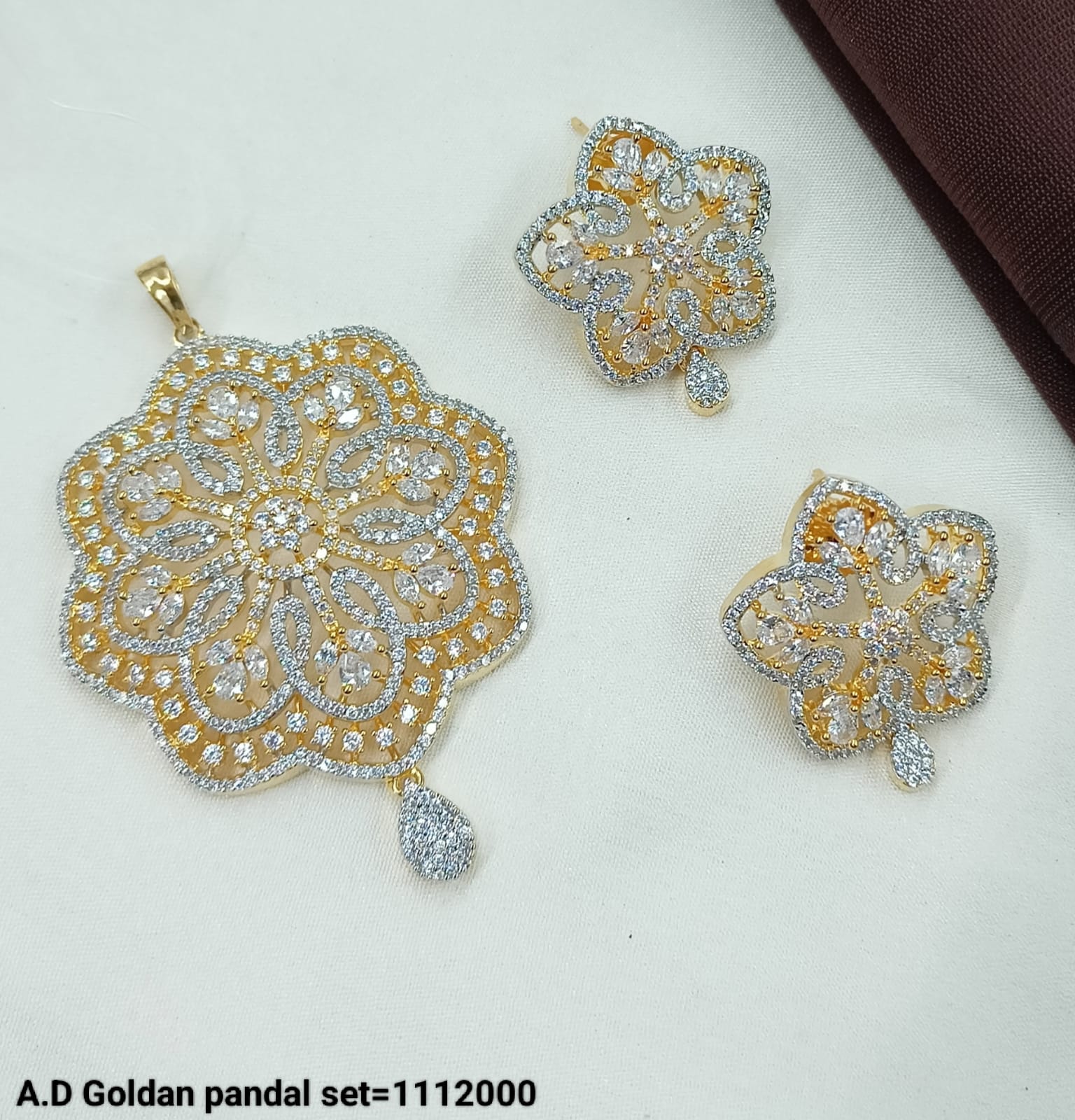 A.D Goldan Flower Motif Pendant Set – Elegant CZ Stone Jewelry by LucenteMarket