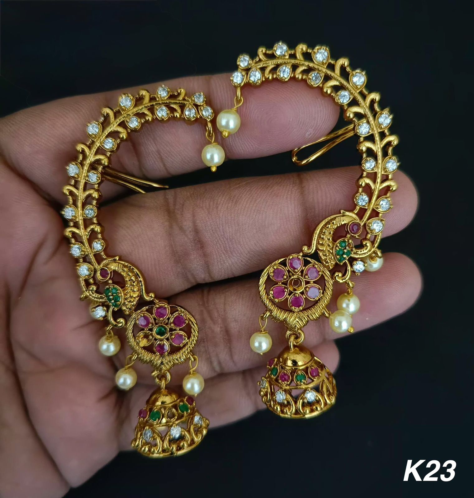 This women's earcuff showcases a peacock design adorned with American diamonds and finished with a gold plating, offering a sophisticated and stylish accessory.