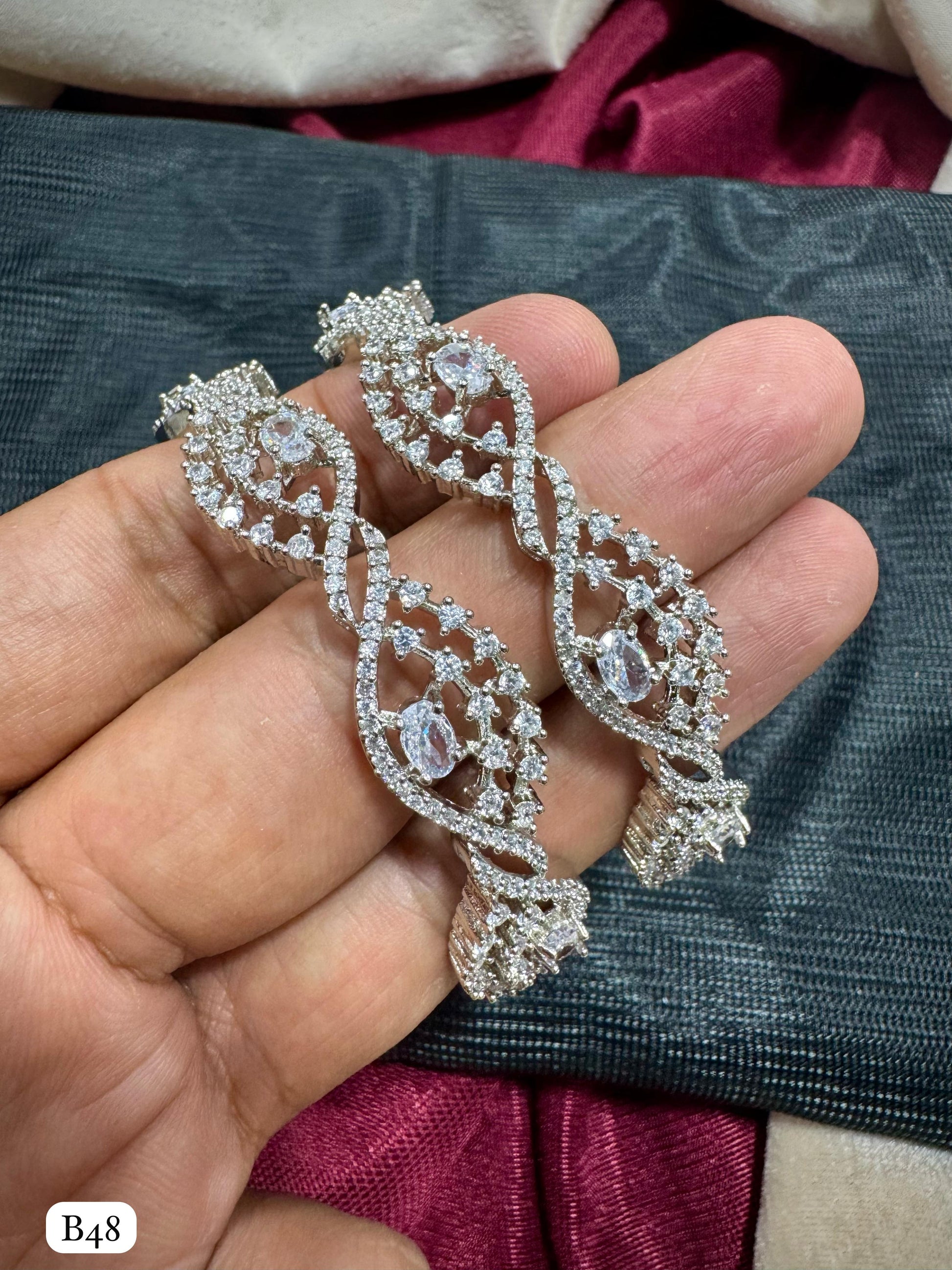 As an expert in the jewelry industry, I can confidently assert that these American Diamond Silver Plated Bangles are a must-have for any fashion-forward individual. Made with high-quality materials and intricate design, these bangles offer a touch of elegance and sophistication to any outfit. With their sparkling American diamond details and silver-plated finish, these bangles are truly a statement piece.
