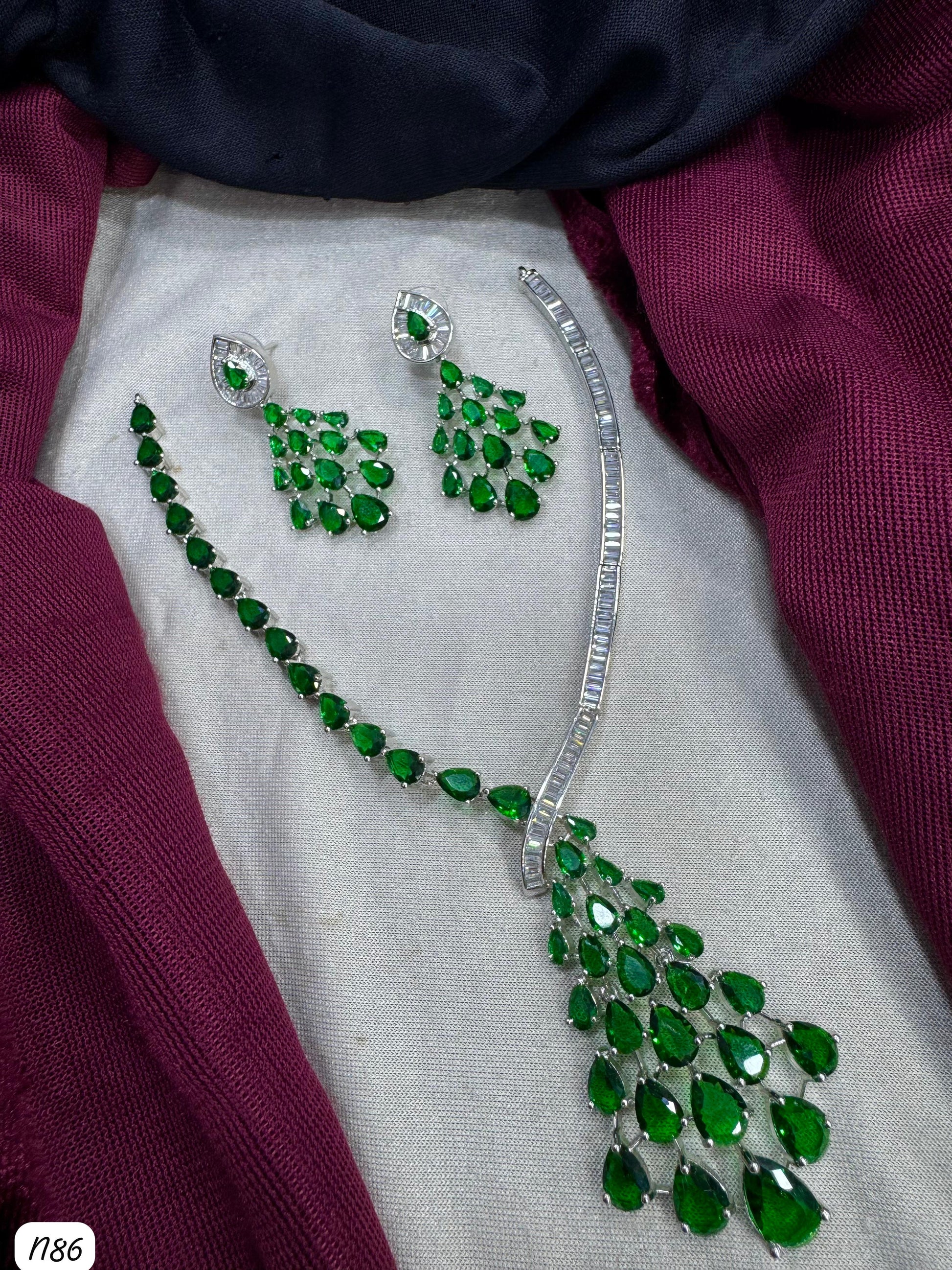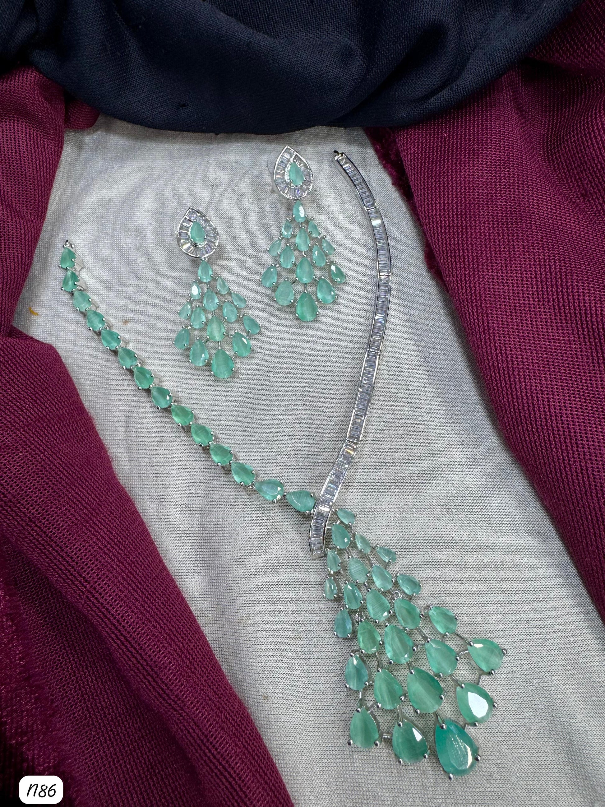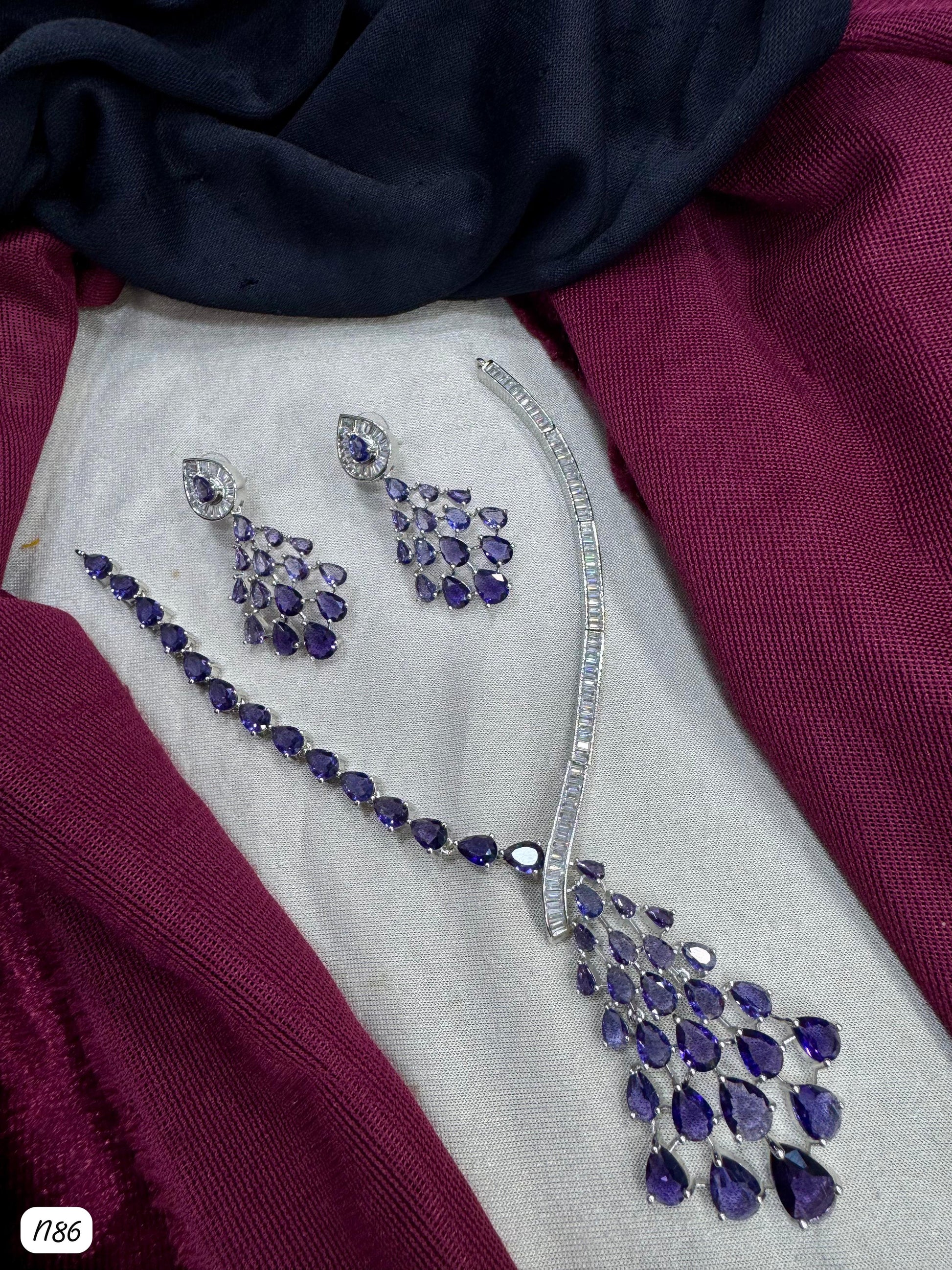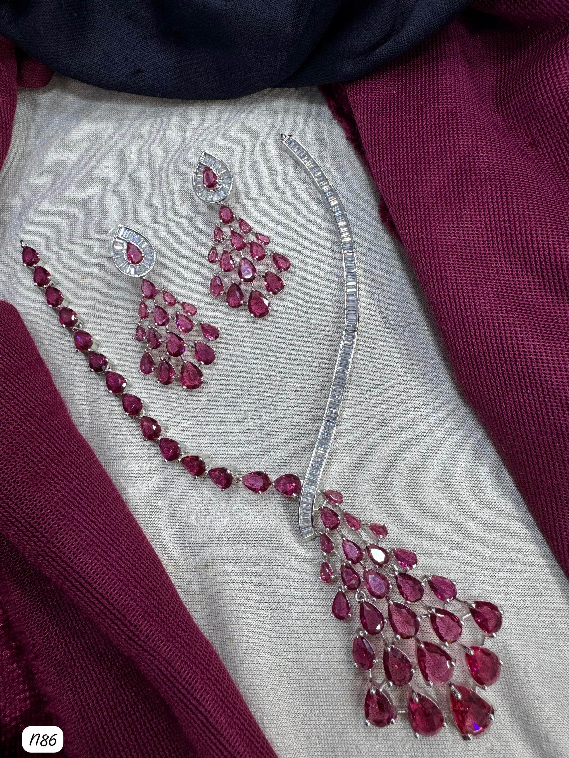 This necklace set features American diamonds elegantly set on a silver-plated base, combining timeless beauty with expert craftsmanship.