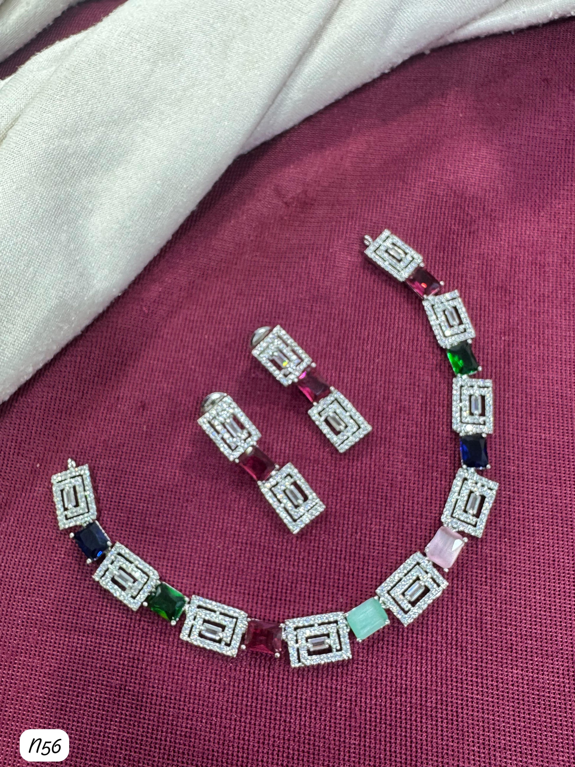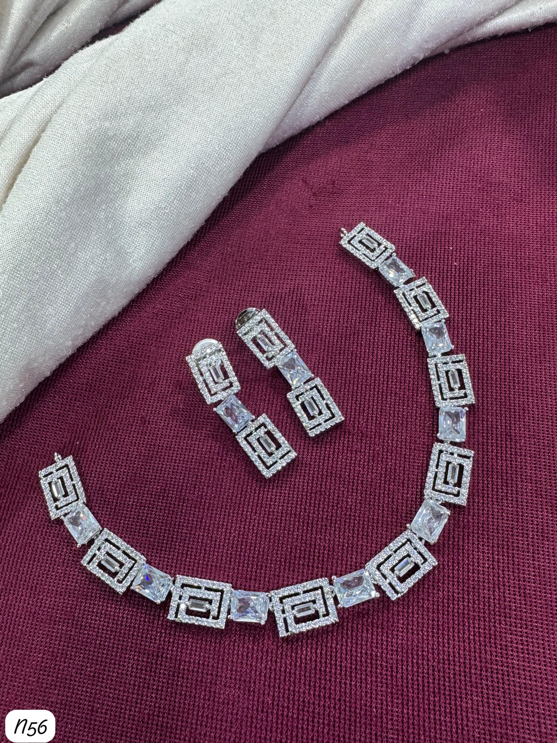 Elegant Geometric Necklace and Earrings Set with Sparkling AD Stones