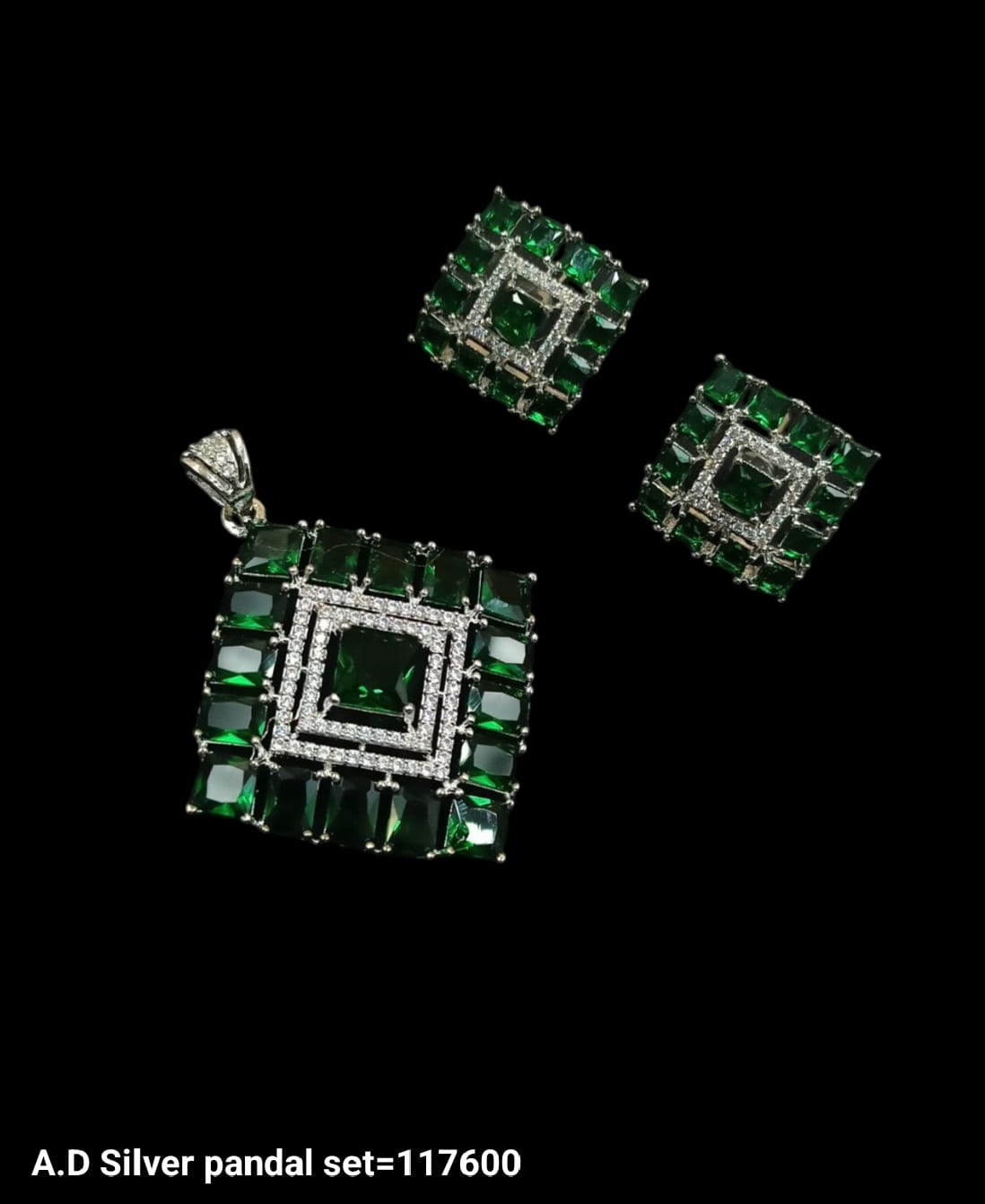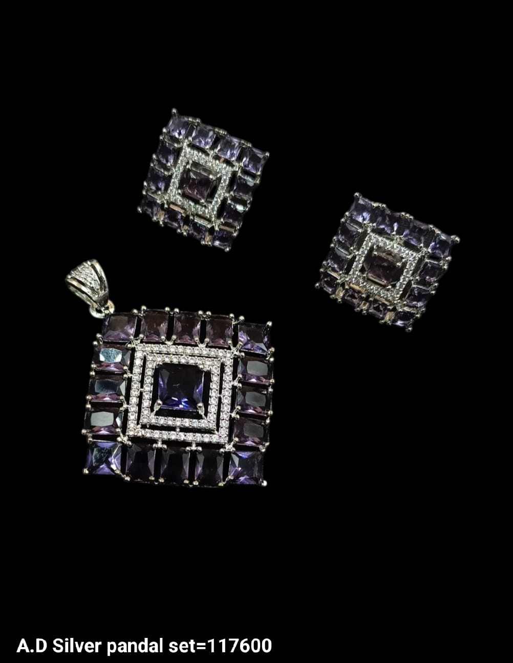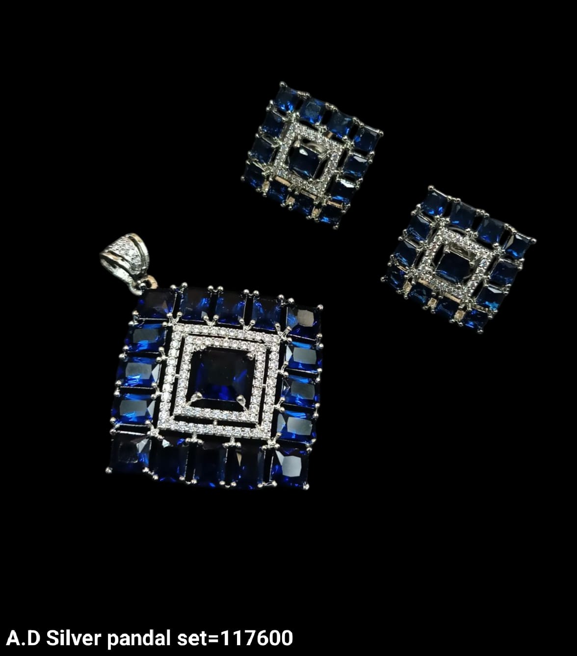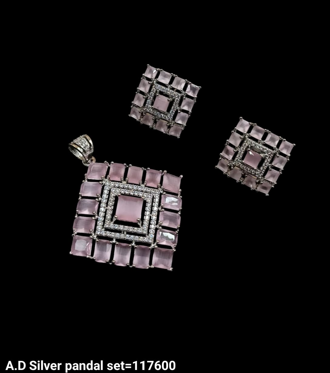 This pendant set features American diamonds elegantly set on a silver-plated base, combining timeless sparkle with refined craftsmanship.