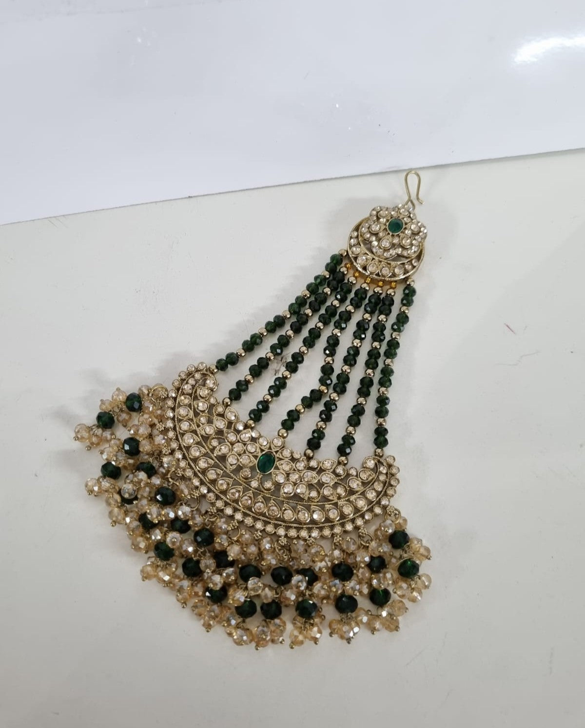 Jewellery Care: To preserve the intricate beadwork and the gold finish, avoid contact with water, perfumes, and hairsprays. After use, wipe gently with a soft dry cloth and store in an airtight container to prevent oxidation.