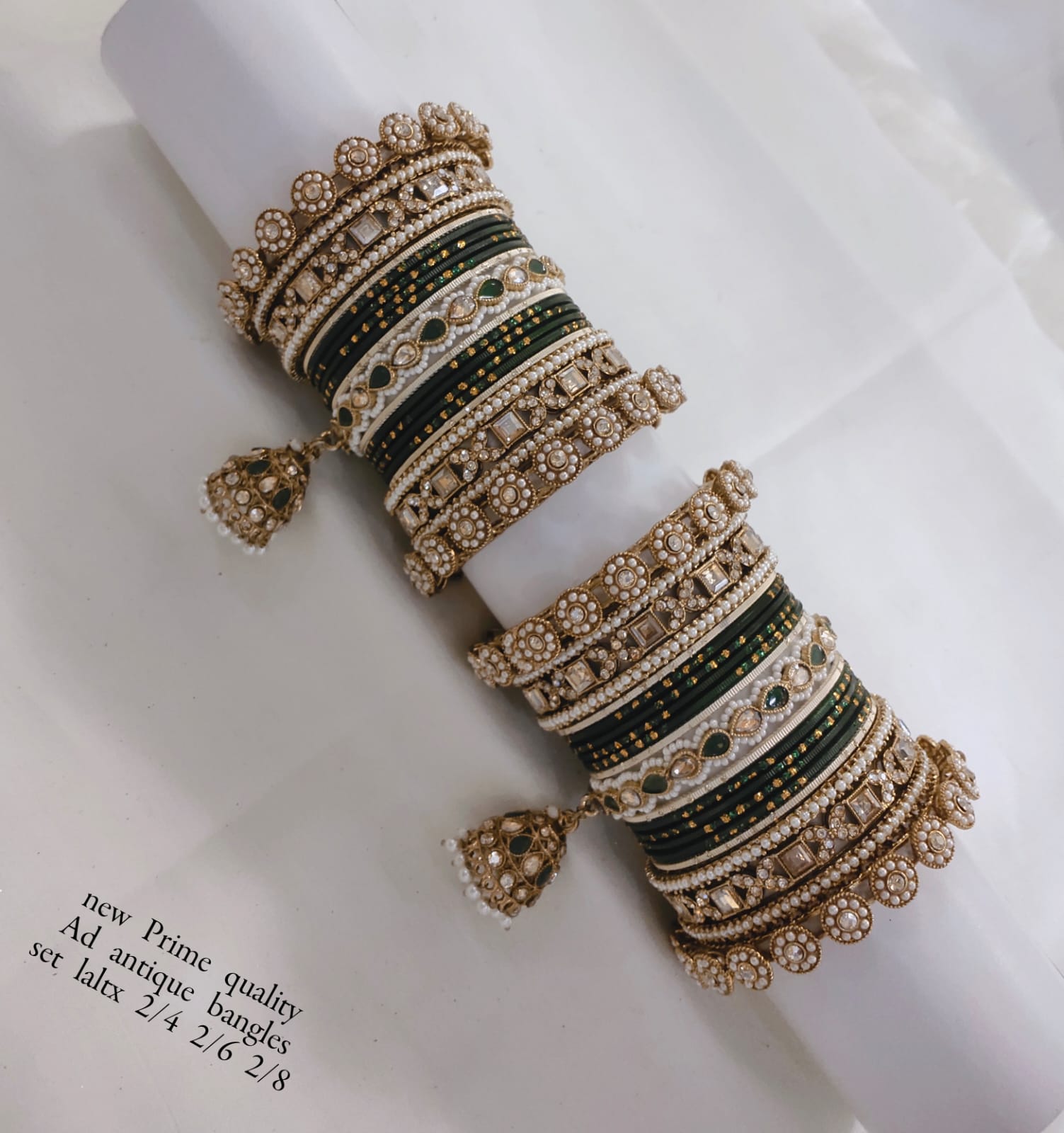 This set features bangles elegantly plated with antique gold, combining timeless design with expert craftsmanship.
