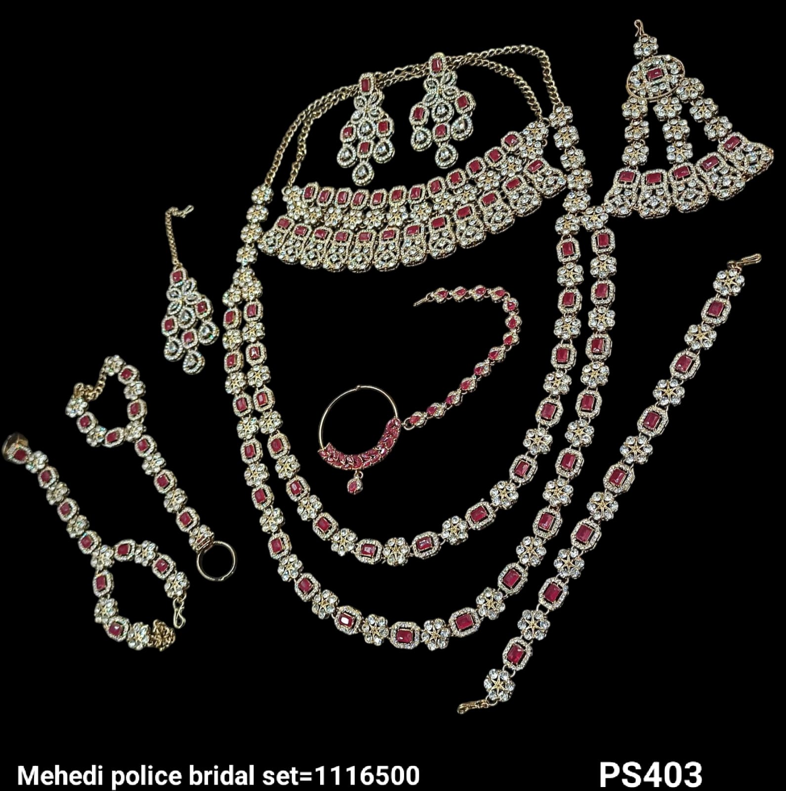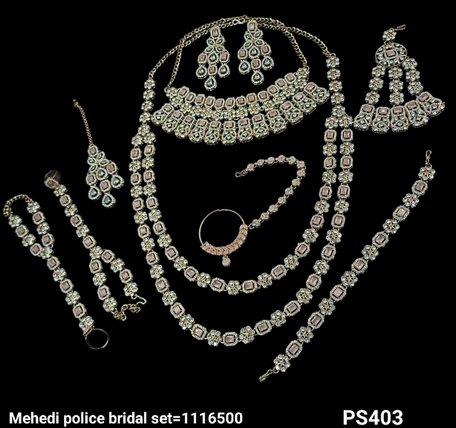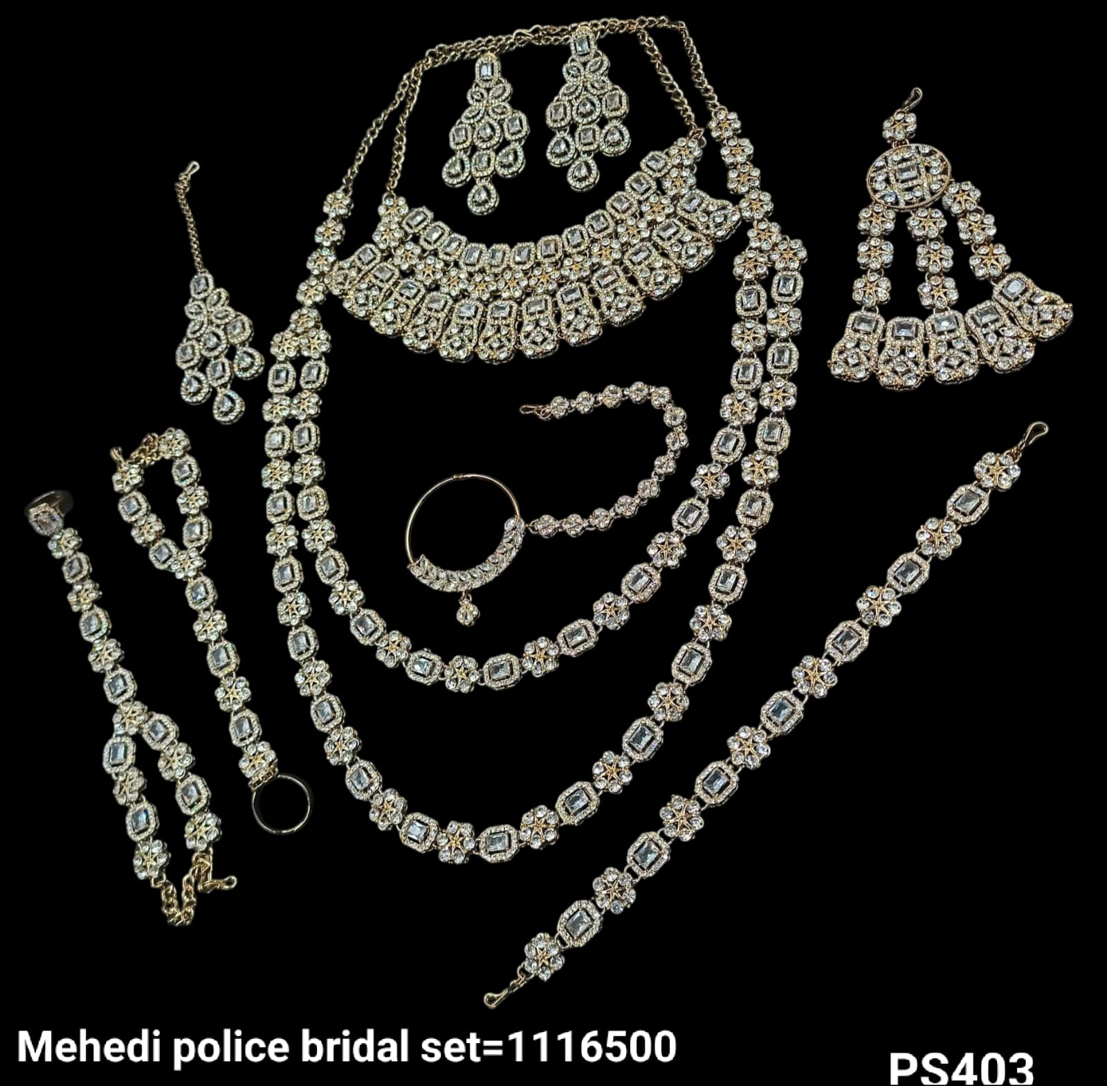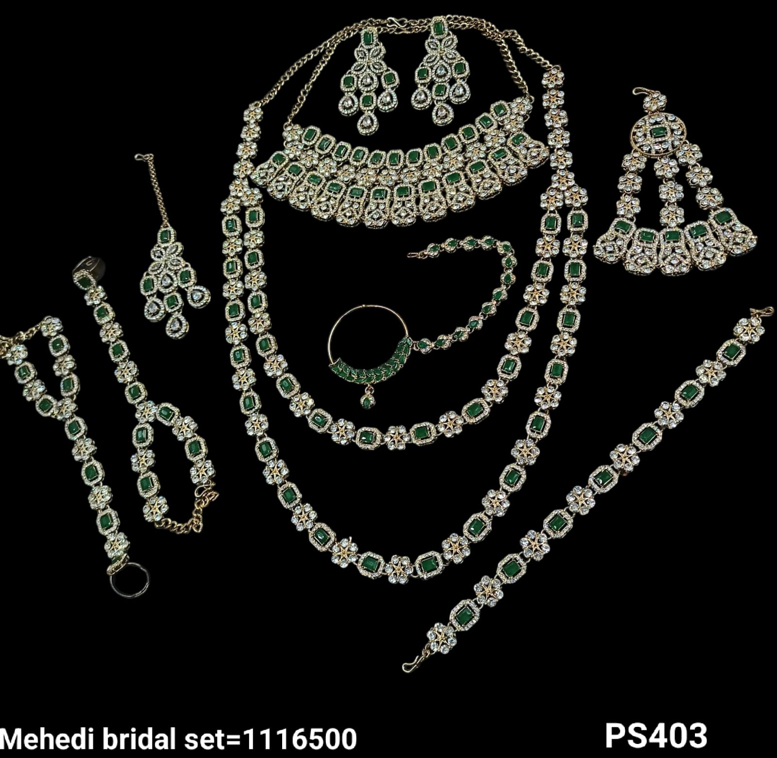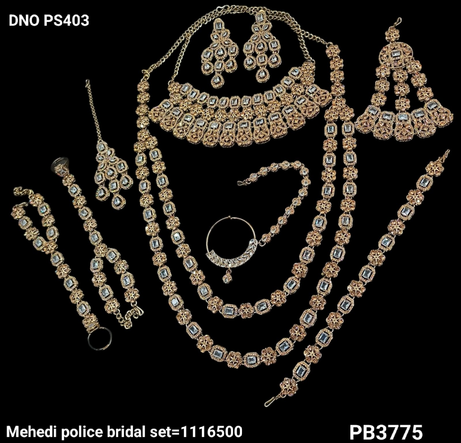 A meticulously crafted bridal set featuring elegant antique gold plating, perfect for adding a distinguished and timeless appeal to your bridal look.