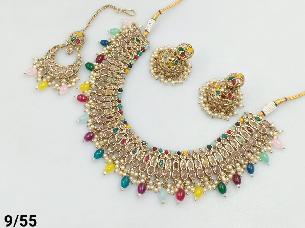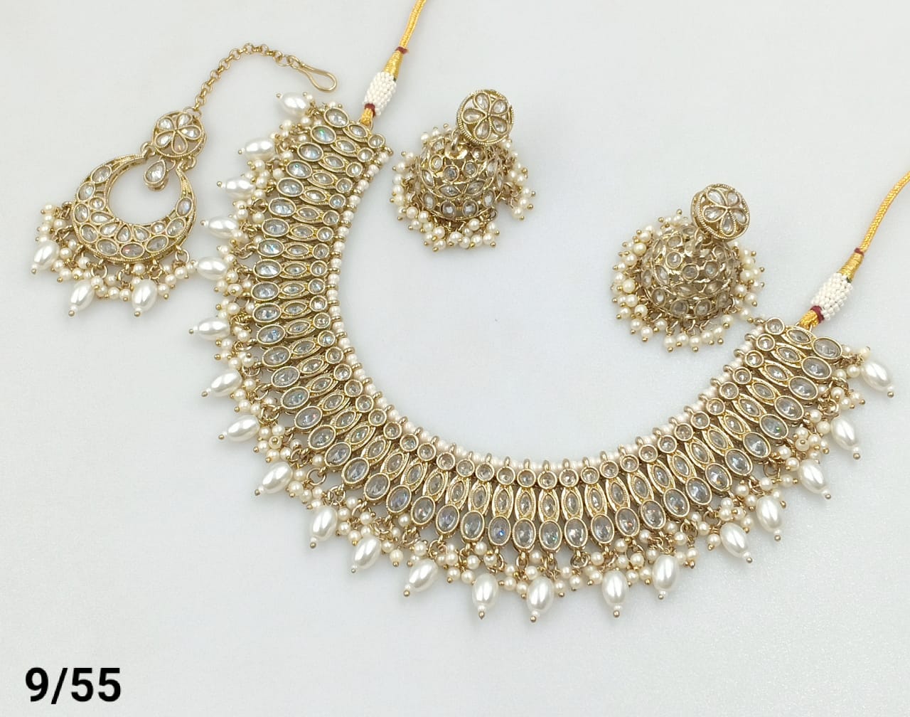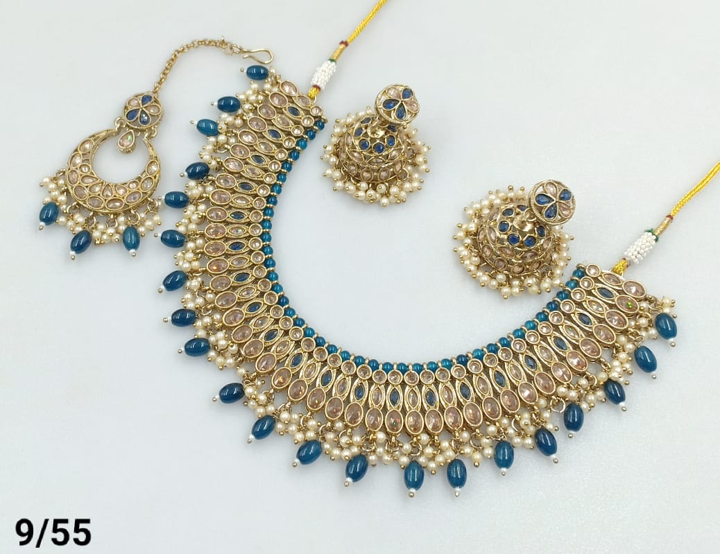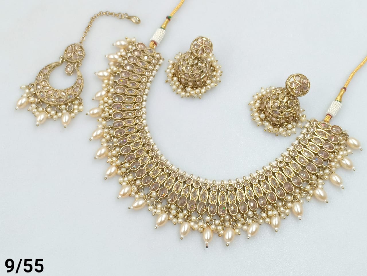 This choker necklace set features an antique gold plating, combining classic charm with refined craftsmanship for a sophisticated accessory.