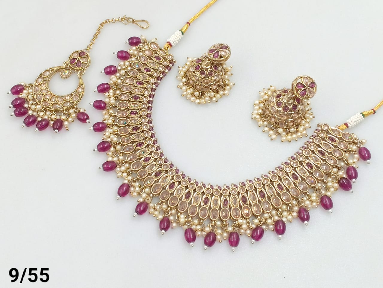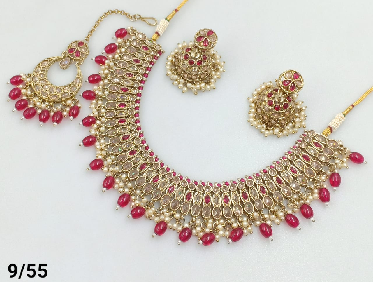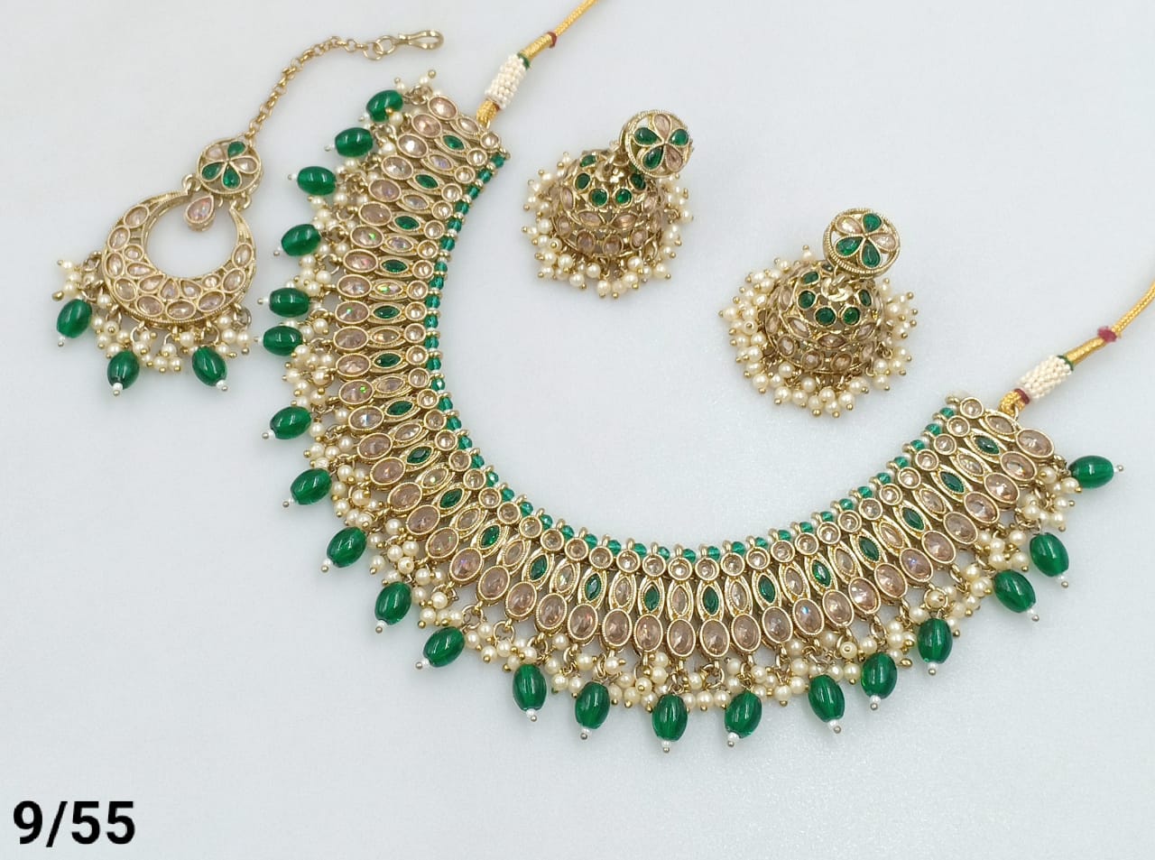 This choker necklace set features an antique gold plating, combining classic charm with refined craftsmanship for a sophisticated accessory.