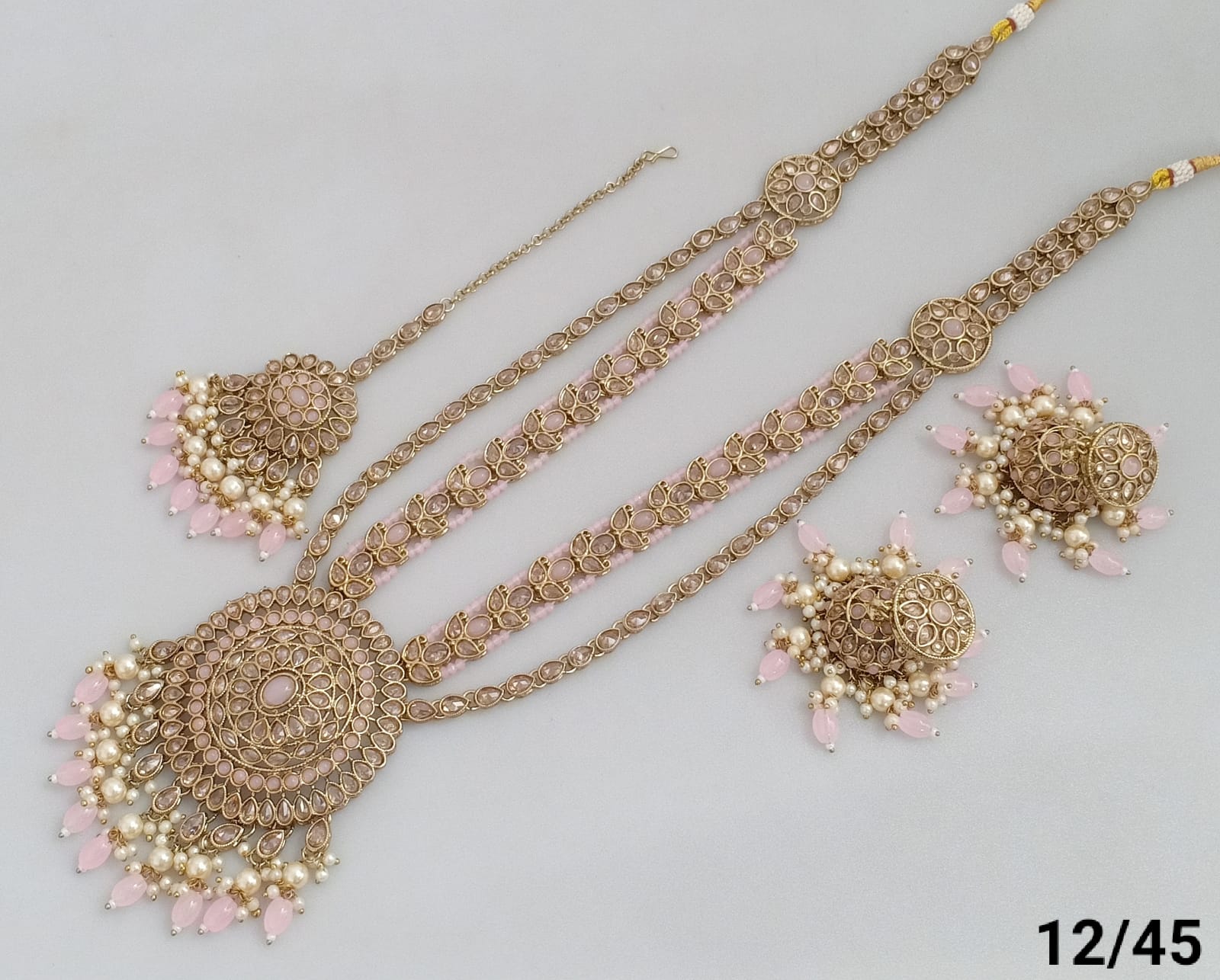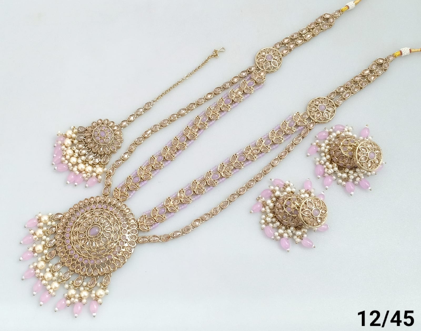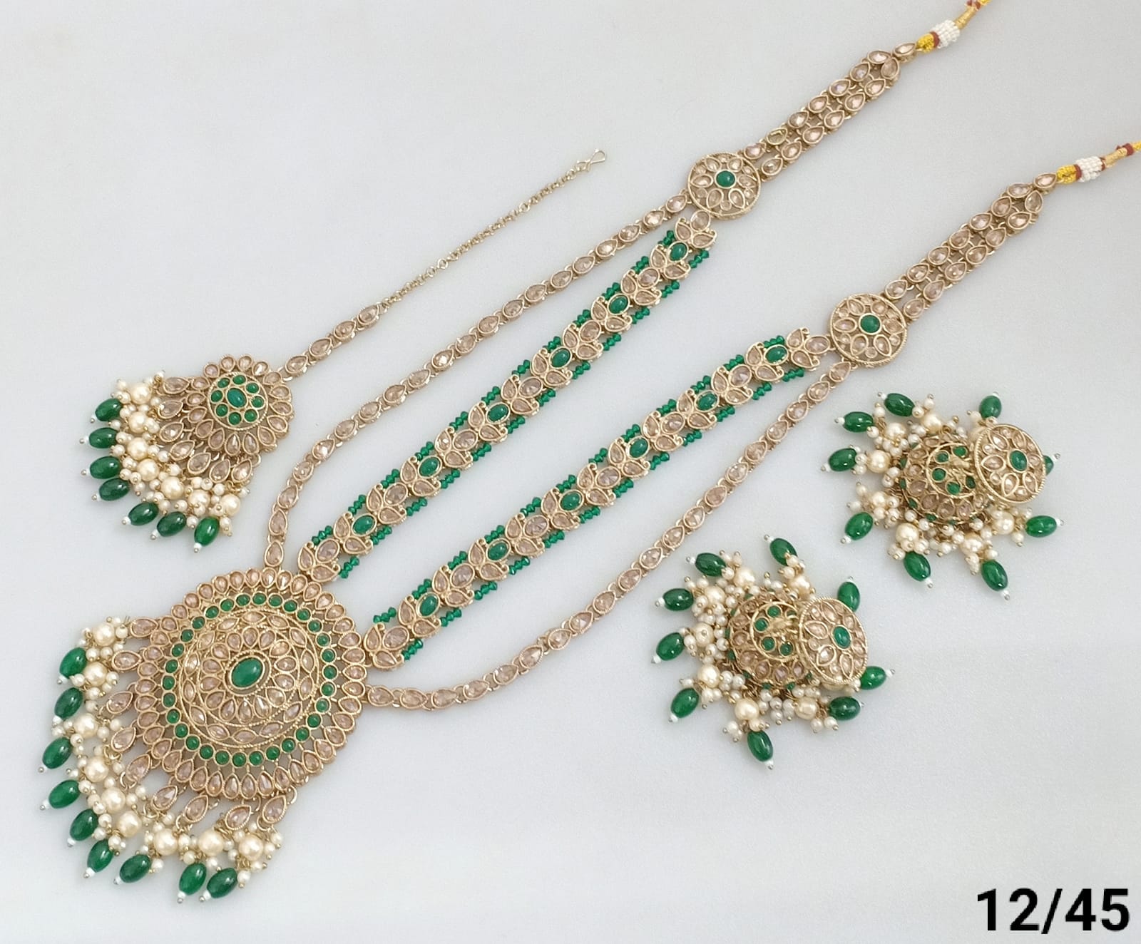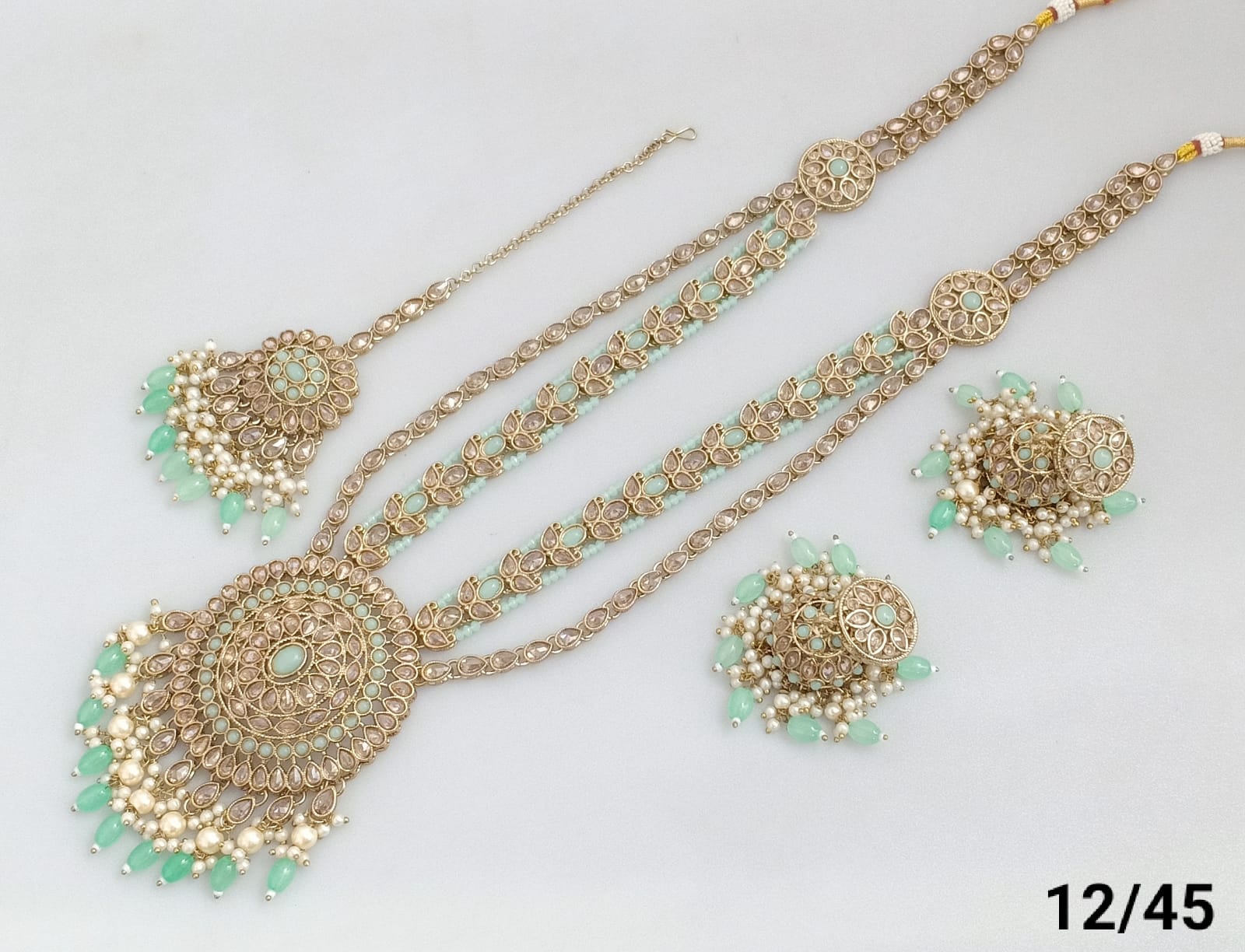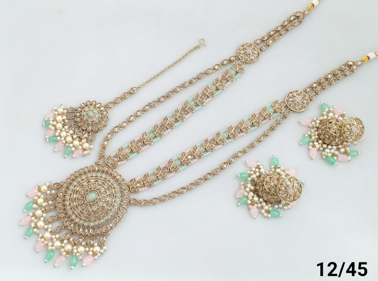 This exquisite necklace set features an antique gold plating, combining timeless elegance with expert craftsmanship.