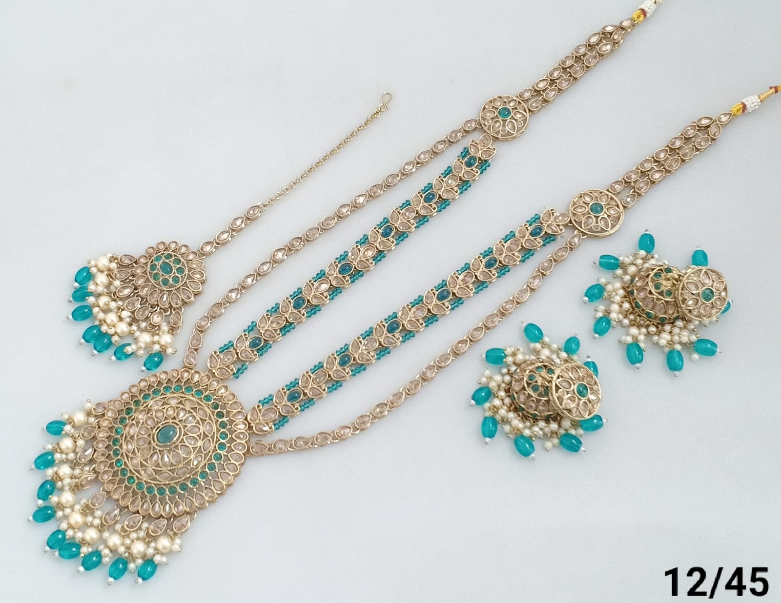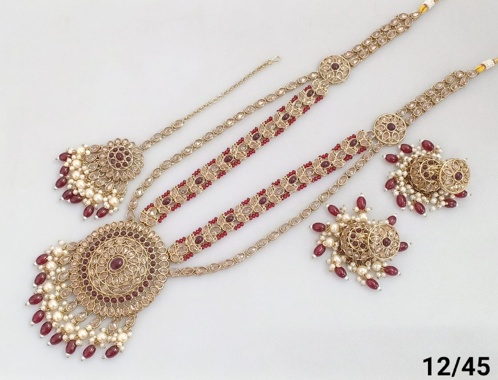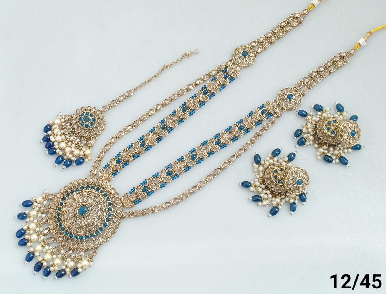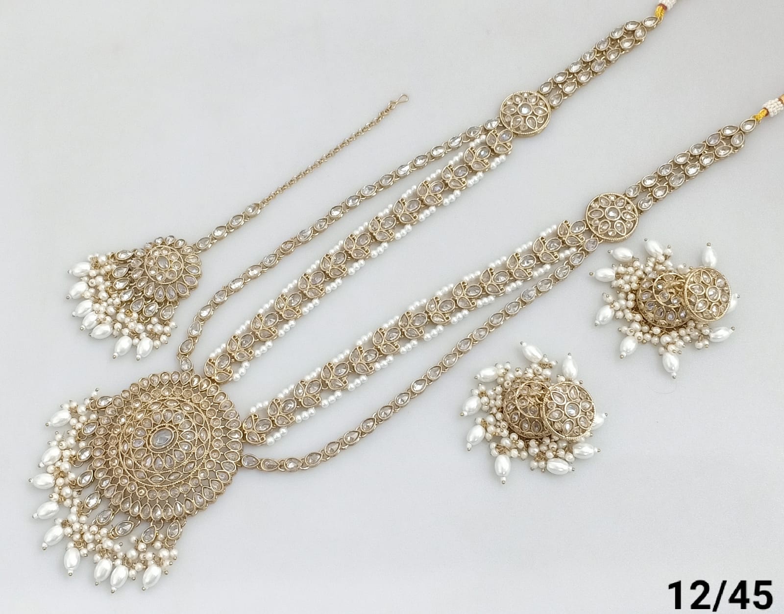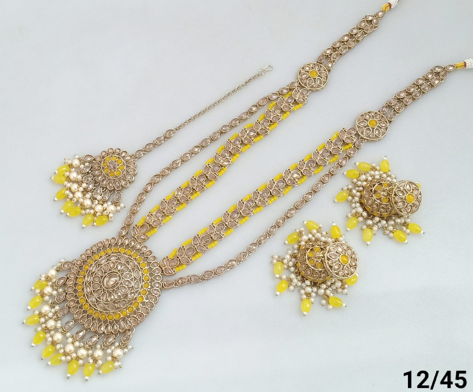 This exquisite necklace set features an antique gold plating, combining timeless elegance with expert craftsmanship.