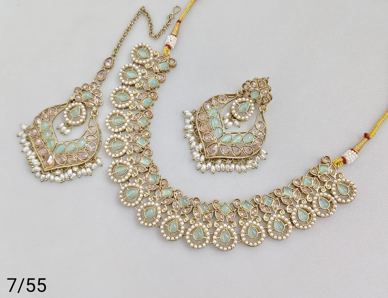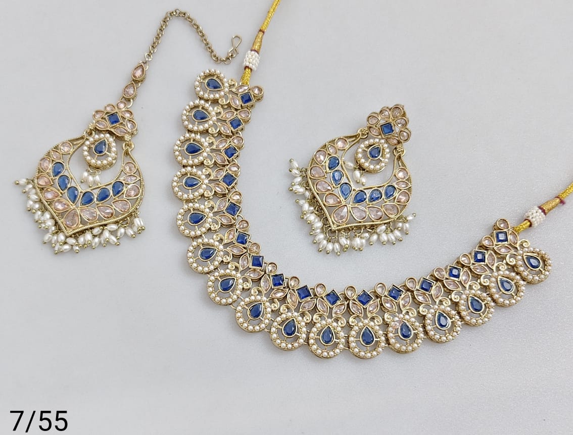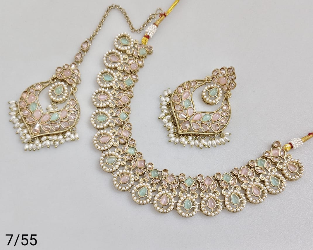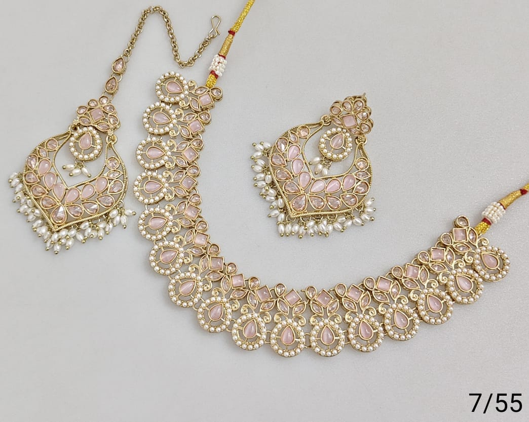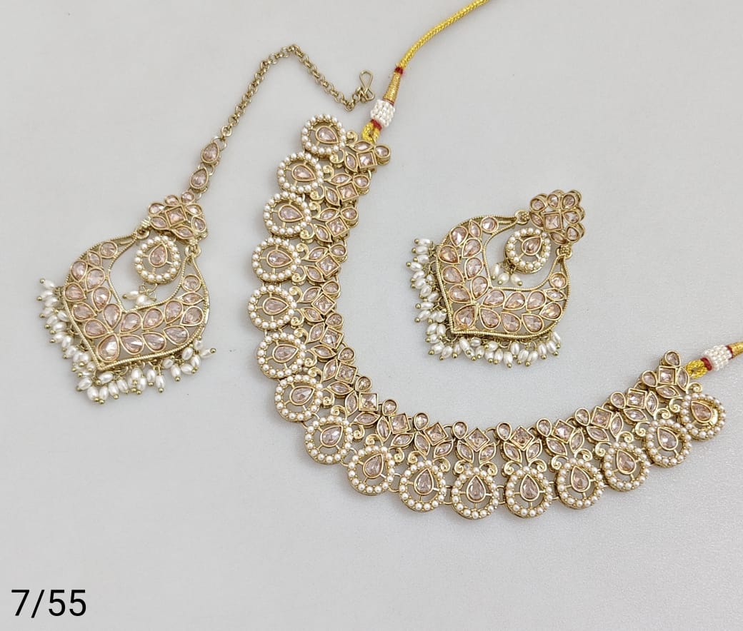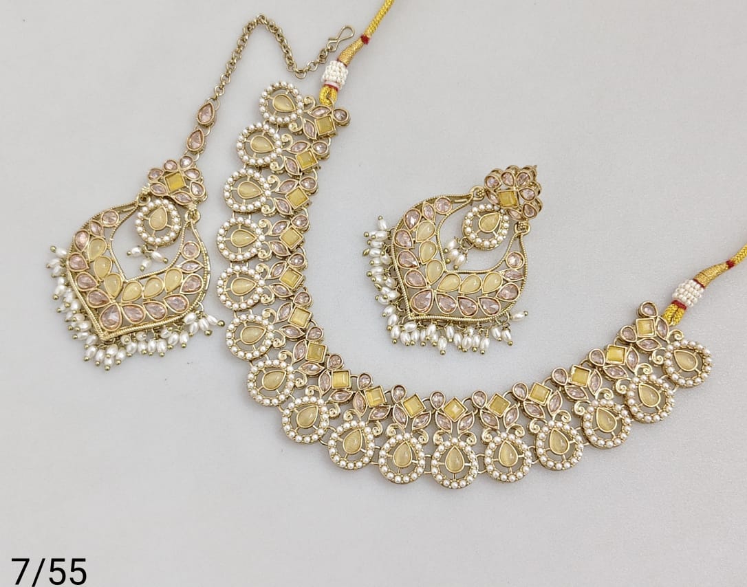 Elegant necklace set crafted with antique gold plating, showcasing refined artistry and classic design.