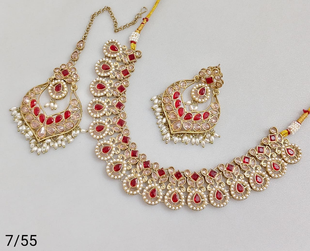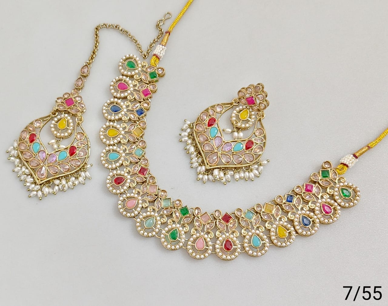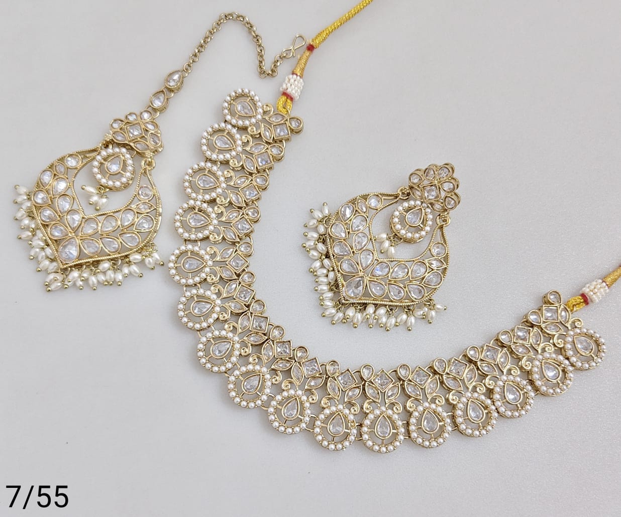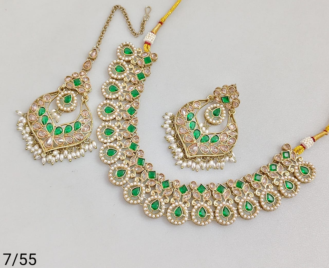 Elegant necklace set crafted with antique gold plating, showcasing refined artistry and classic design.