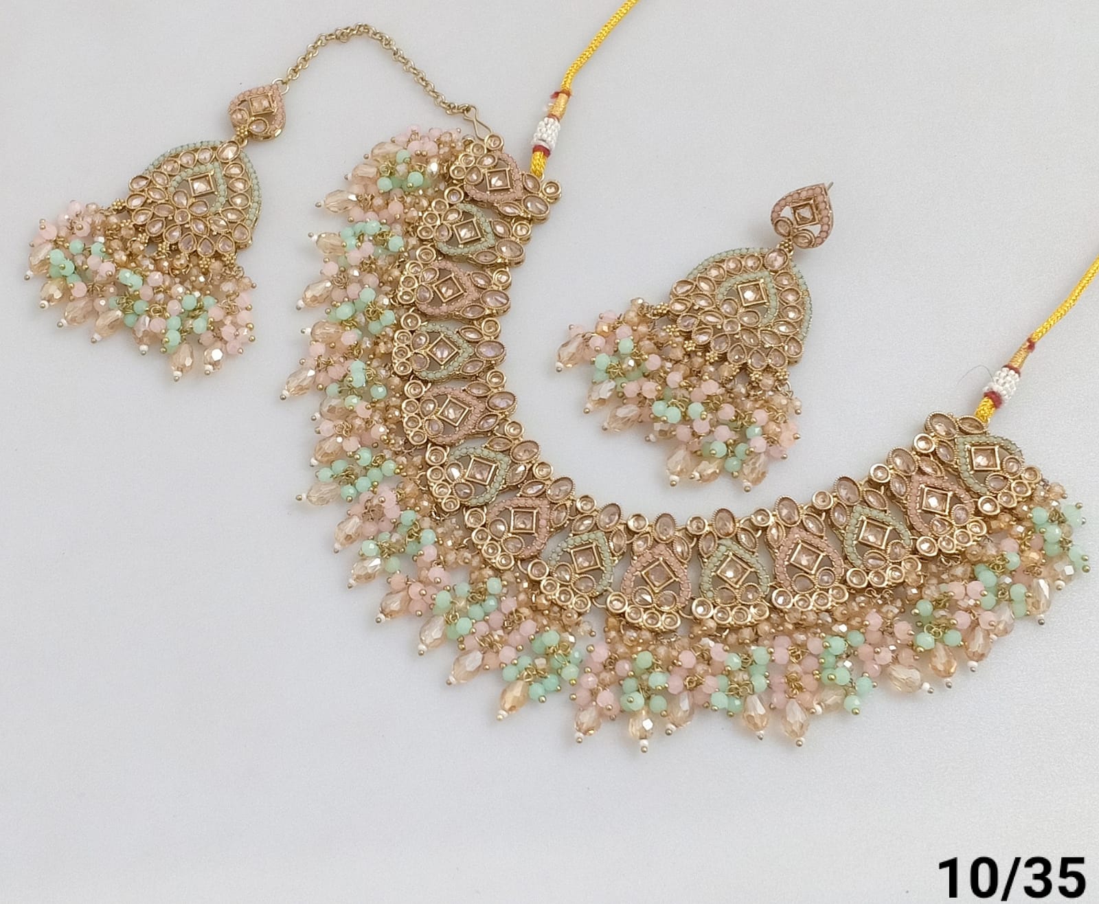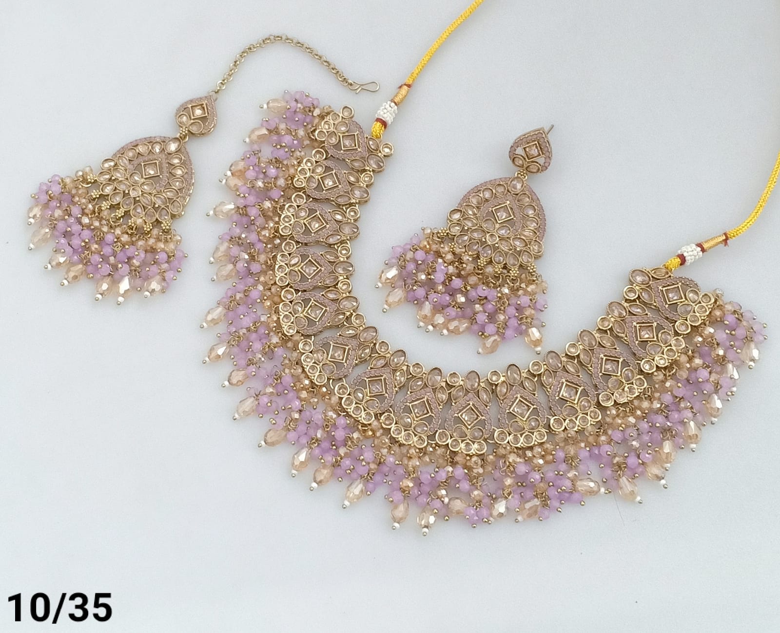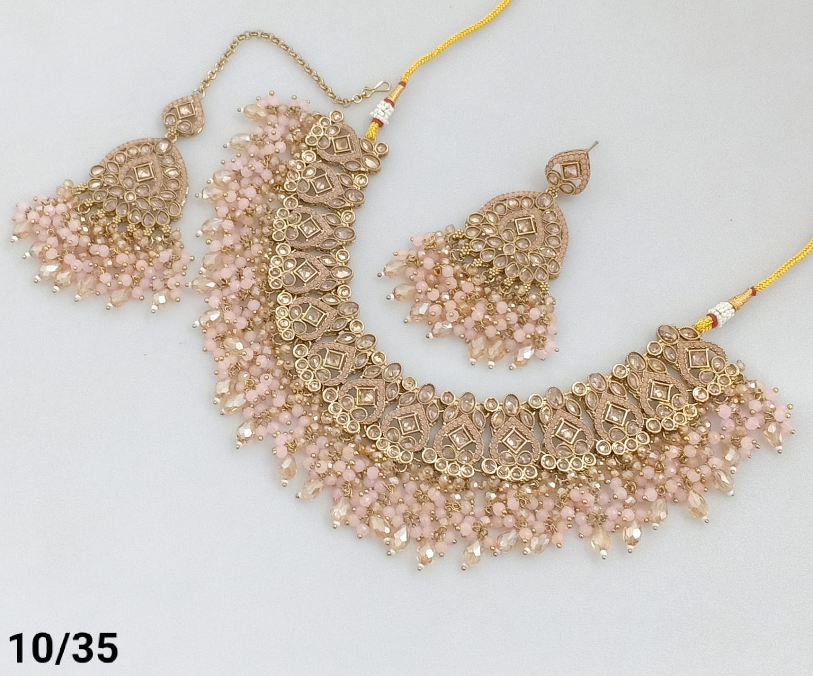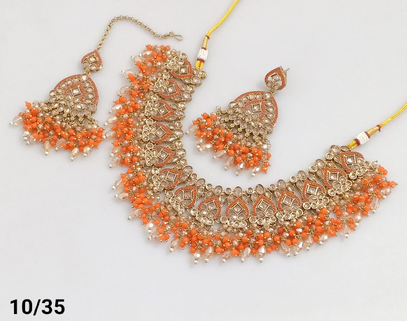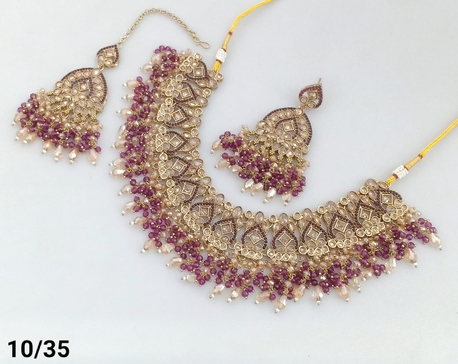 Features exquisite pearls and beads, blending classic elegance with intricate craftsmanship. The gold plating offers a rich, vintage look, Ideal for enhancing traditional and formal ensembles, this set delivers a refined statement with expert detailing.