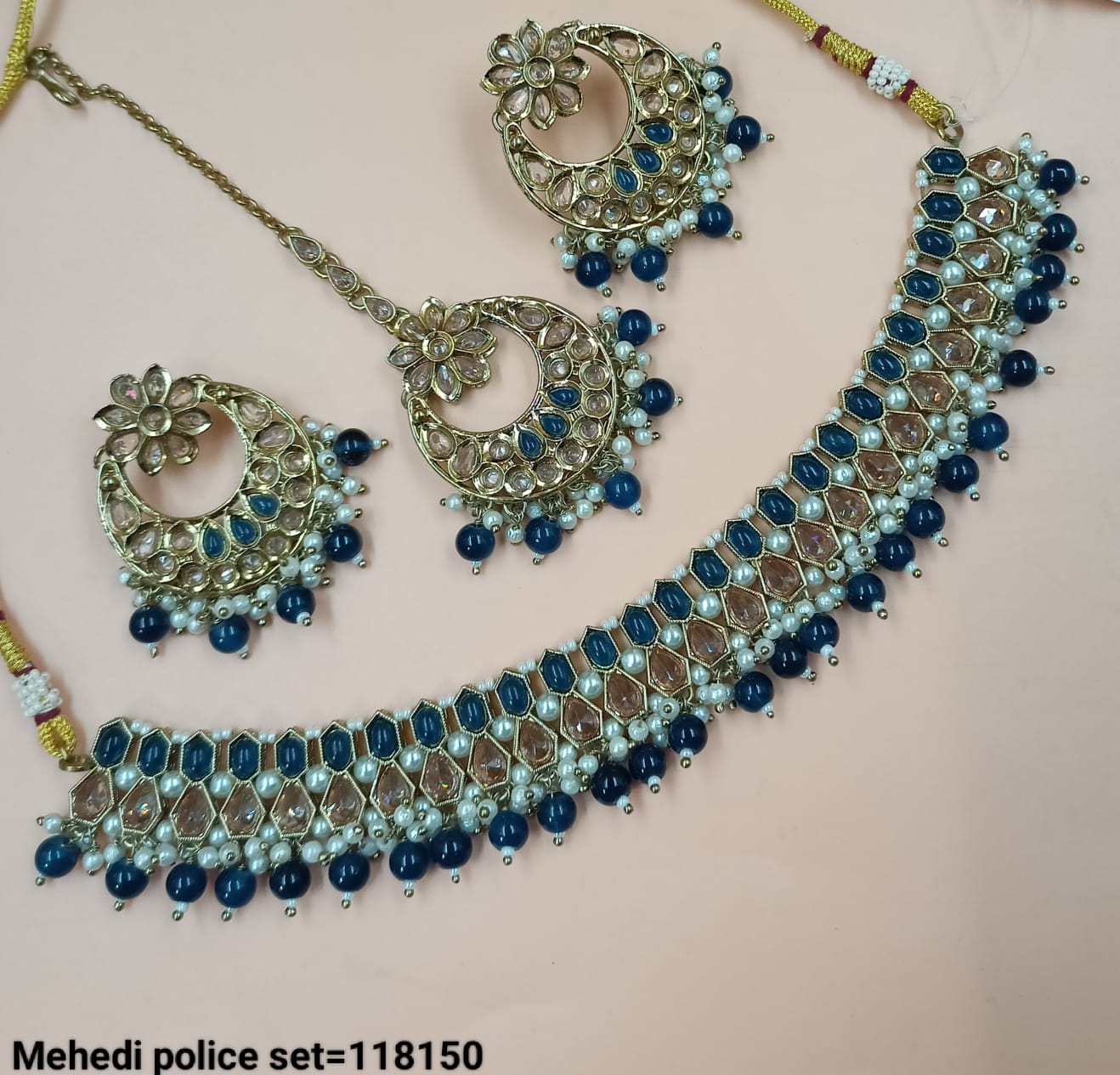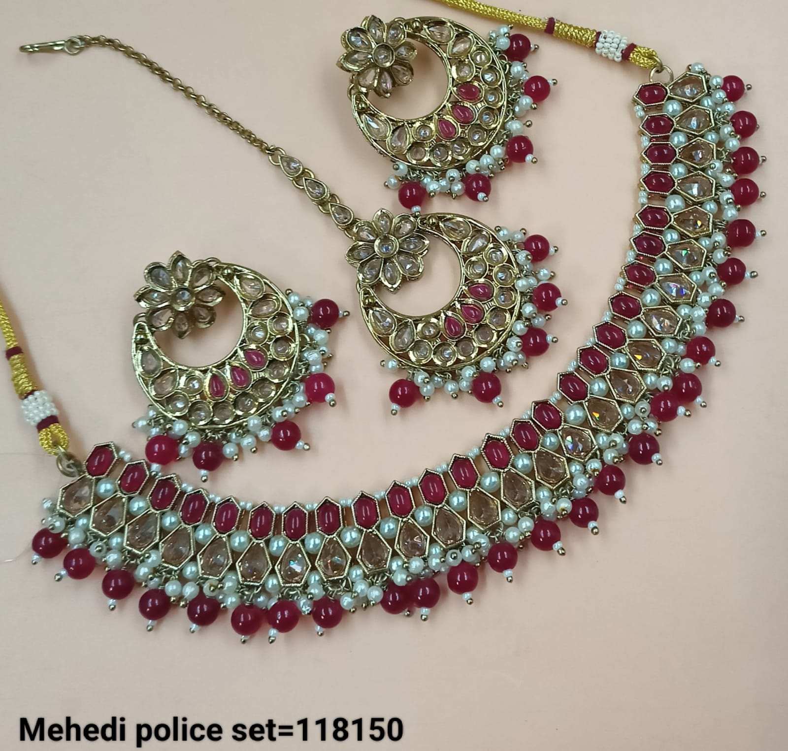 Step into timeless elegance with this Traditional CZ Necklace and Earring Set, meticulously designed to showcase classic beauty with a modern twist. Embellished with sparkling cubic zirconia stones and detailed with intricate beadwork, this set captures the essence of regal charm. The choker-style necklace is complemented by bold, floral-inspired earrings that add a statement touch to any ethnic or festive outfit. Ideal for weddings, traditional ceremonies, or festive occasions.