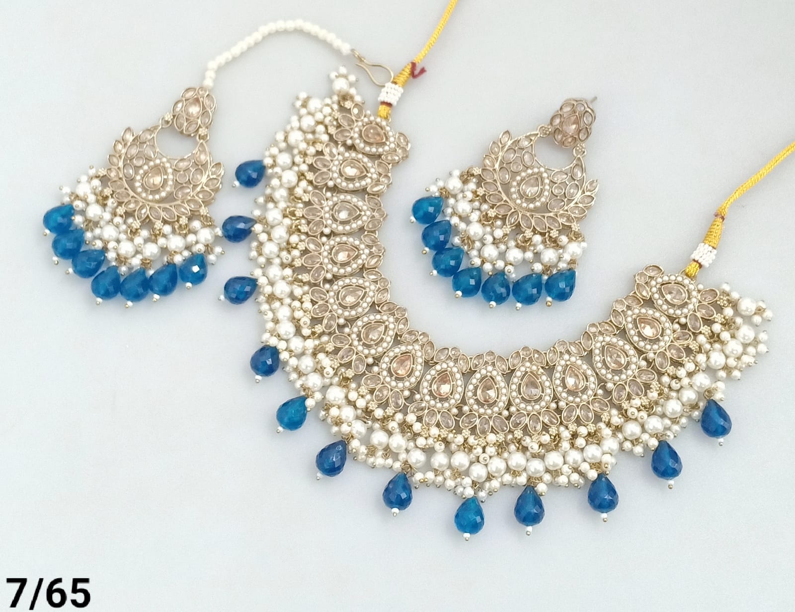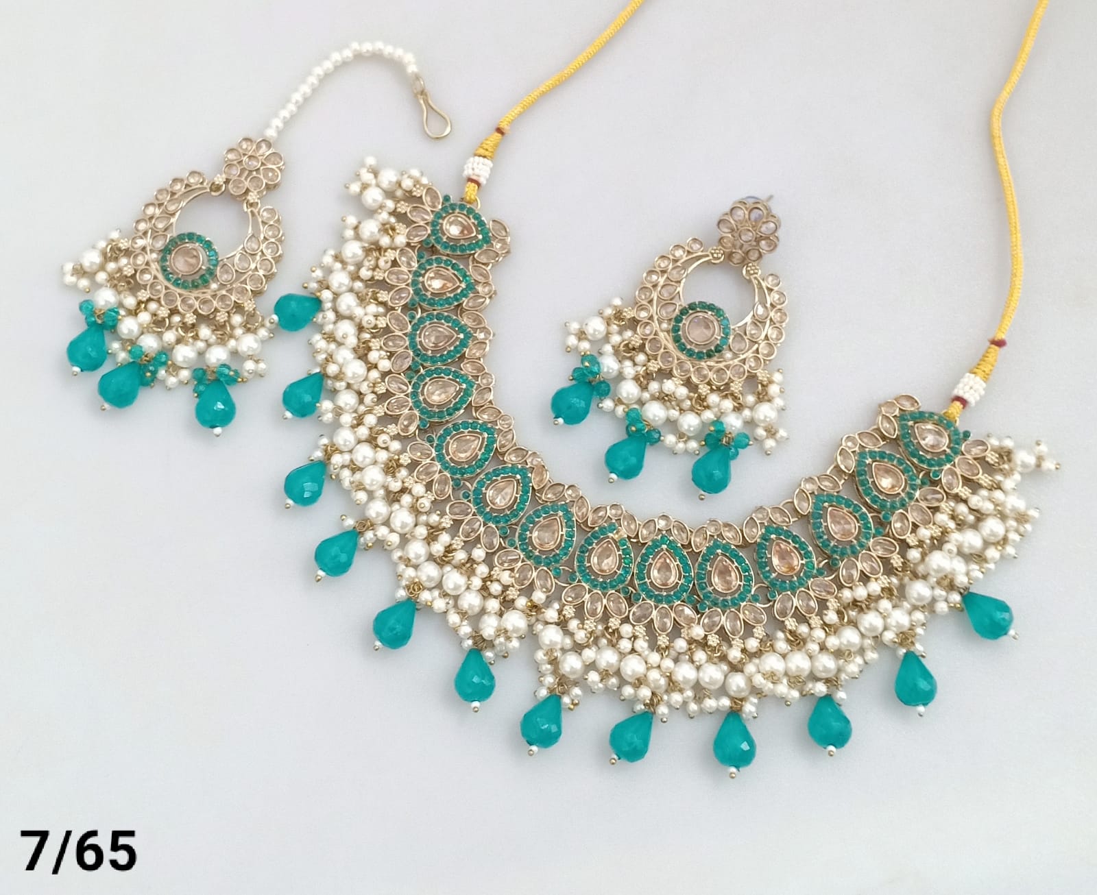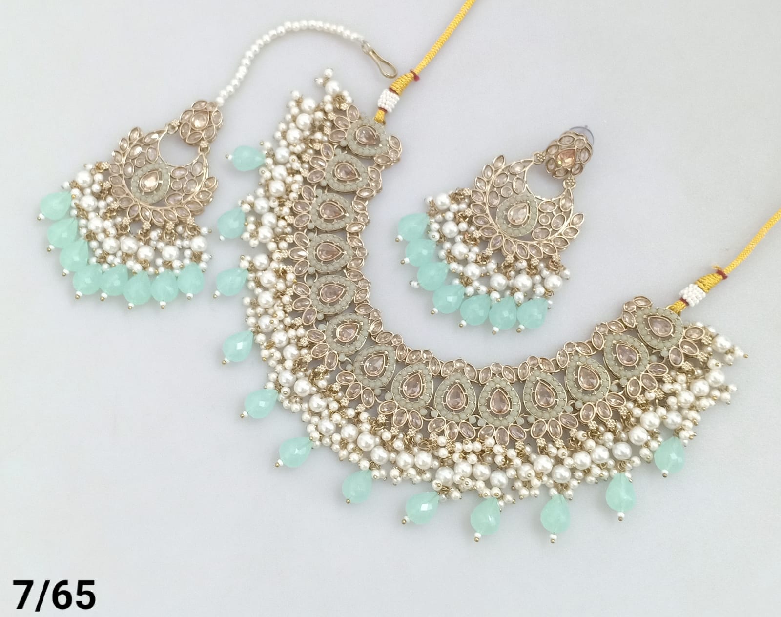 This exquisite choker necklace set features an antique gold plating, combining timeless elegance with expert craftsmanship.