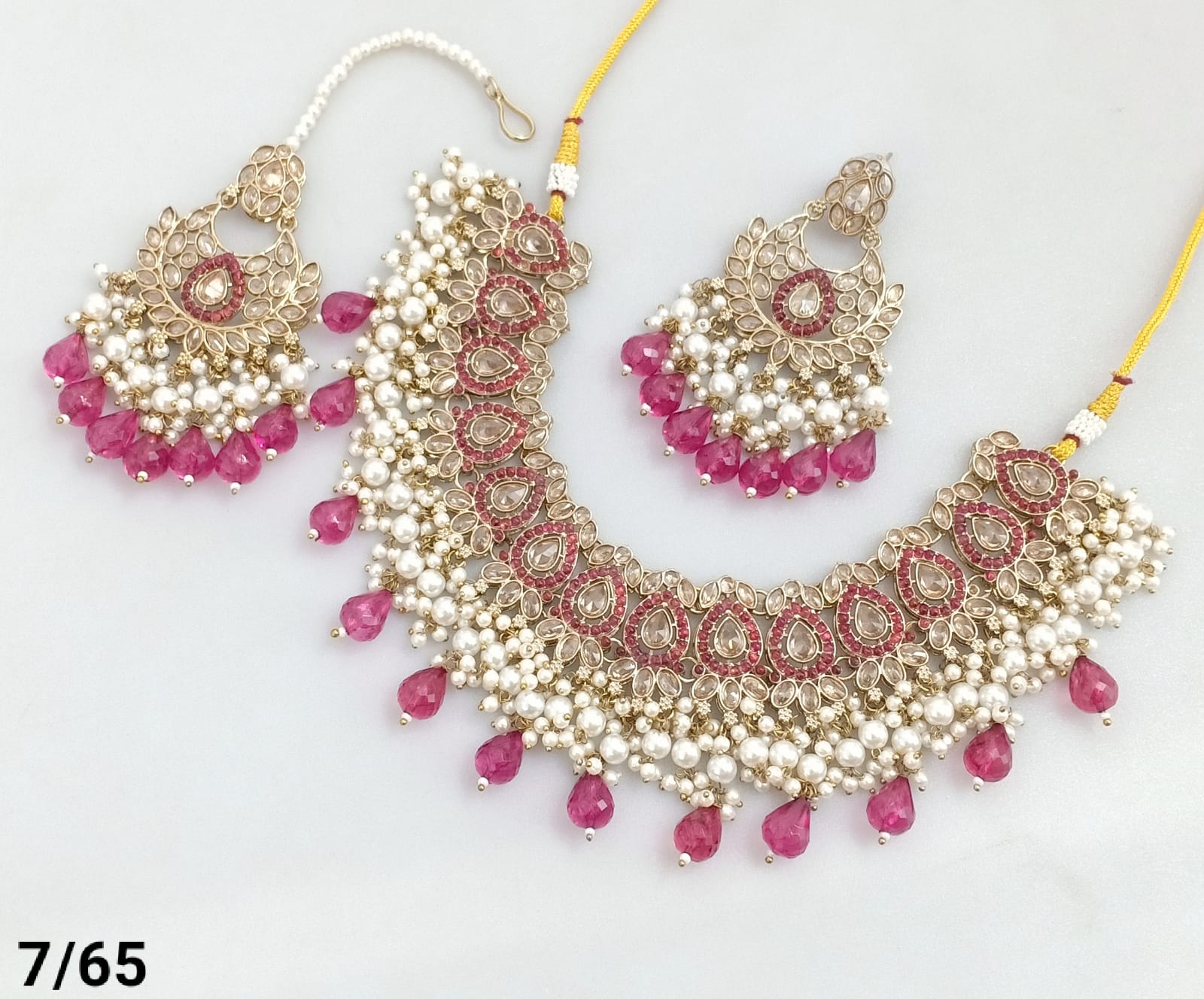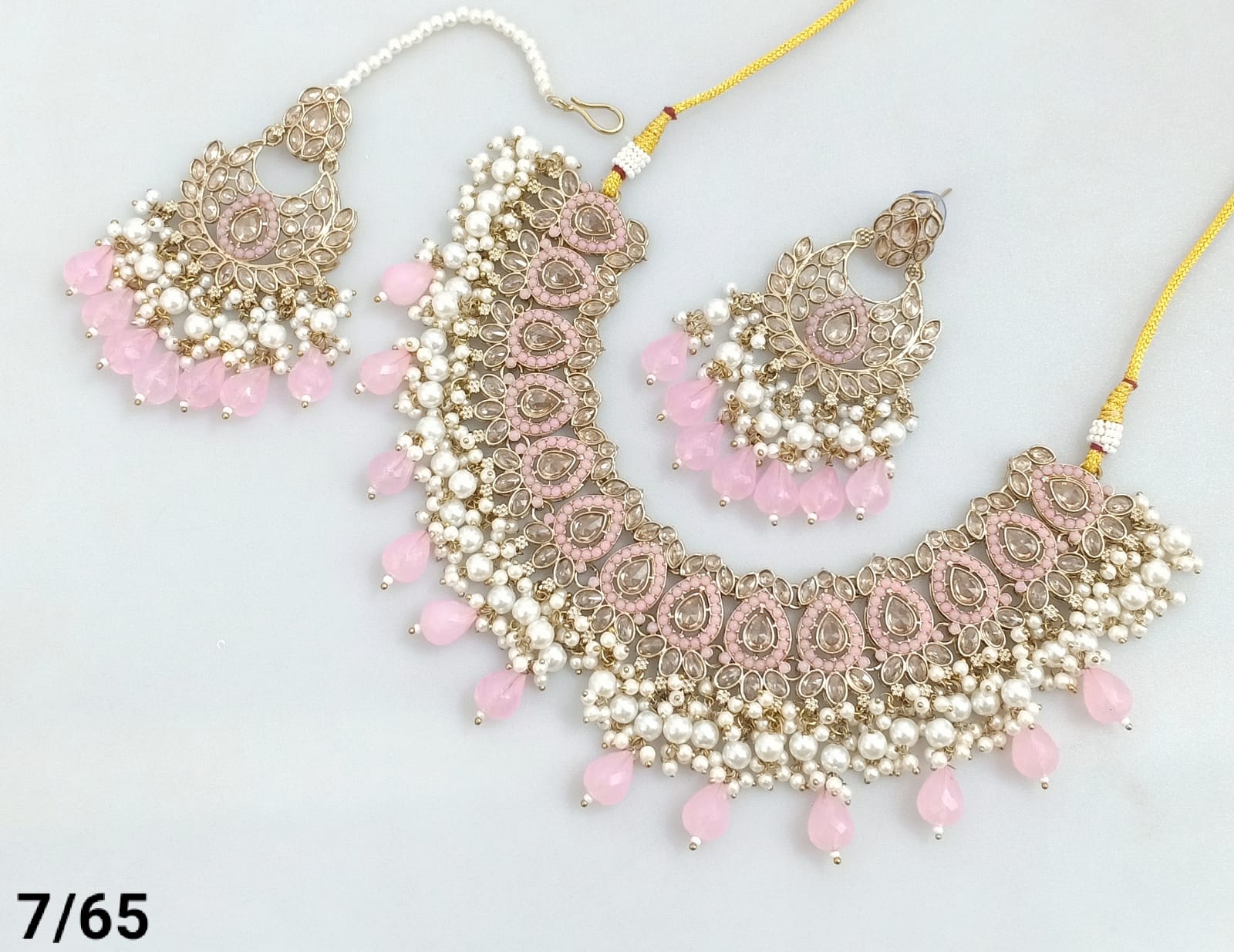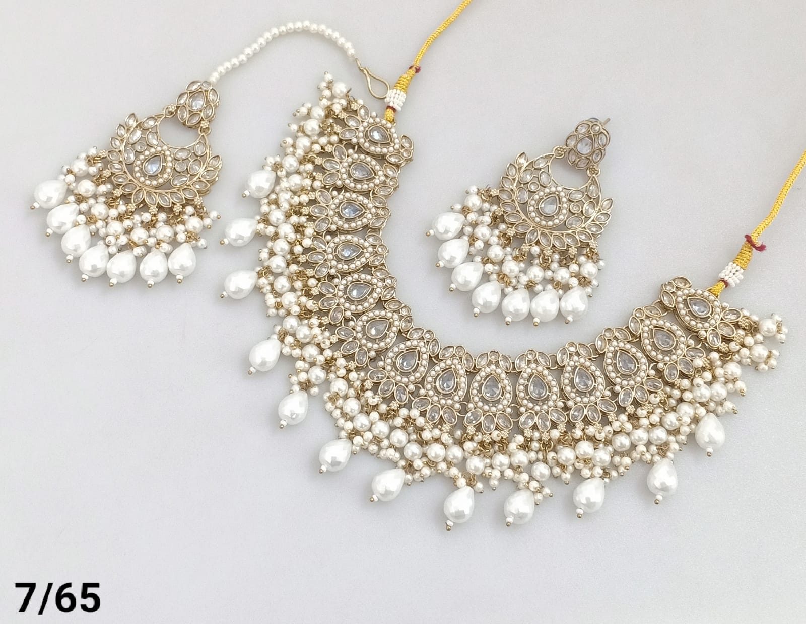 This exquisite choker necklace set features an antique gold plating, combining timeless elegance with expert craftsmanship.