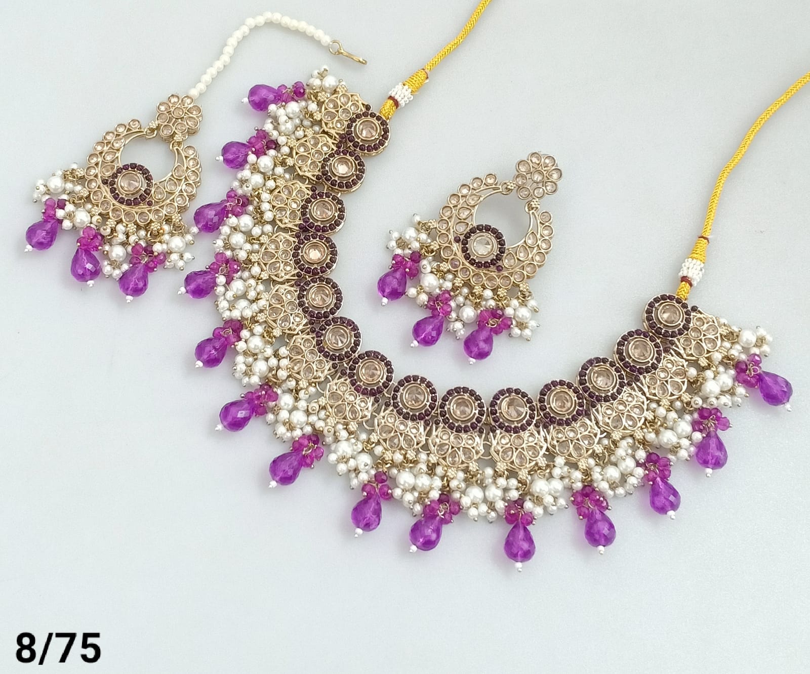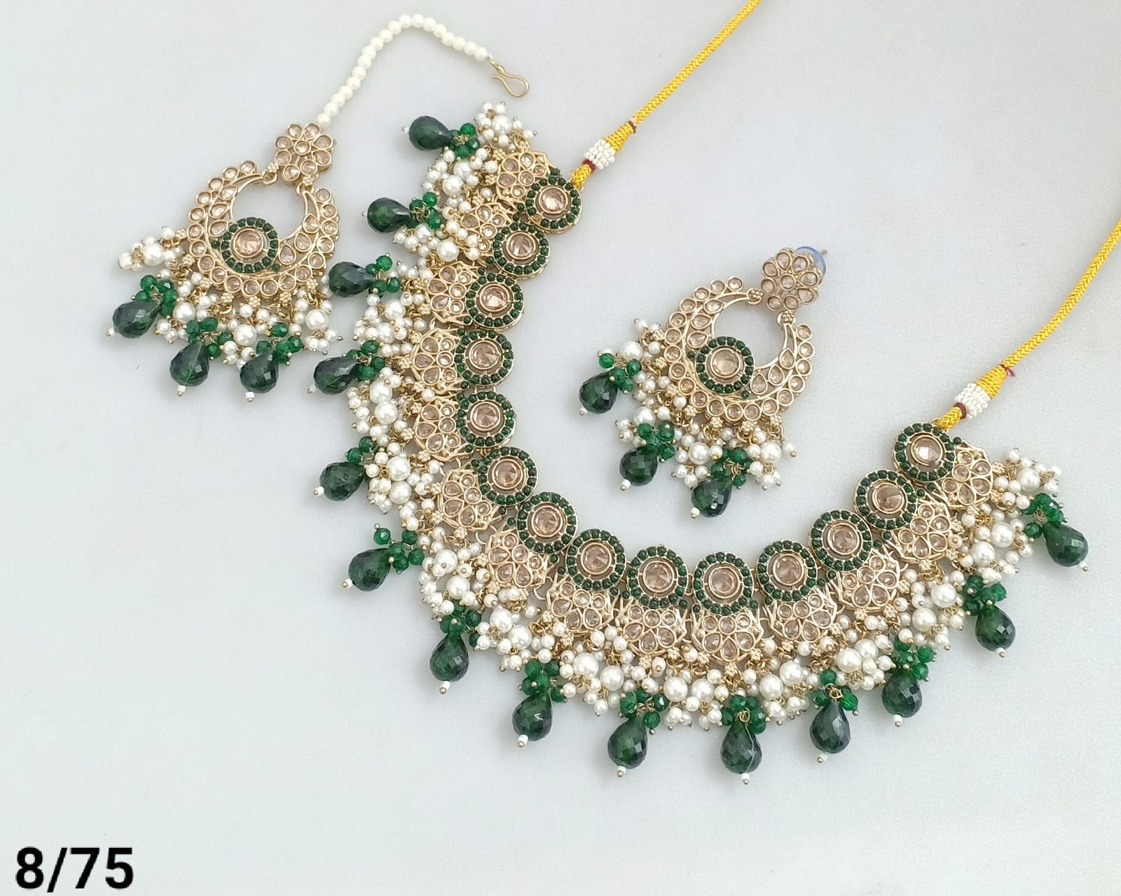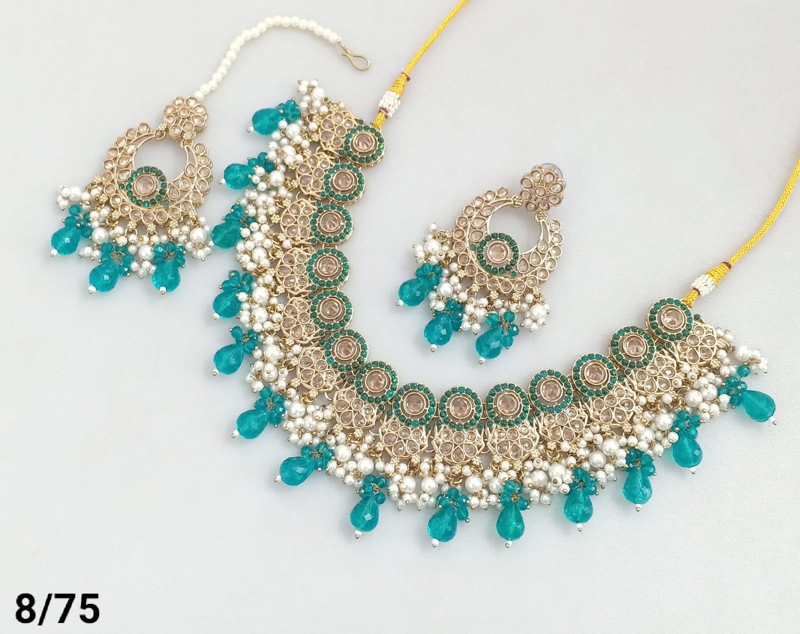 The high-quality plating ensures durability and a lasting shine, while the choker’s elegant form provides a comfortable fit. Perfect for enhancing traditional attire or adding a refined touch to modern outfits, this set embodies timeless sophistication and expert artistry.