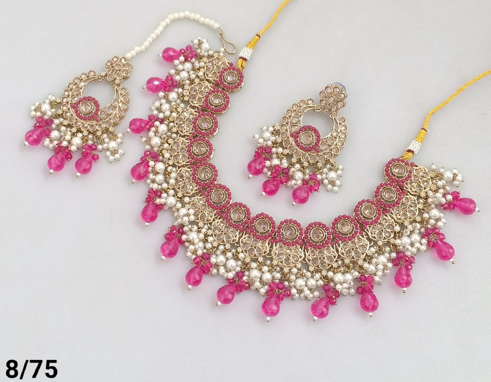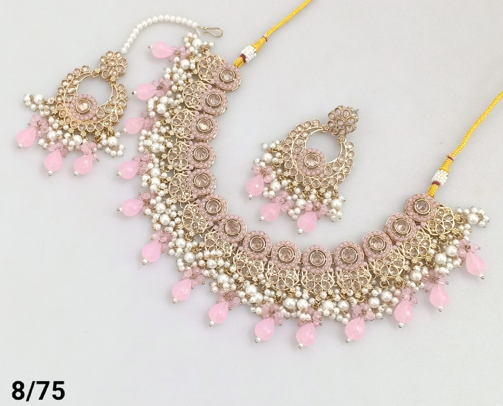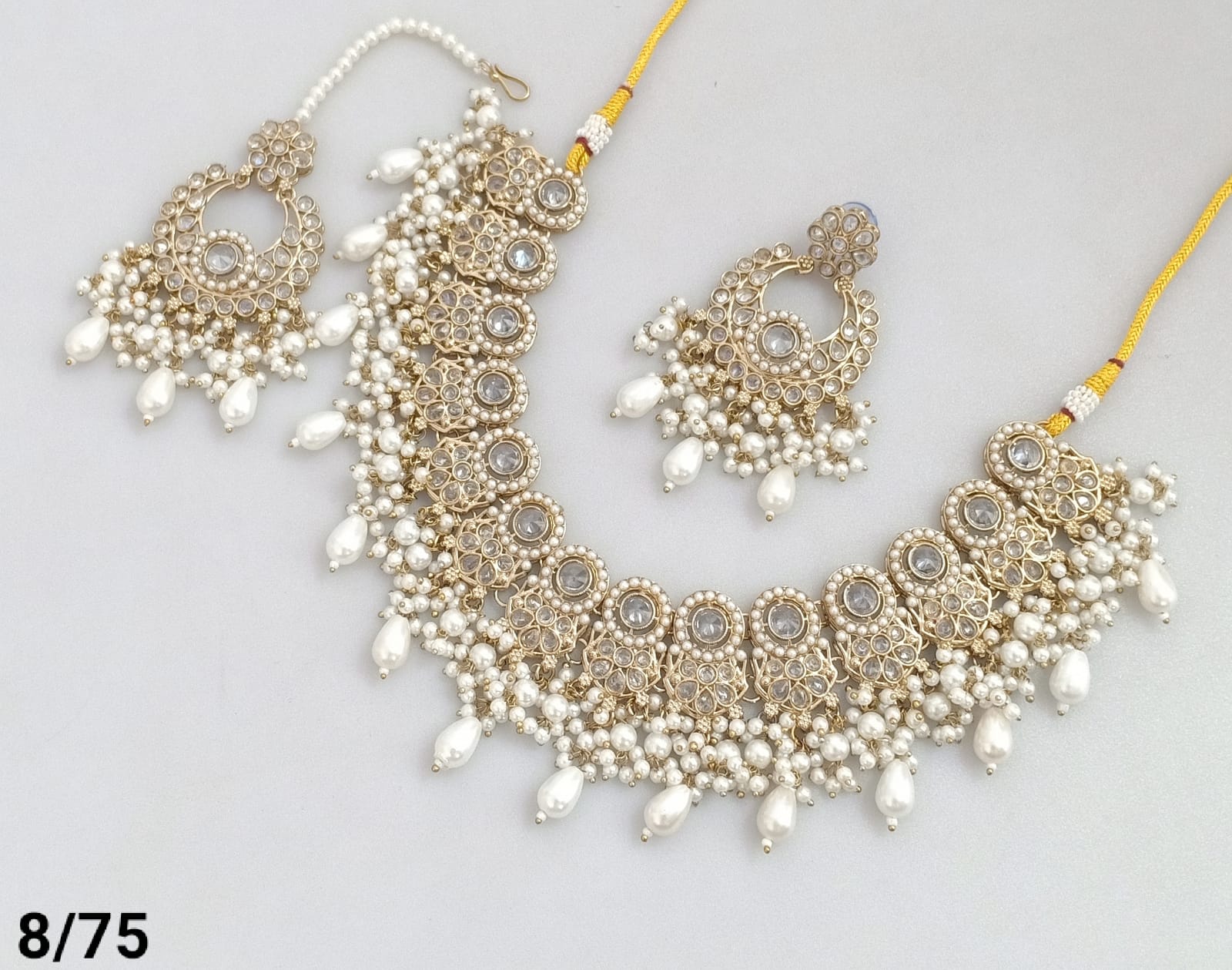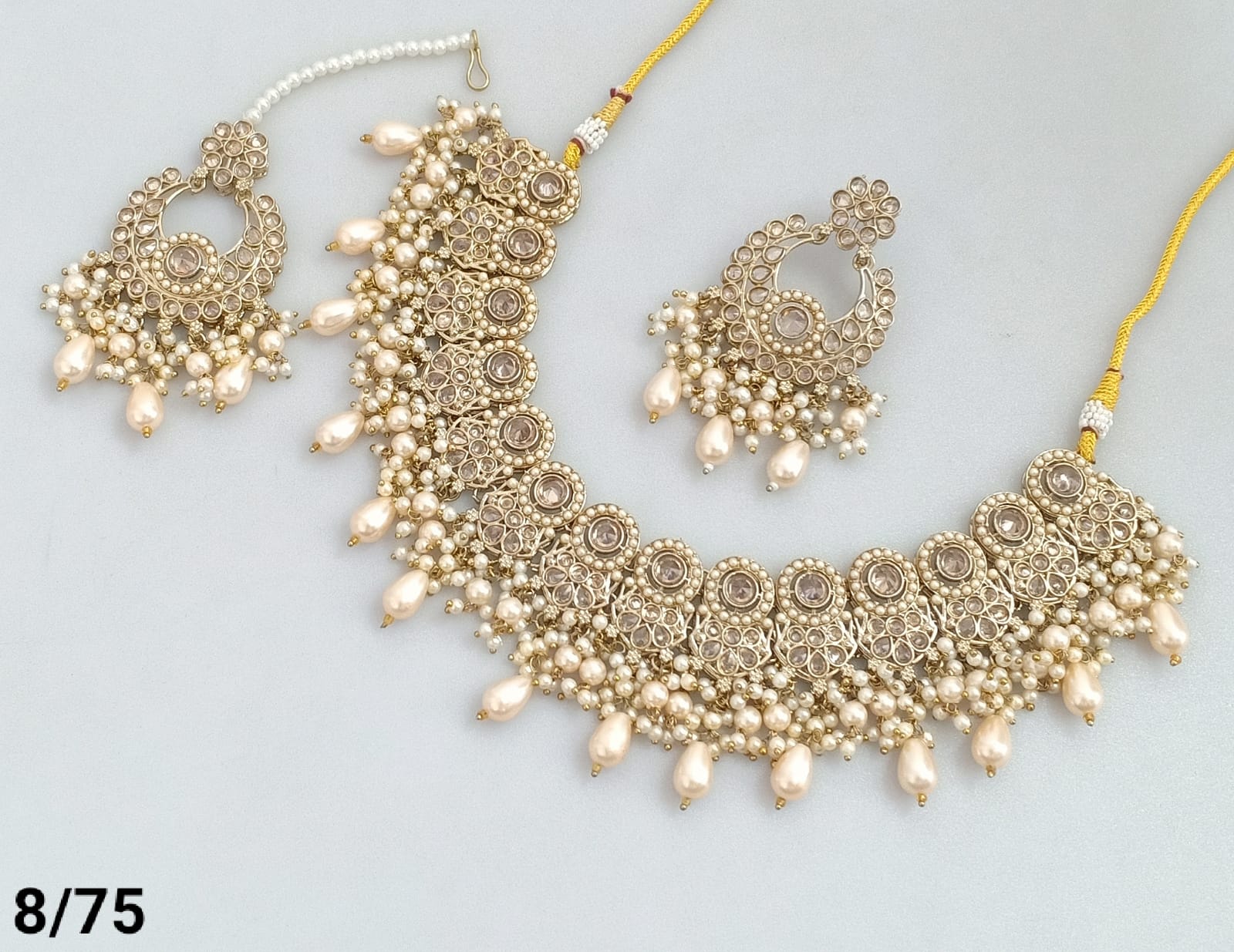 The high-quality plating ensures durability and a lasting shine, while the choker’s elegant form provides a comfortable fit. Perfect for enhancing traditional attire or adding a refined touch to modern outfits, this set embodies timeless sophistication and expert artistry.