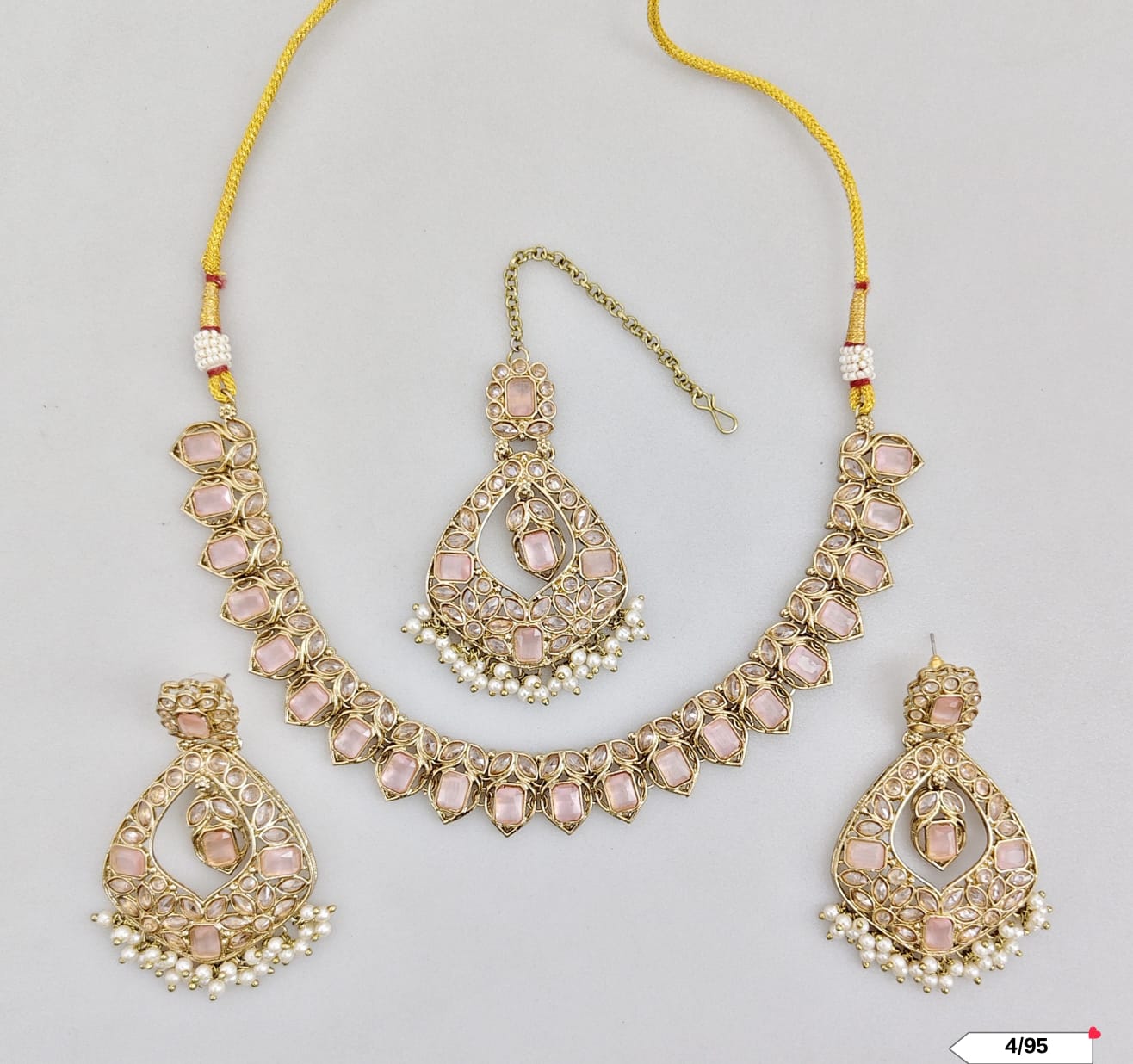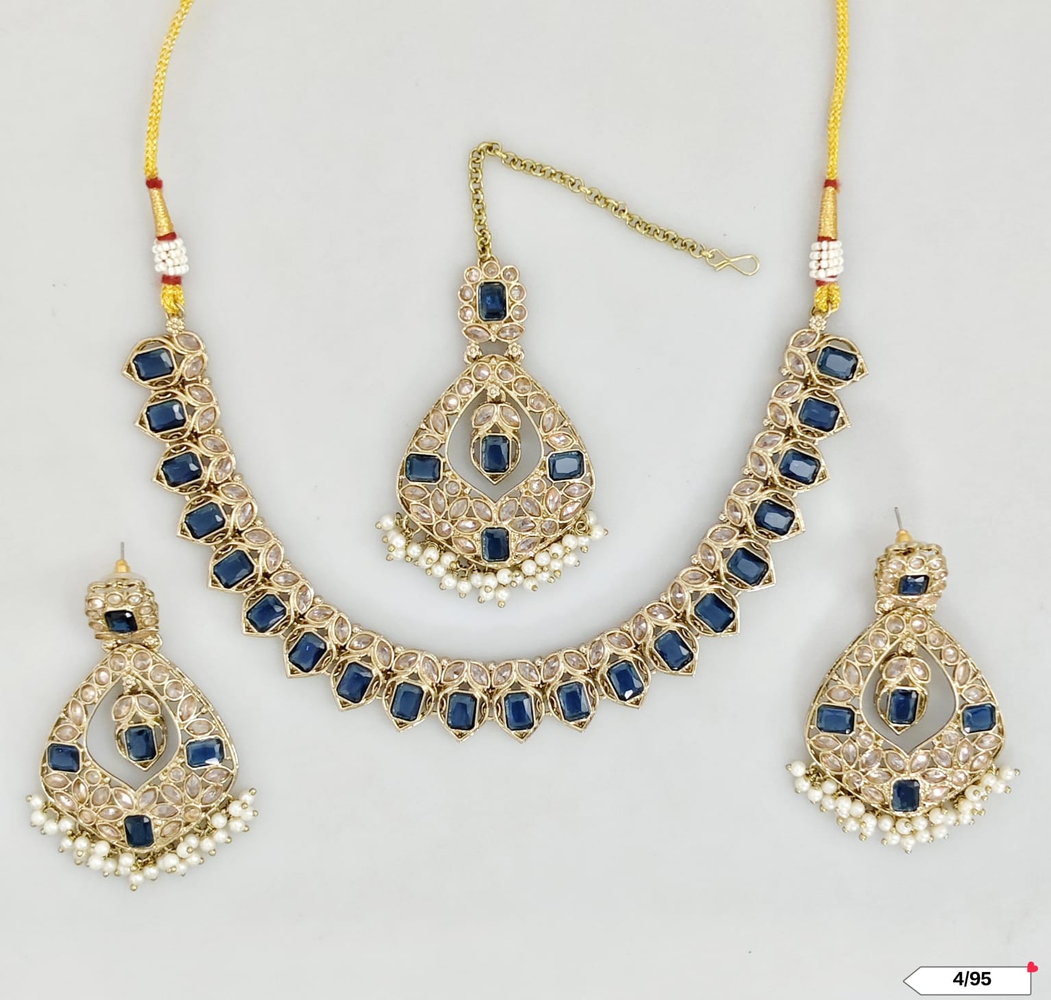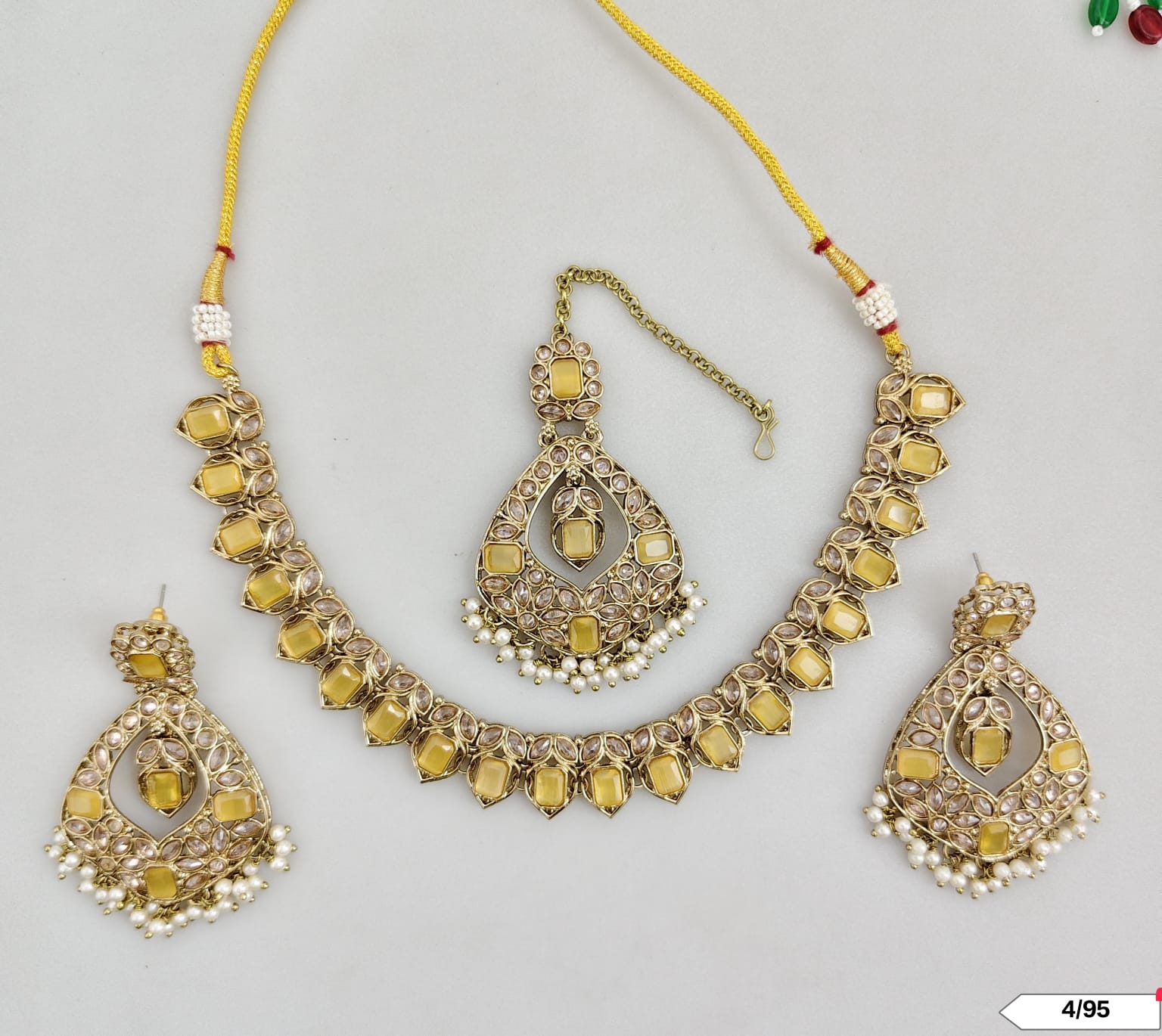 This exquisite choker set features an antique gold plating, combining timeless elegance with expert craftsmanship.