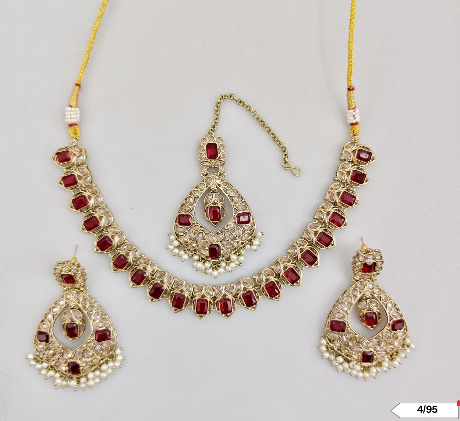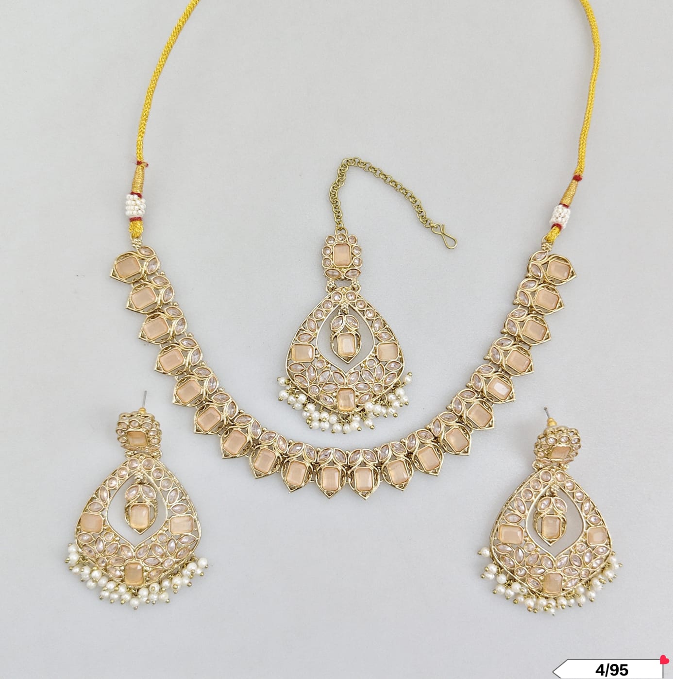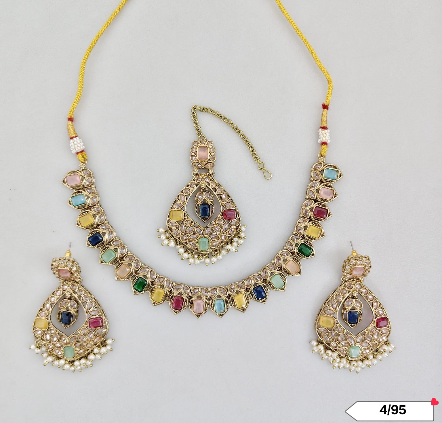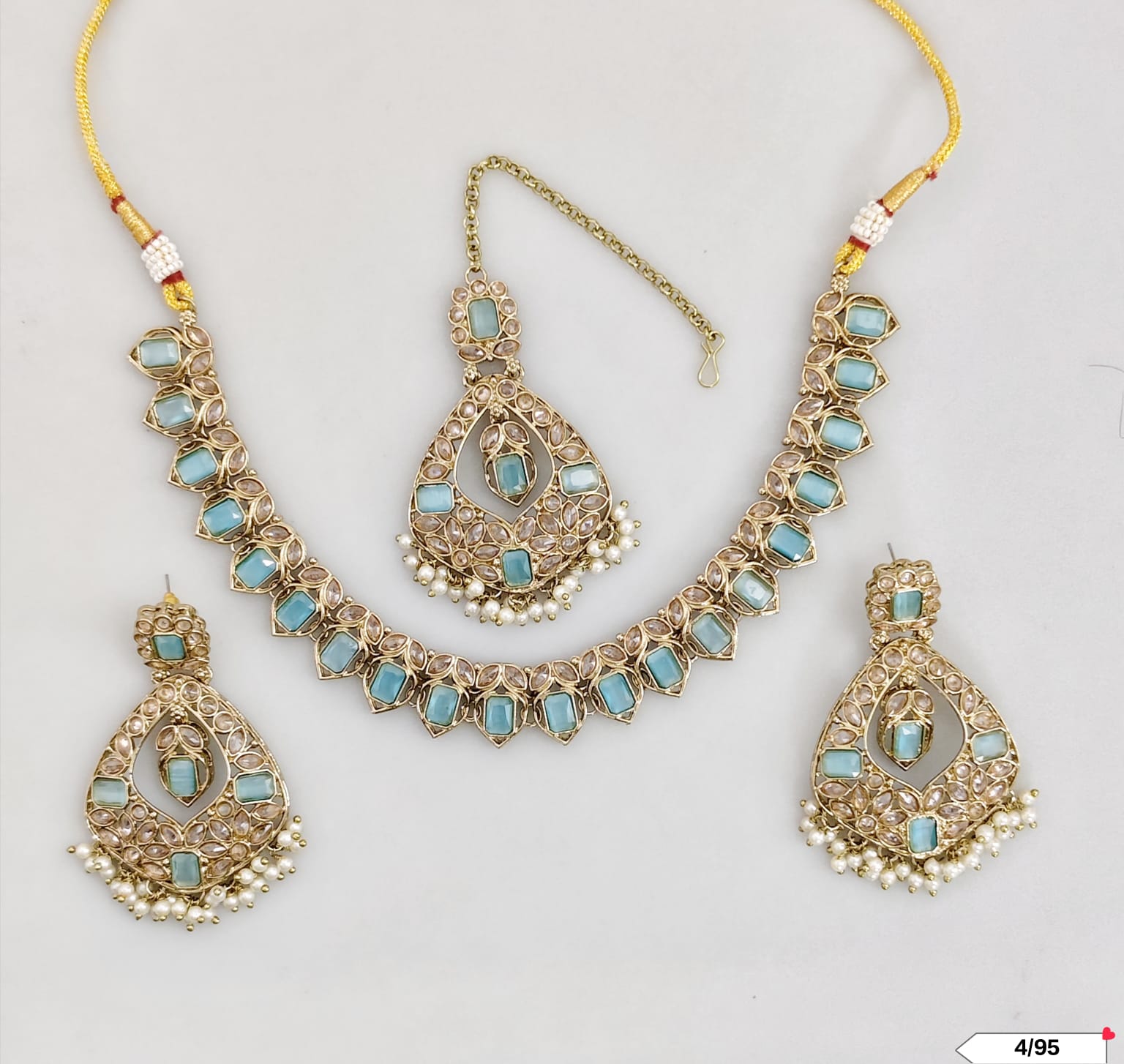 This exquisite choker set features an antique gold plating, combining timeless elegance with expert craftsmanship.