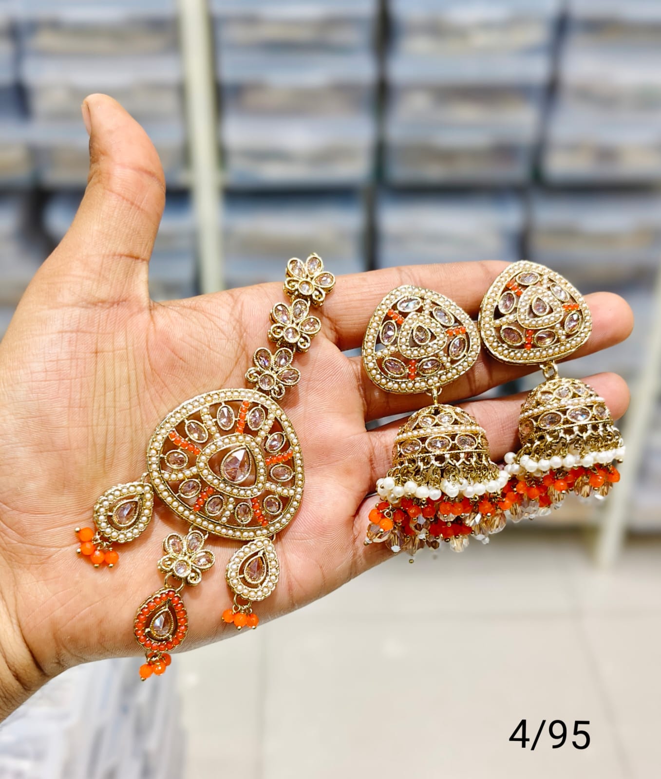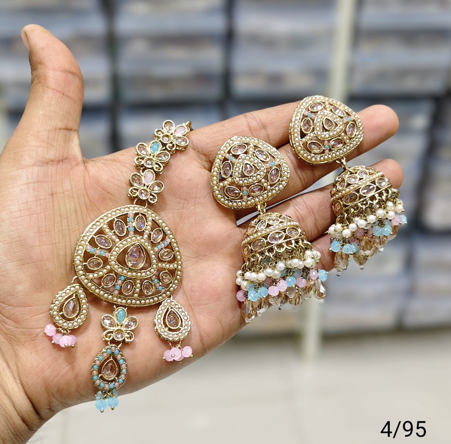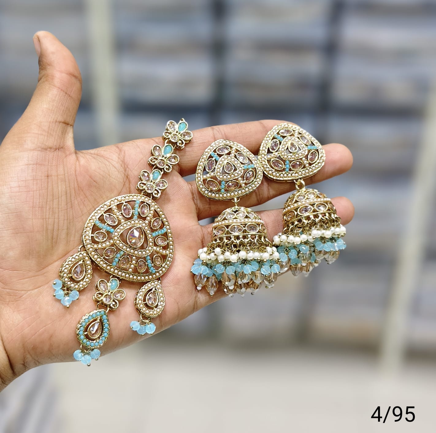 Antique Gold Plated Earring Mangtika Set