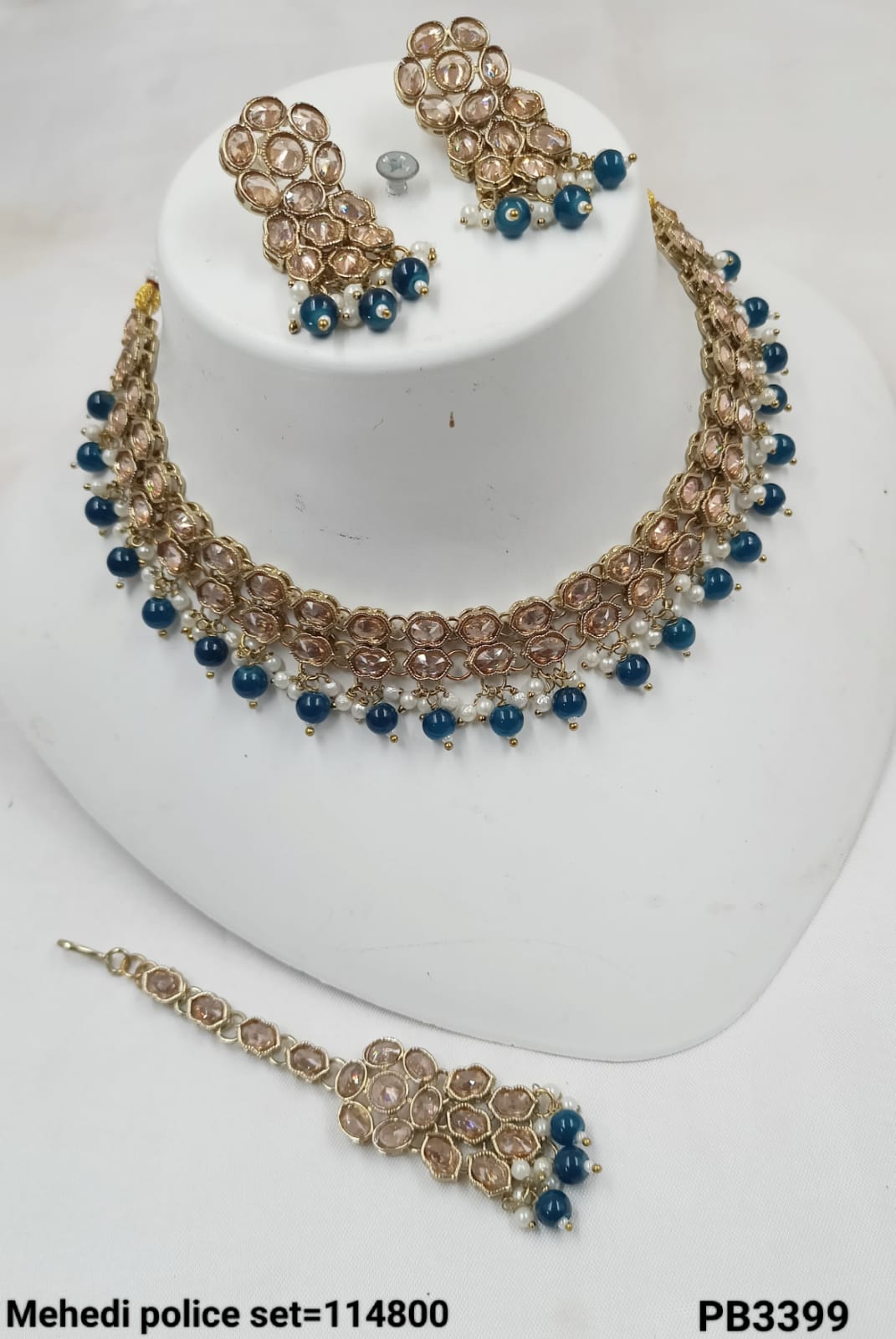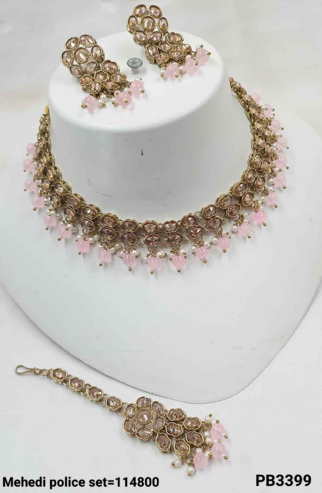 This exquisite choker necklace set features an antique gold plating, combining traditional elegance with intricate craftsmanship for a distinguished look.
