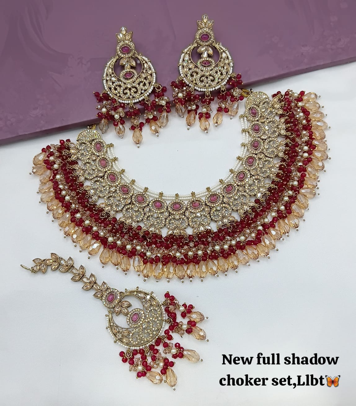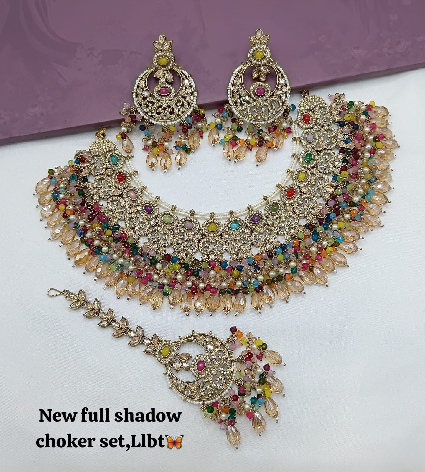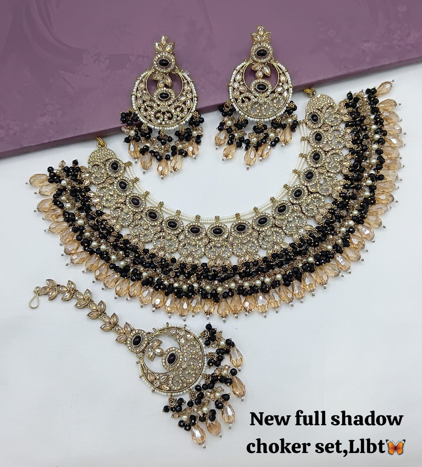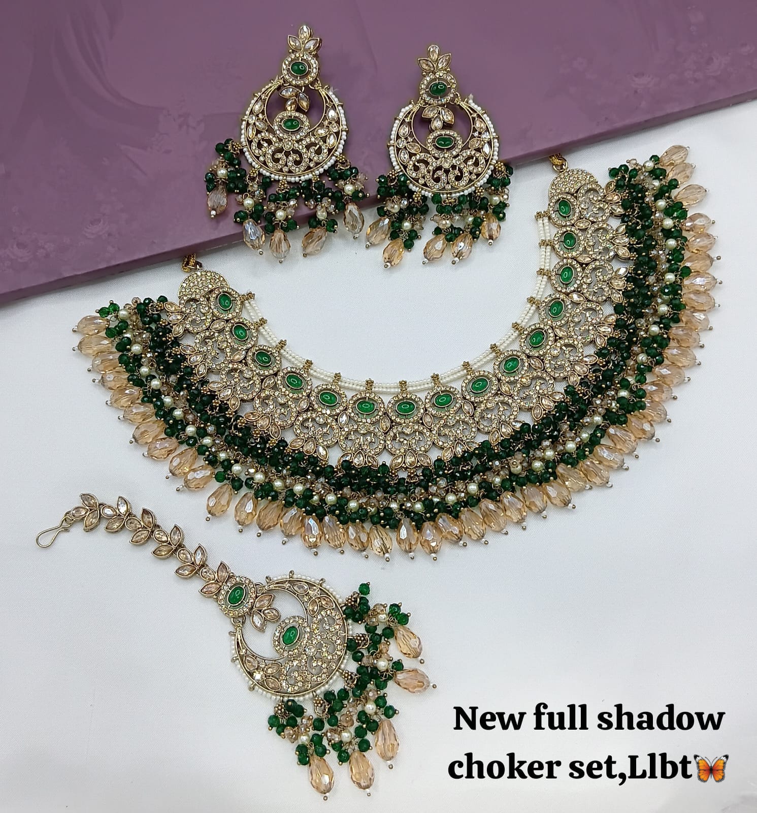 This exquisite jewellery set features an antique gold plating, combining timeless elegance with expert craftsmanship for a distinguished look.