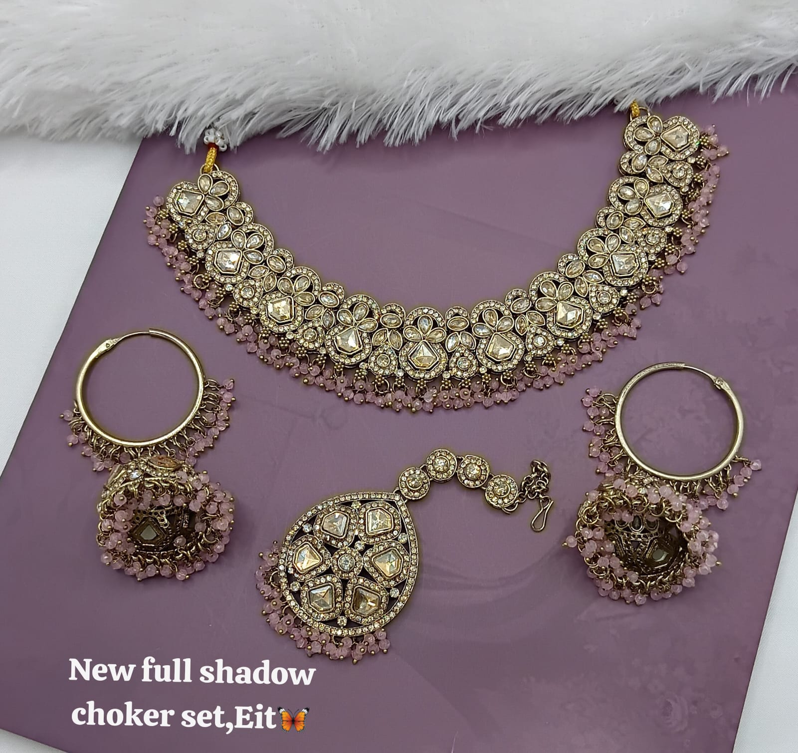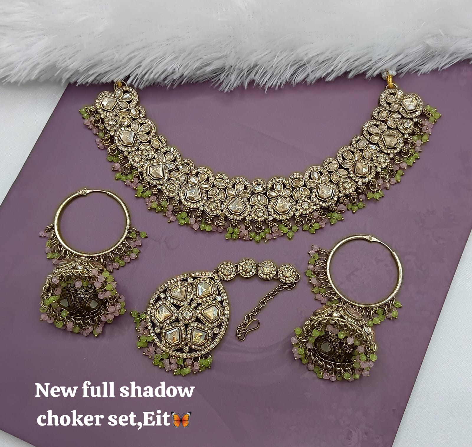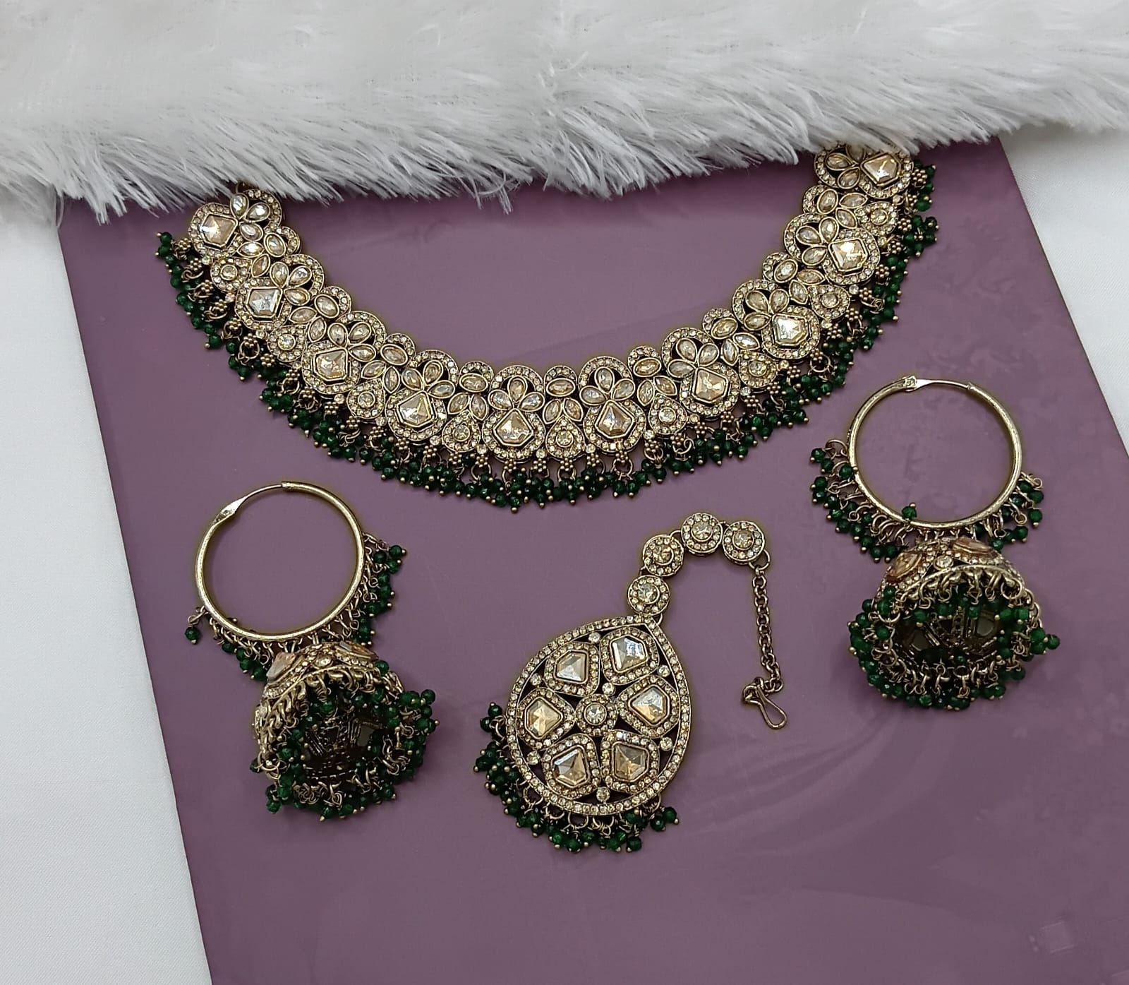 This exquisite jewellery set features an antique gold plating, combining timeless elegance with expert craftsmanship for a distinguished look.