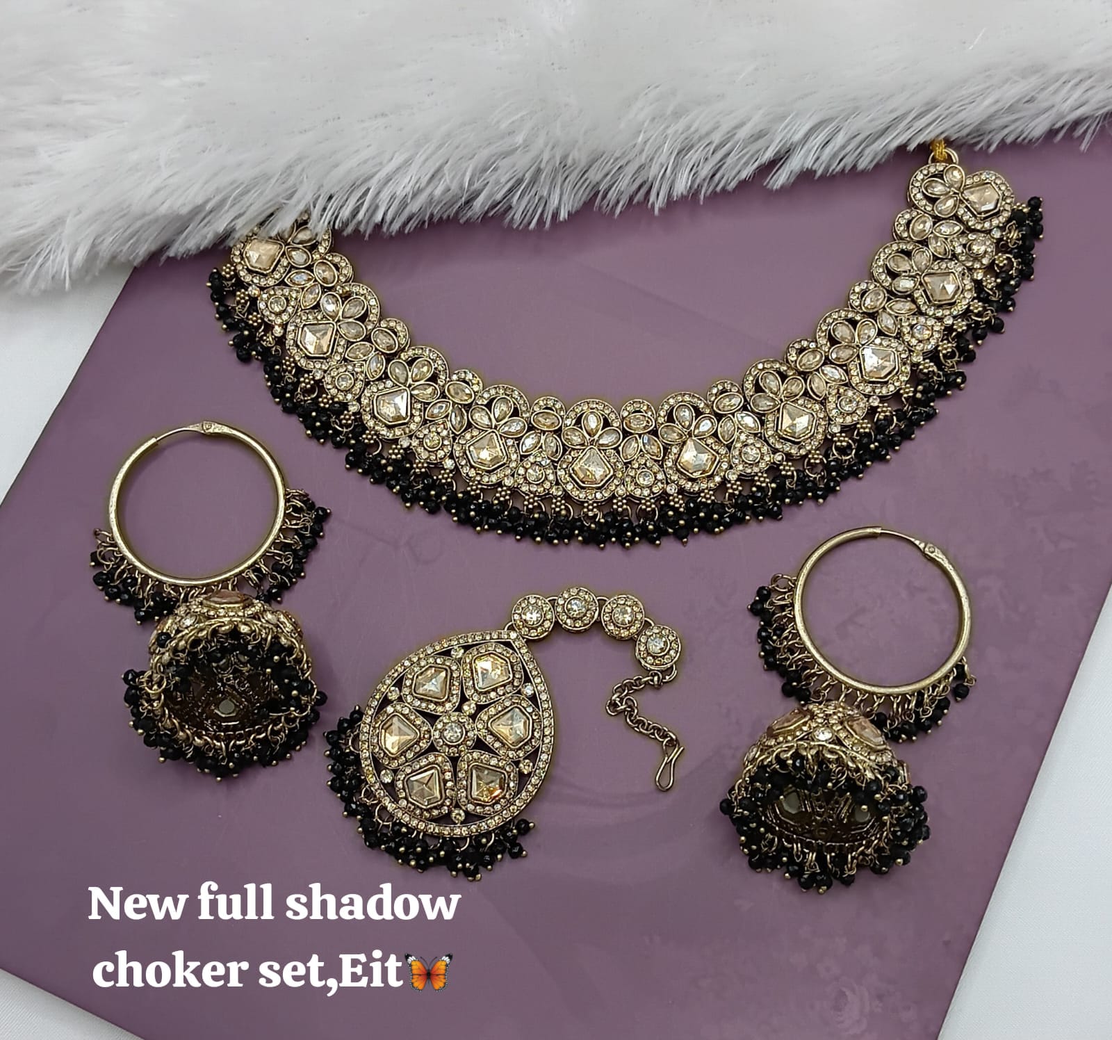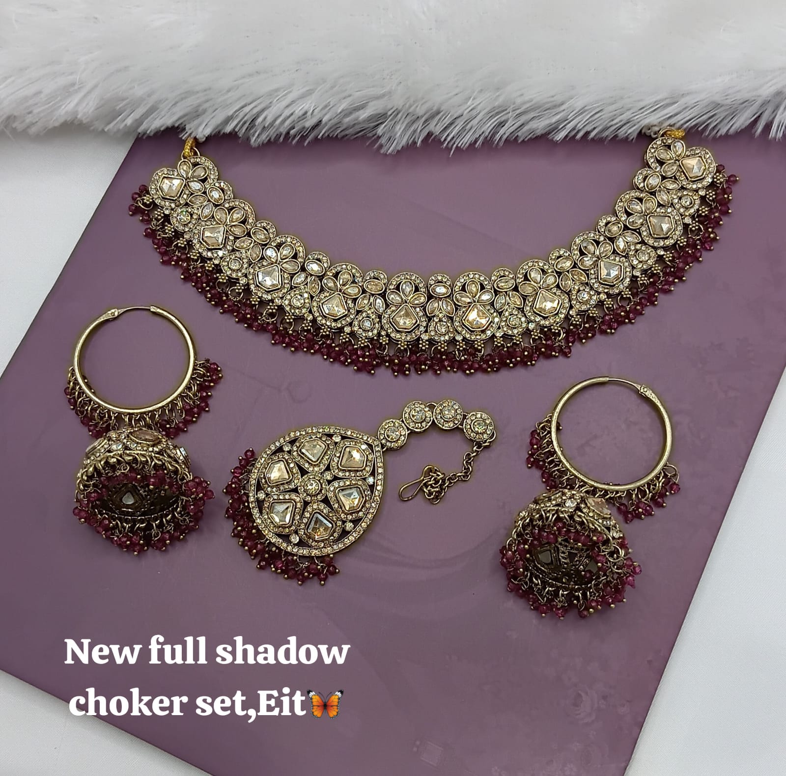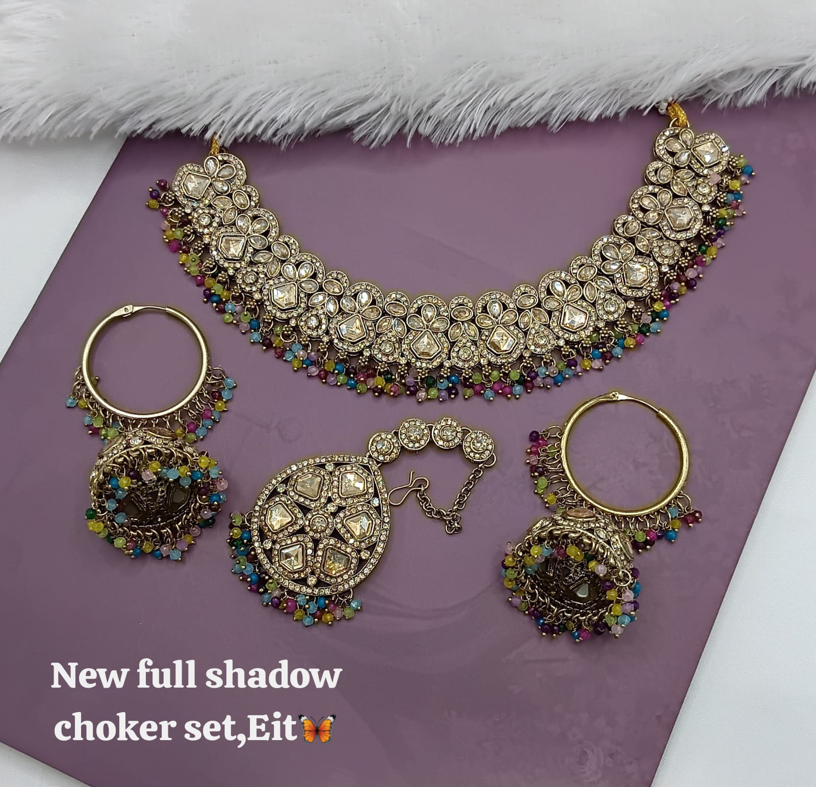 This exquisite jewellery set features an antique gold plating, combining timeless elegance with expert craftsmanship for a distinguished look.