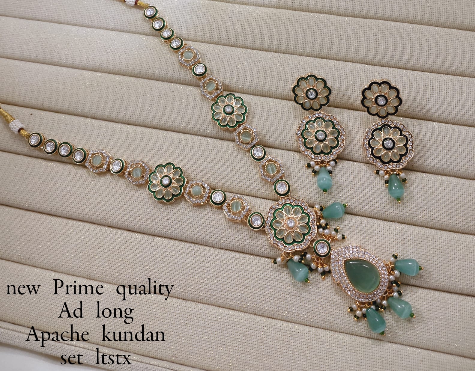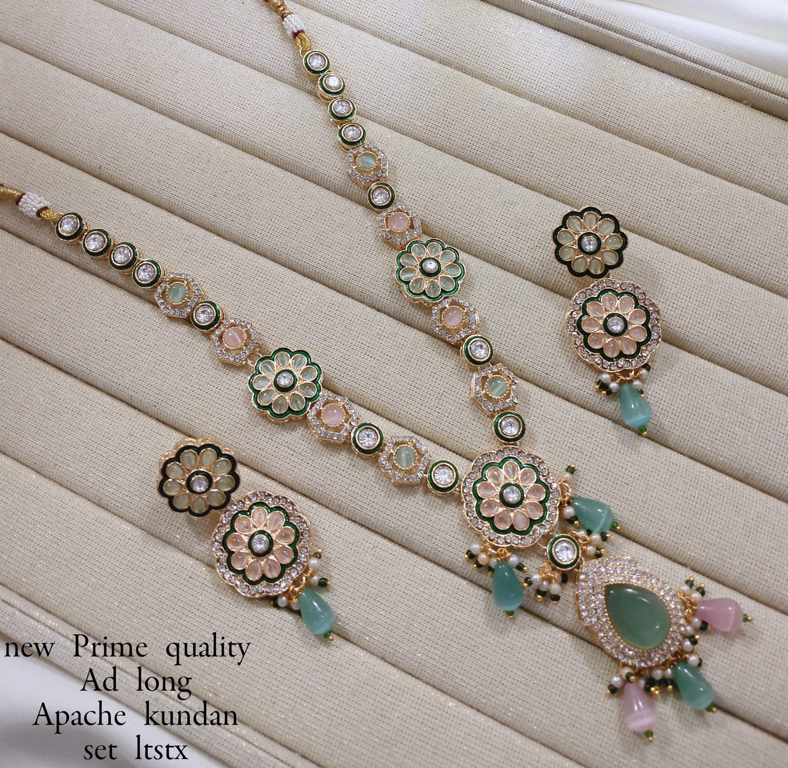 Elegant Prime Quality Long Kundan Necklace Set with Matching Earrings