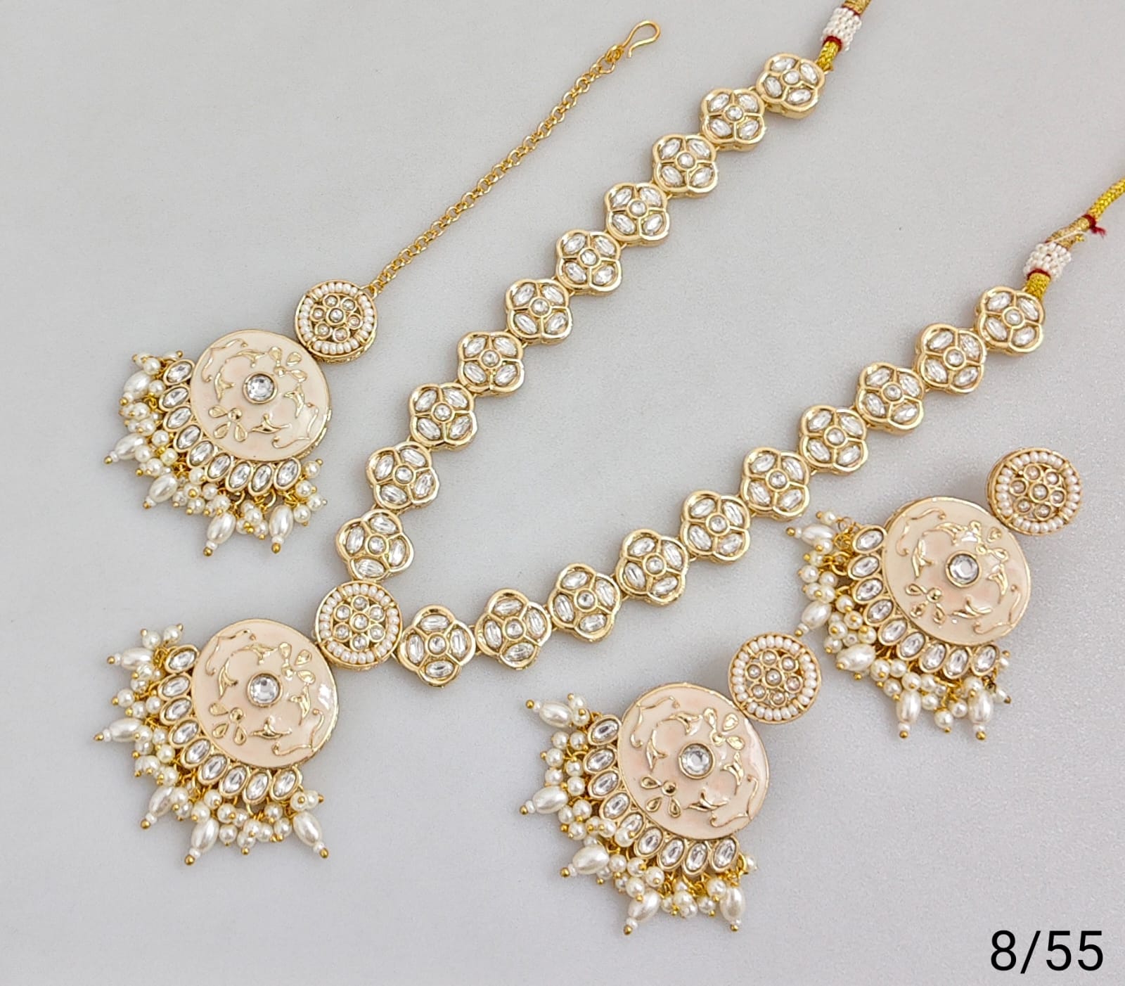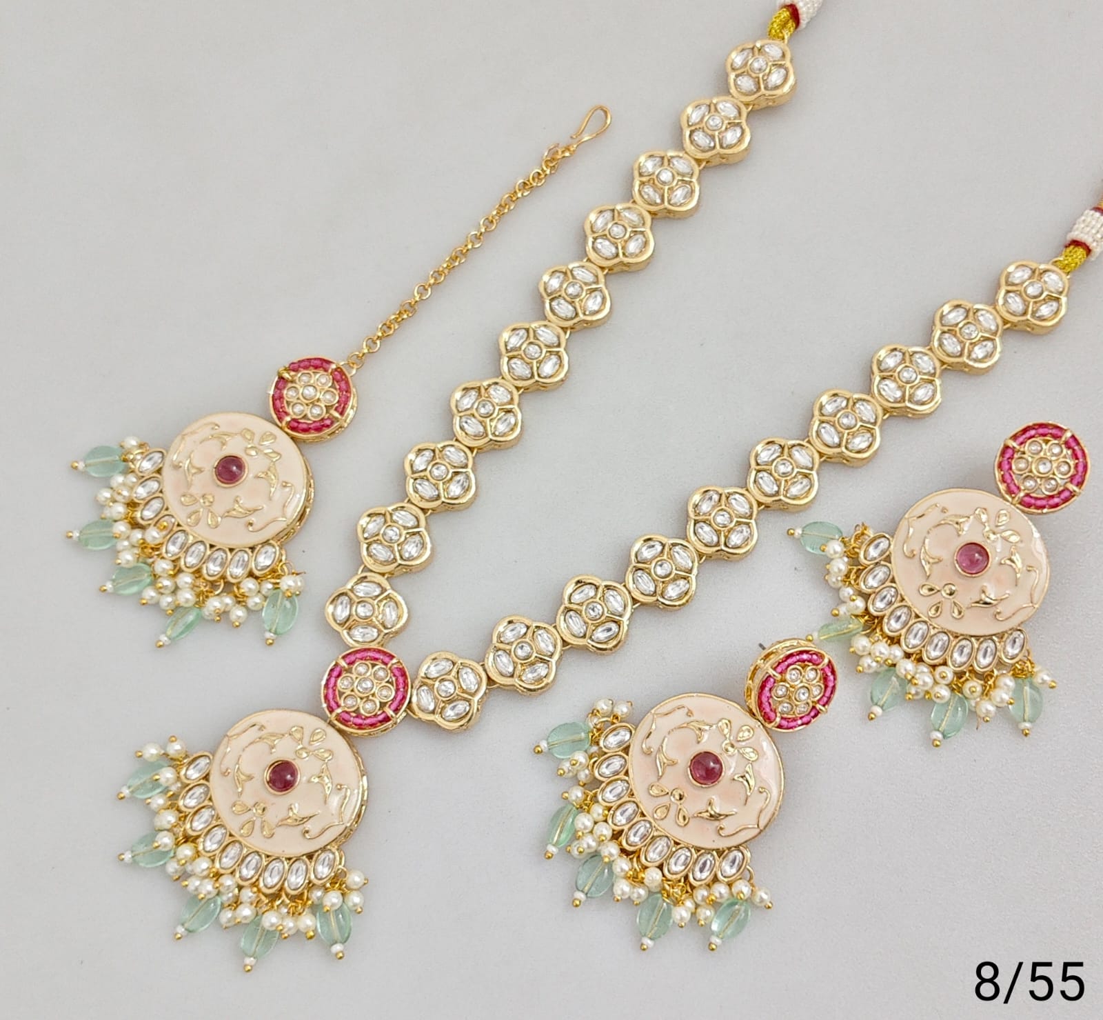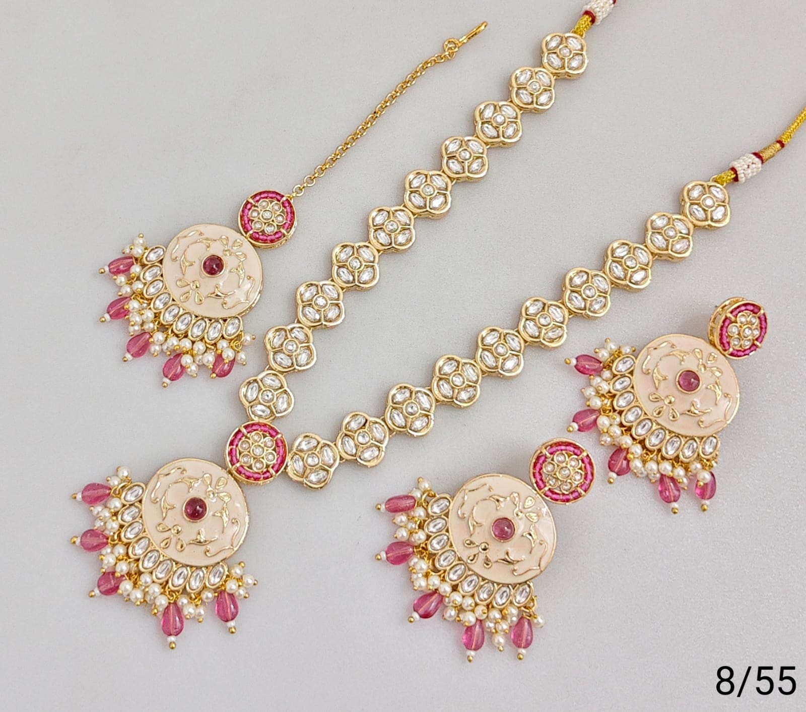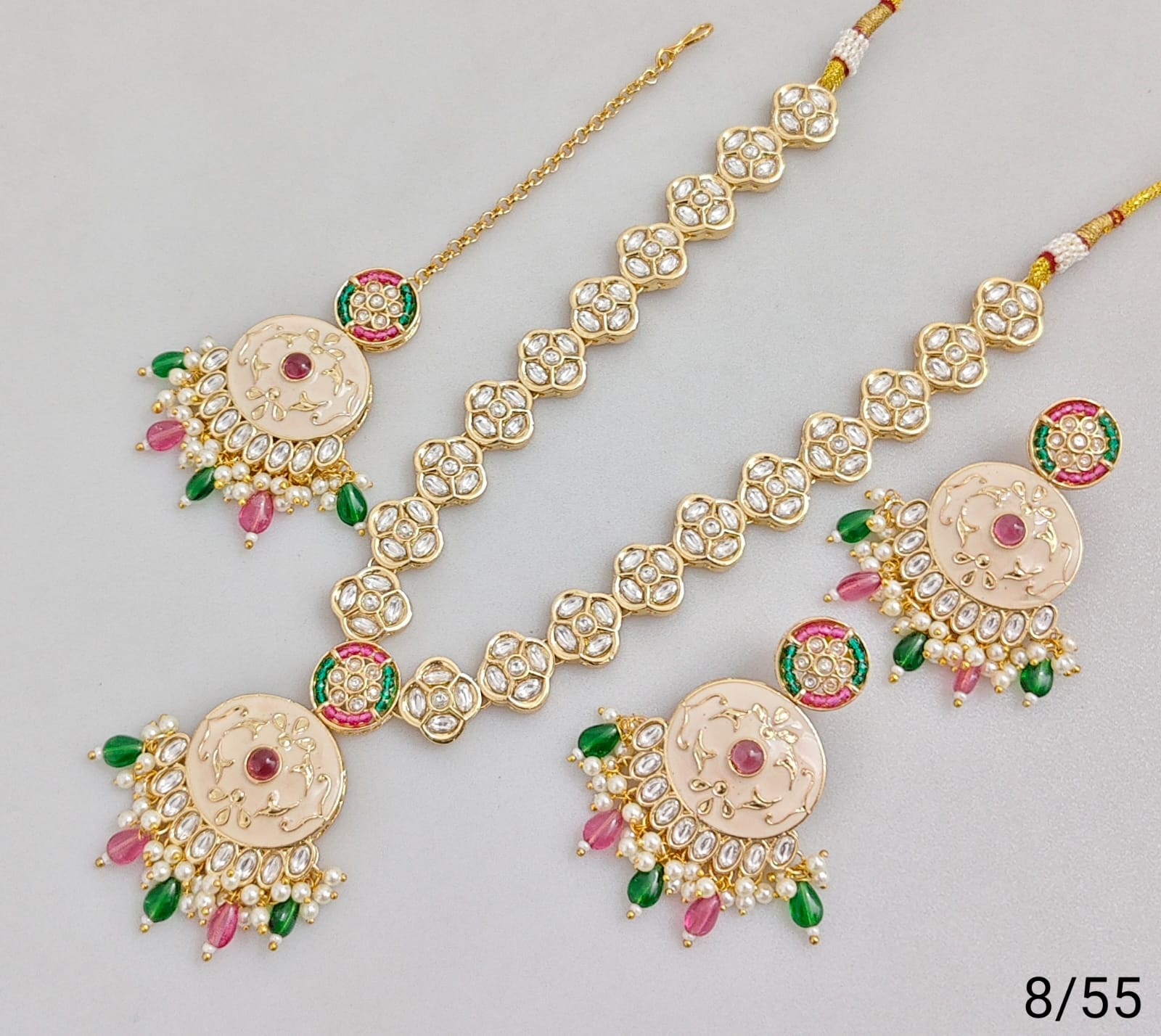 This exquisite traditional jewelry set is designed to add a touch of elegance and sophistication to any outfit. Featuring sparkling cubic zirconia stones beautifully arranged in intricate patterns, complemented by delicate pearl and gemstone accents, this set is perfect for special occasions and festive celebrations. Lightweight and comfortable, it offers a timeless look that enhances your style effortlessly.