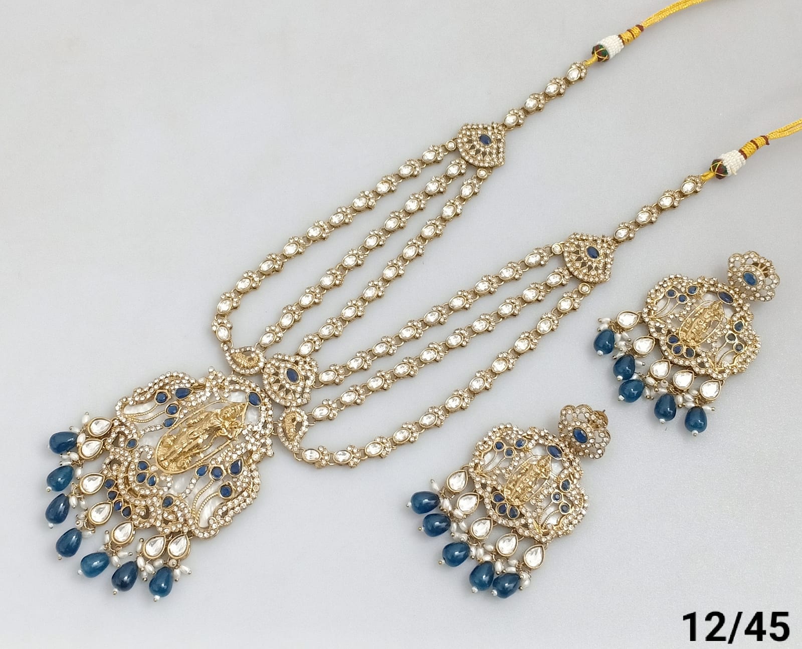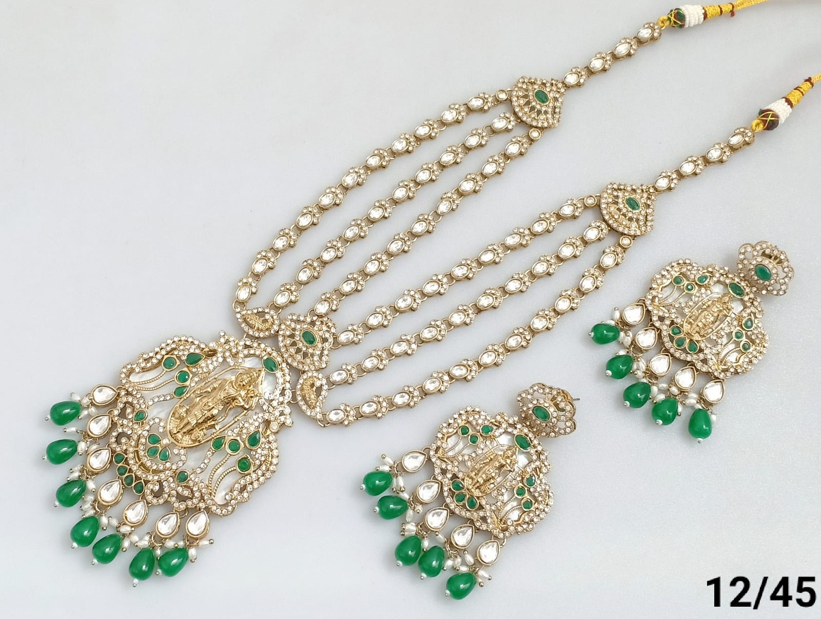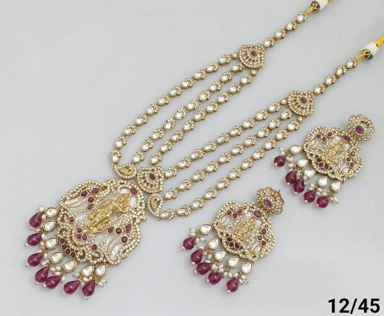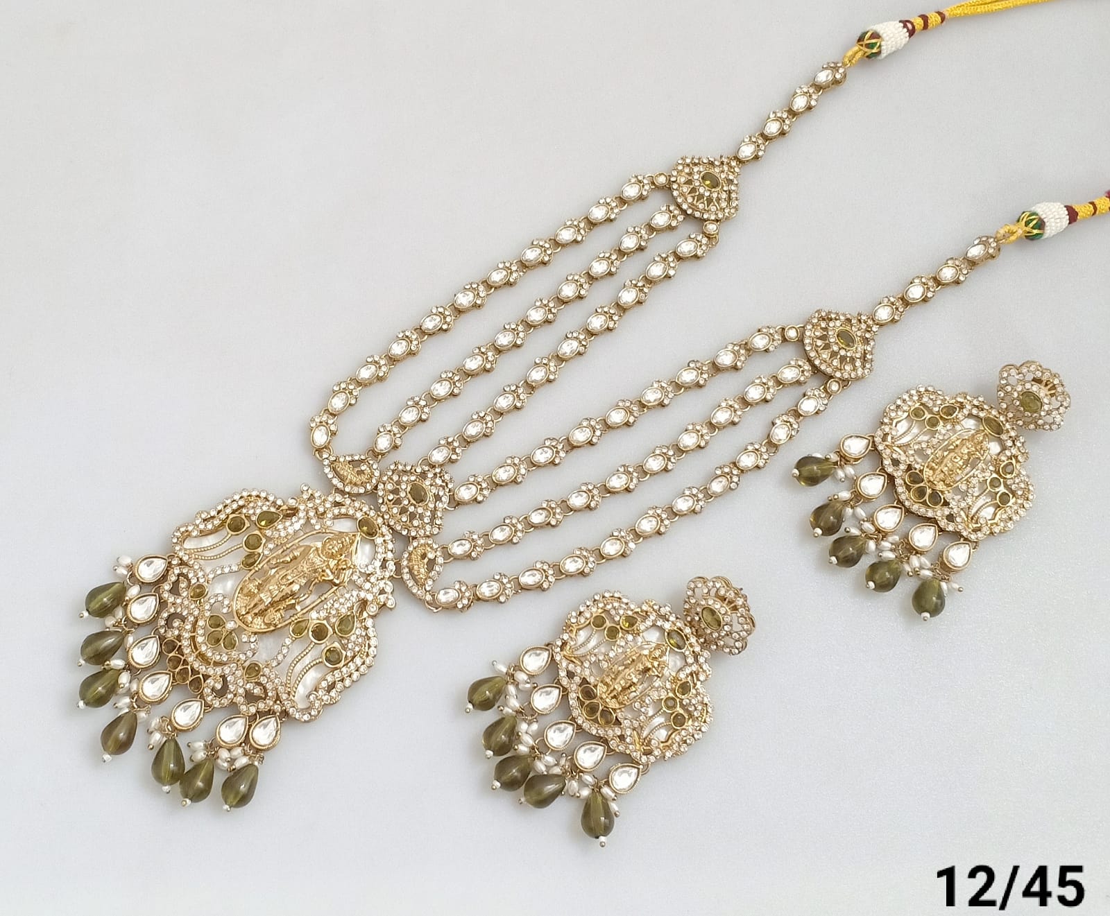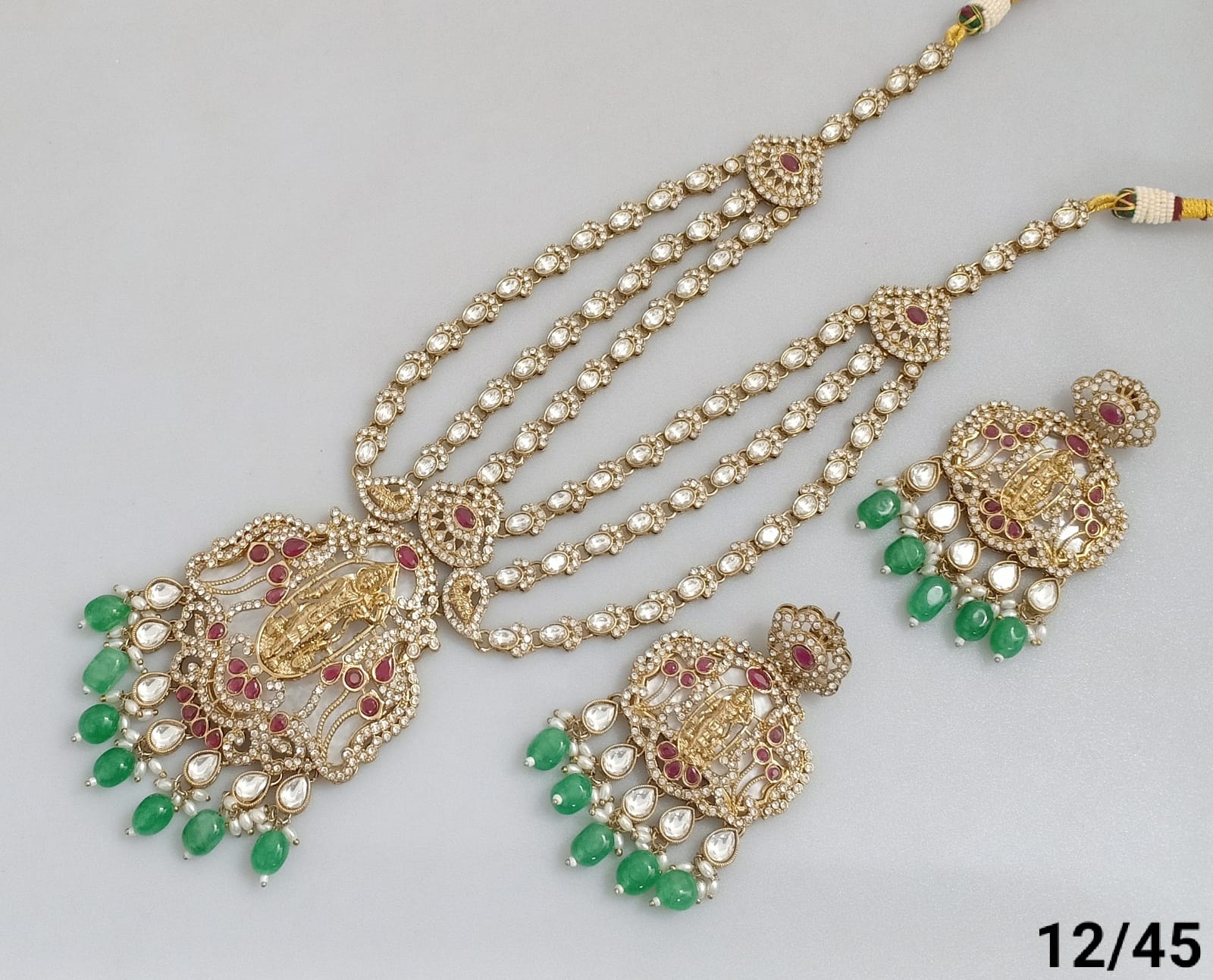 Embrace timeless elegance with this traditional three-strand jewelry set, featuring an antique finish and stunning cubic zirconia (CZ) stones. Expertly crafted with intricate detailing, this set brings a perfect blend of heritage and sophistication. Ideal for weddings, festivals, or special occasions, it adds a regal touch to any outfit.