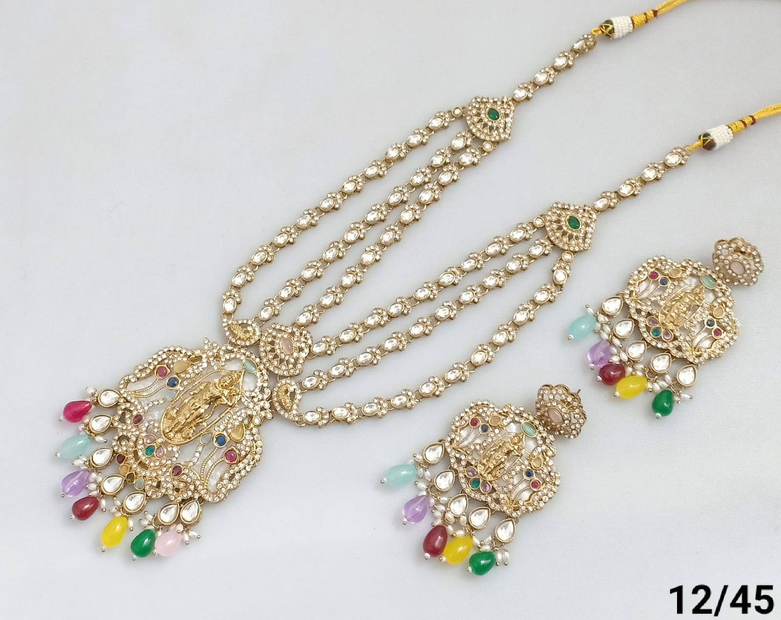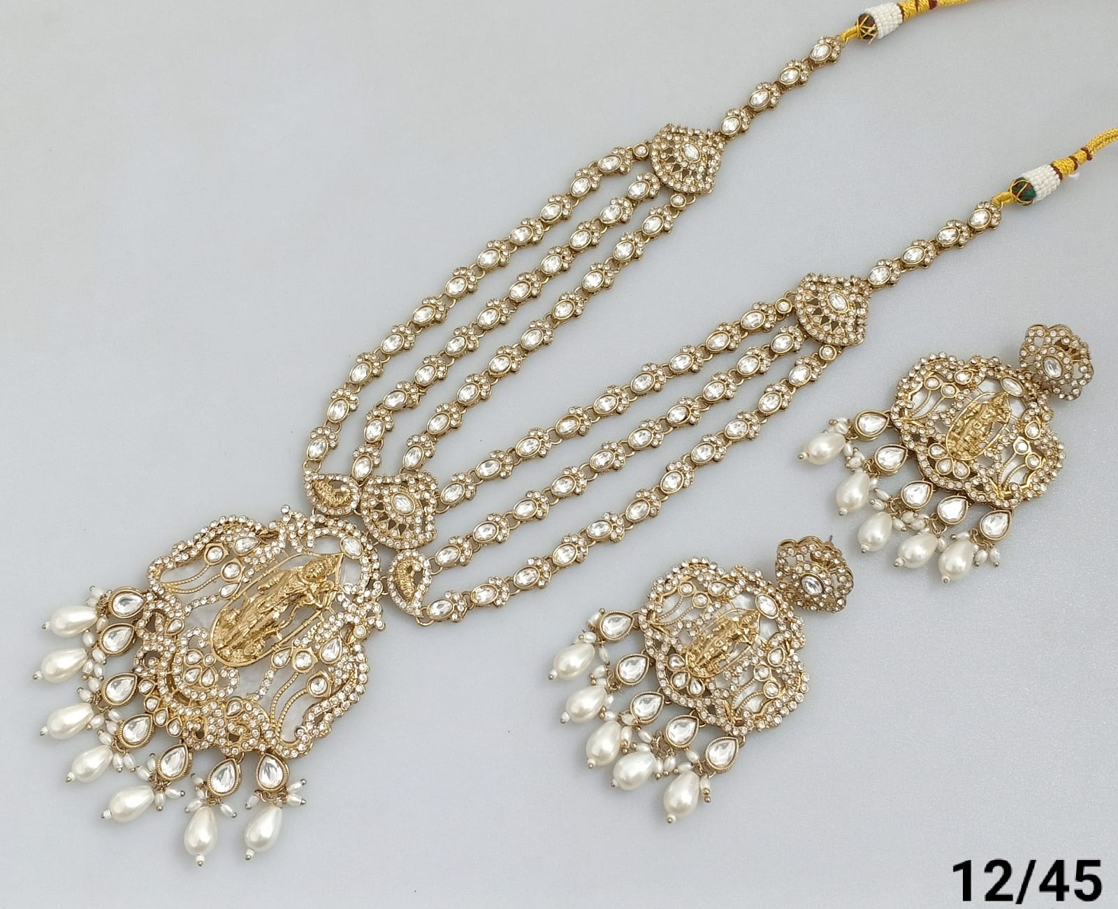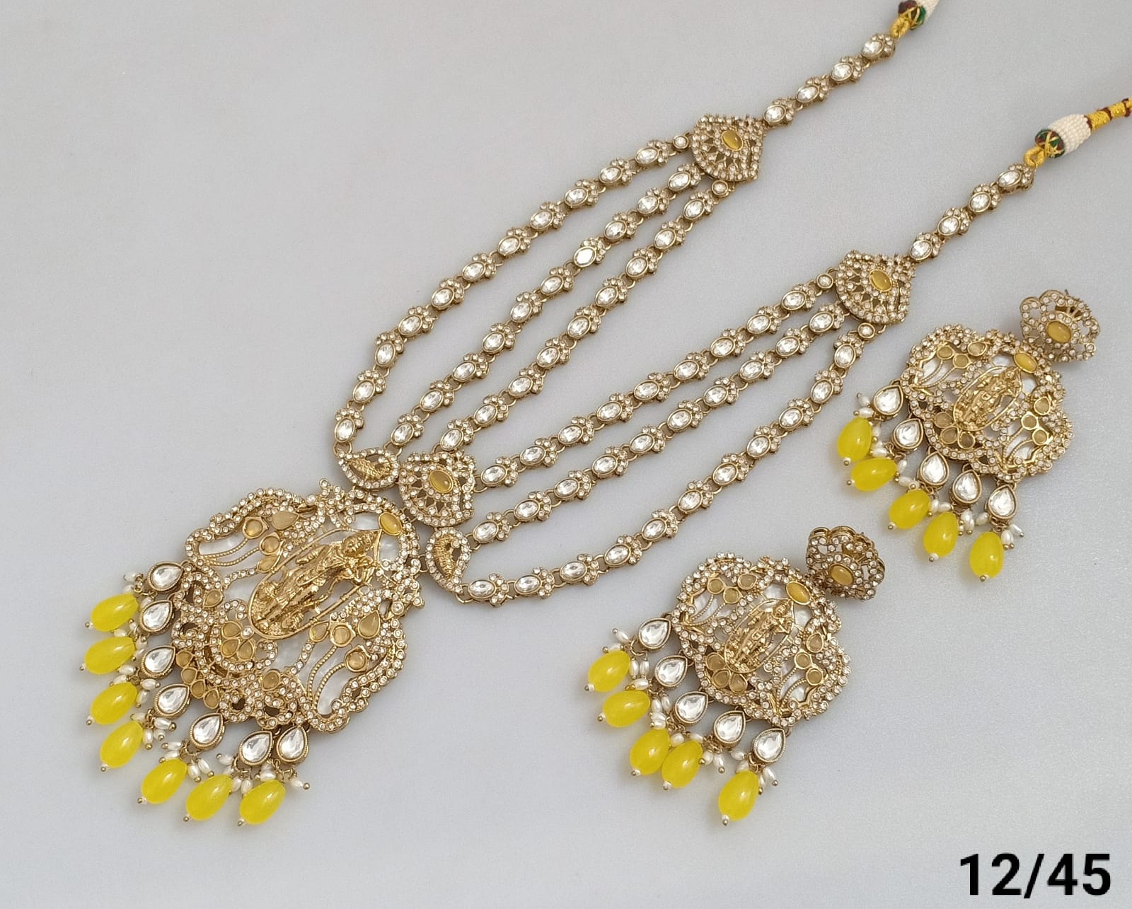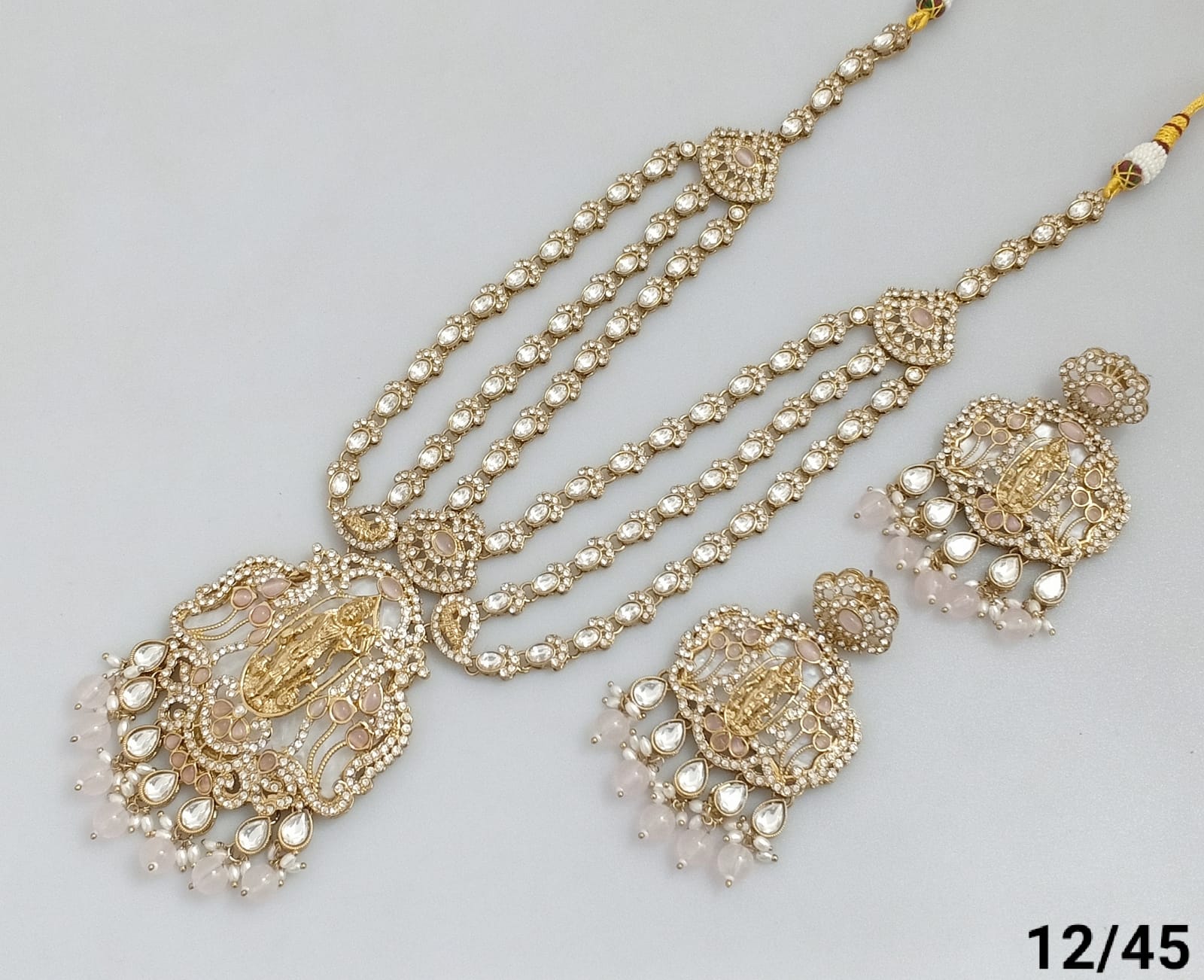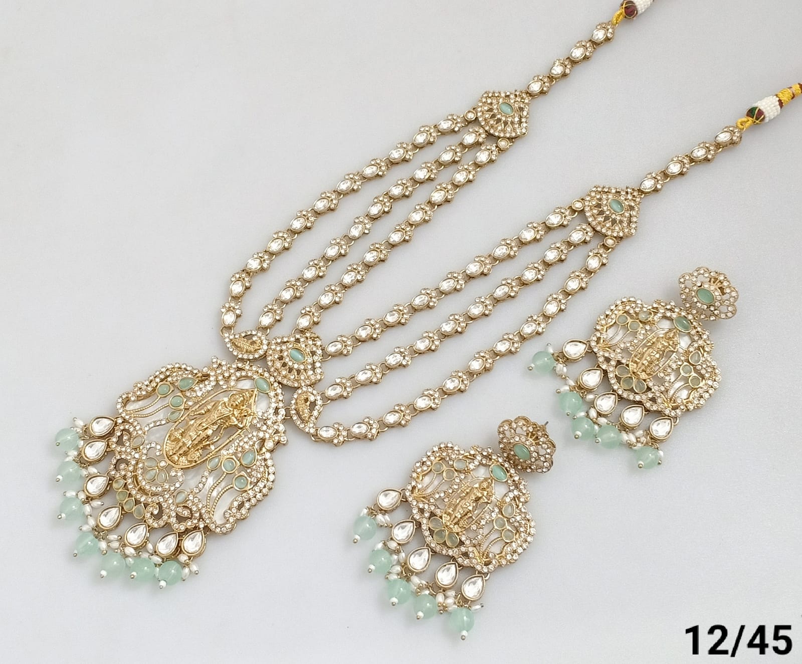 Embrace timeless elegance with this traditional three-strand jewelry set, featuring an antique finish and stunning cubic zirconia (CZ) stones. Expertly crafted with intricate detailing, this set brings a perfect blend of heritage and sophistication. Ideal for weddings, festivals, or special occasions, it adds a regal touch to any outfit.