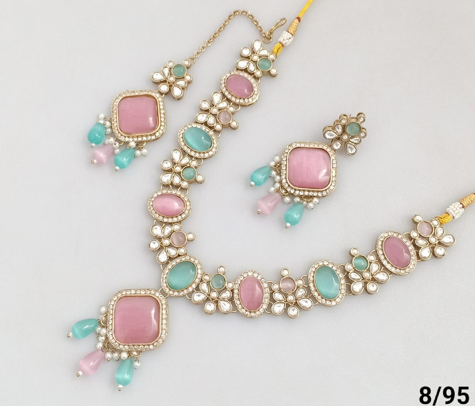 A finely crafted necklace set featuring an elegant antique gold plating, perfect for adding a touch of classic refinement.
