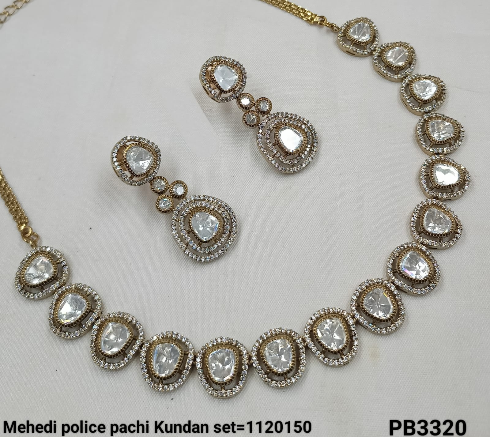 Elevate your jewelry collection with this Elegant Antique Gold Pachi Kundan Necklace Set, exclusively from Lucentemarket. Expertly handcrafted, this set features finely cut Kundan stones embedded in an antique gold setting, radiating a timeless royal charm. The matching earrings complete the look, making it perfect for weddings, festive celebrations, or special occasions where elegance is essential.