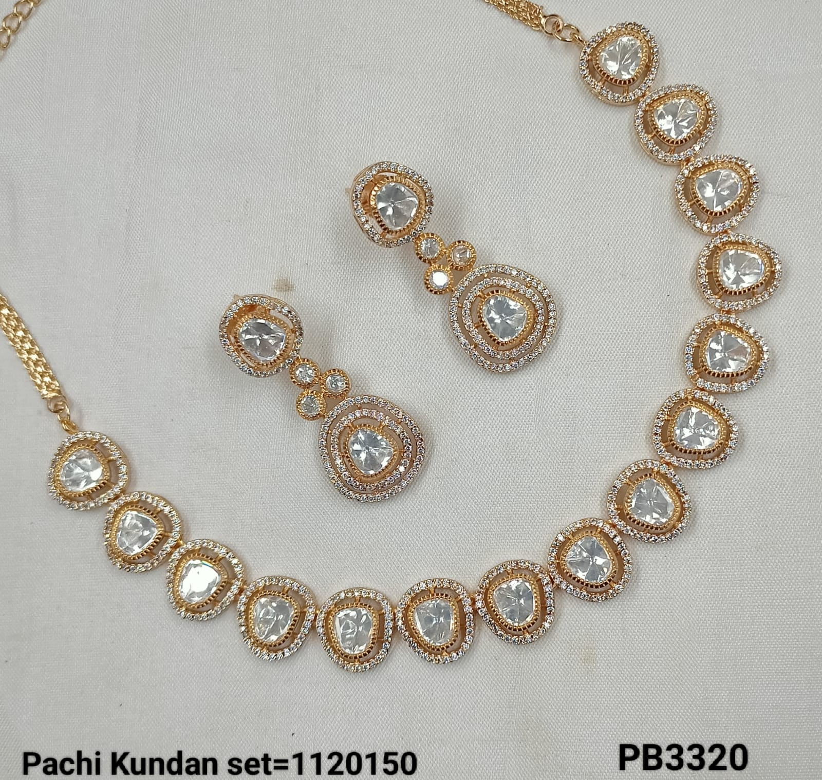 Elegant Antique Gold Pachi Kundan Necklace Set with Earrings - Lucentemarket