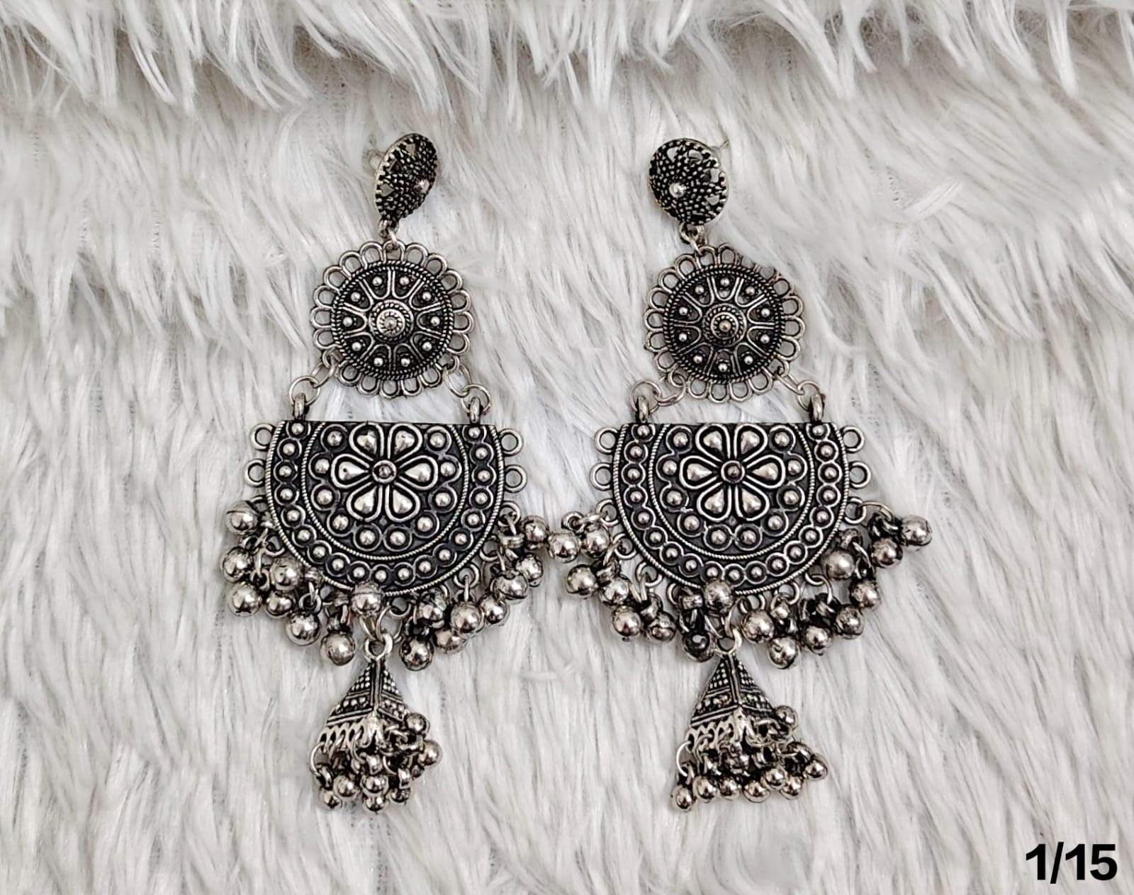Elevate your style with these exquisite Boho Chic Silver Oxidized Statement Earrings. Featuring intricate floral motifs and delicate dangling bells, these earrings bring a touch of ethnic elegance to any outfit. Perfect for festivals, casual outings, or special occasions, their lightweight design ensures comfortable wear all day long. Add a timeless accessory to your jewelry collection that complements both traditional and contemporary looks.